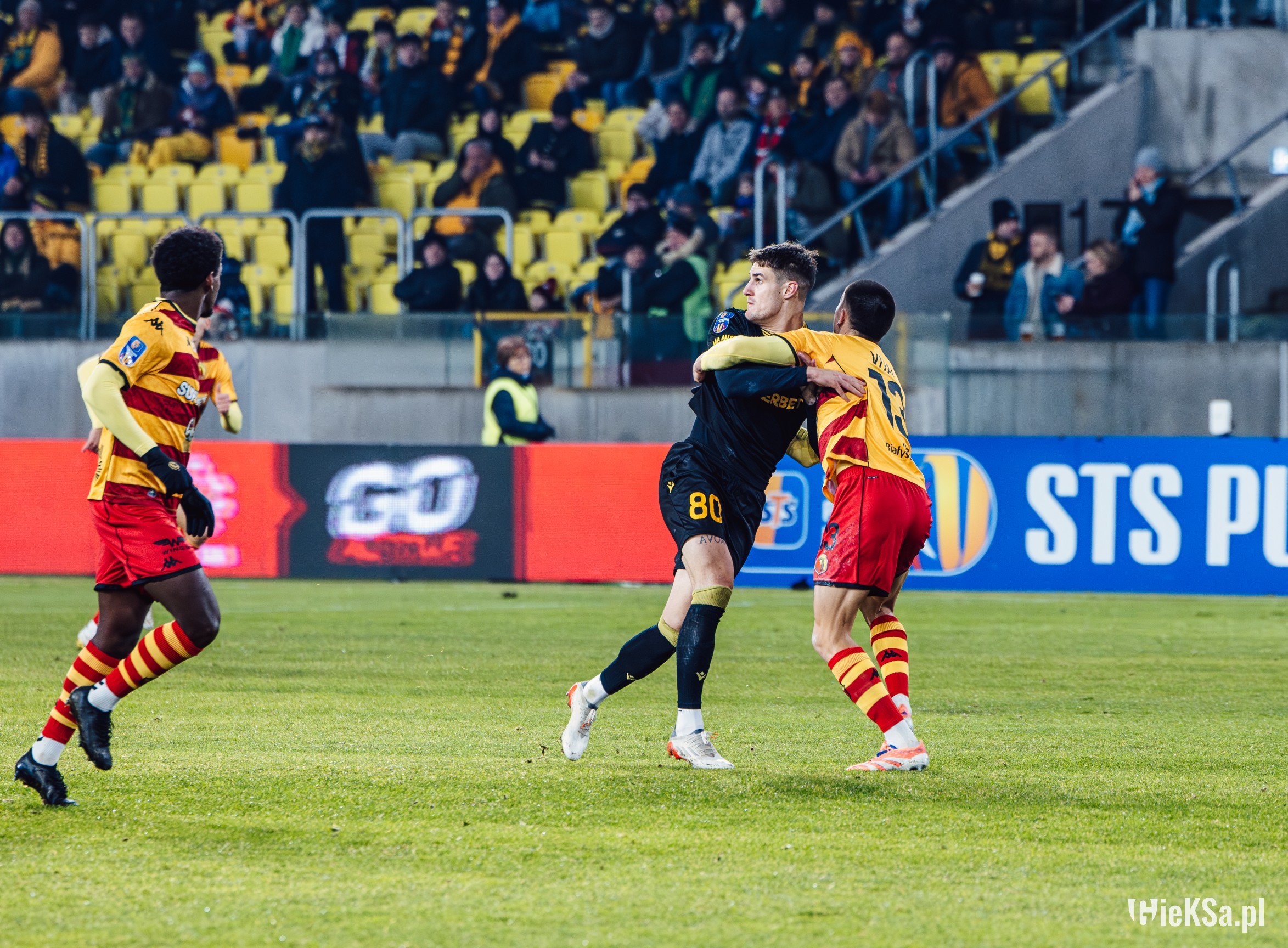 A Rafał Górak? Bardzo dyplomatycznie mówił, że rozumie decyzję sędziów, ale chyba trzy razy podczas wywiadu dał do zrozumienia, jakie miał zdanie… Panowie za zamkniętymi drzwiami rozmawiali, każdy dał swoje argumenty. Trener zwrócił uwagę, że ze względu na szczelnie wypełniony sektor gości mogło to wyglądać inaczej. Że białe linie widać i przy dobrej woli organizatora, boisko można byłoby doprowadzić do stanu używalności. Że taki wyjazd bez meczu to dodatkowe koszty dla klubu. Jakbym więc miał typować, to pewnie wyglądało to tak „ej Rafał, wiesz, jak jest, jaką mamy sytuację, wiem, że nie jest to wam na rękę, ale zgódź się na przełożenie meczu, odwdzięczymy się dobrym winkiem”… Być może więc ze względu na solidarność kolegów po fachu i gentelmen’s agreement, szkoleniowiec, mimo że wolałby zagrać – nie oponował.