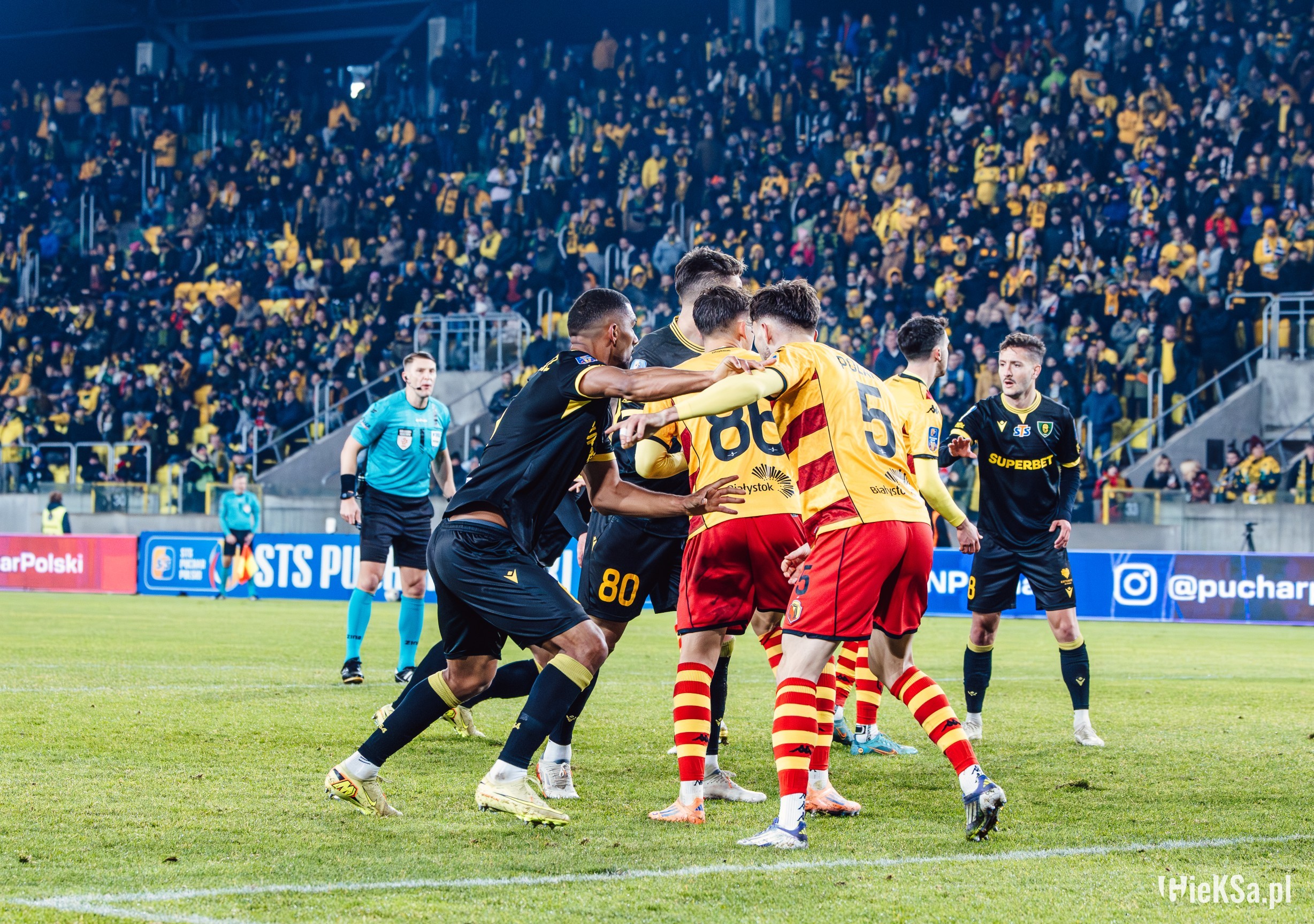 No i właśnie. To jest pytanie – czy komuś zależało, żeby wykorzystać opady i meczu nie rozegrać? Powiem wprost – reakcja organizatora meczu na tę „zimę” jest mocno zastanawiająca i nie wiem, czy Jagiellonia nie powinna z tego tytułu ponieść konsekwencji. Powtórzę – klub nie zrobił absolutnie nic, żeby ten mecz rozegrać. Począwszy od prognoz – przecież atak zimy w Polsce był już wczoraj, więc nie można było nie zakładać, że podobna sytuacja powtórzy się w Białymstoku. A jeśli tak, to przygotowuje się zastępy ludzi – choćby na wszelki wypadek – do tego, żeby boisko odśnieżyć. Pamiętacie, co było w zeszłym sezonie w meczu Radomiaka z Zagłębiem? Momentalnie, w ciągu kilku minut płyta po nawałnicy zrobiła się biała. Tam też było ryzyko przerwania i odwołania meczu. Ale ludzie robili, co w swojej mocy, odśnieżali, jak tylko się da i spotkanie zostało dokończone. Wczoraj w Rzeszowie kompletnie zasypany stadion został odśnieżony i mecz również się odbył. A w Białymstoku? Nie było chętnych czy nie miało ich być? Mogli nawet tych żołnierzy wziąć, co to zawsze są na trybunach. Cokolwiek. A tutaj kilku ludzi z łopatą zaczęło nieskładnie machać, ale chyba ktoś im powiedział, że to bez sensu – no i przestali.