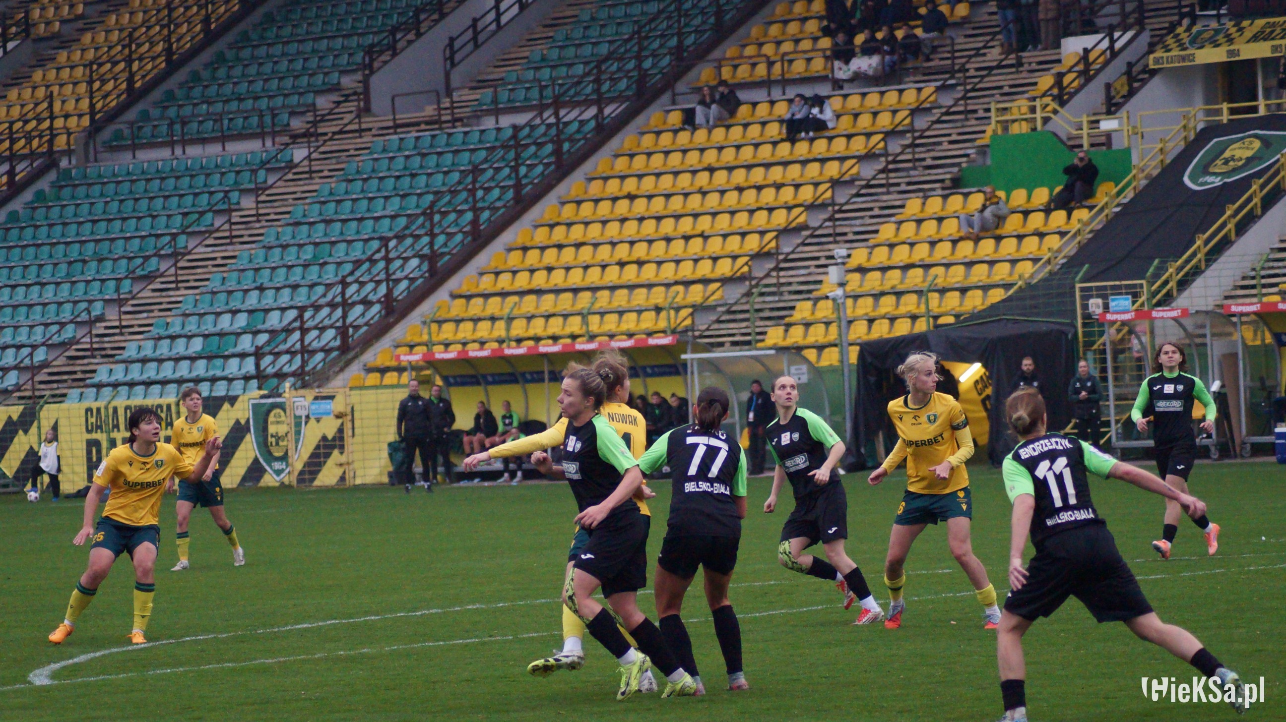 Zaczęło się od kontuzji Mateusza Kowalczyka. Zawodnik jeszcze próbował po obiciu okolic nerki pozostać na boisku, ale sam po chwili poprosił o zmianę. Kontuzja niepiłkarska, więc w tej chwili najważniejsze jest po prostu jego zdrowie i miejmy nadzieję, że ostatecznie nie będzie to nic poważnego. Potem w kilka minut katowiczanie stracili dwie bramki. Najpierw fatalnie zachowali się w obronie, bo Drapiński był kompletnie niepilnowany i wystarczyło mu tylko dołożyć stopę do piłki, aby pokonać Rafała Strączka. No a potem Lukas Klemenz też jakoś intuicyjnie chciał wybić piłkę, ale pokonał własnego bramkarza. Mieliśmy nadzieję na ten rzut karny, ale po analizie VAR sędzia Raczkowski podyktowaną jedenastkę anulował – słusznie, bo faulu nie było. I tak mieliśmy jeszcze szczęście, bo tych plag mogło być więcej – w początkowej fazie meczu na boisku opatrywany był Bartosz Nowak, interwencja medyczna była też przez chwilę potrzebna Wasylowi. Mimo wszystko za dużo tych nieszczęść, jak na jeden mecz.