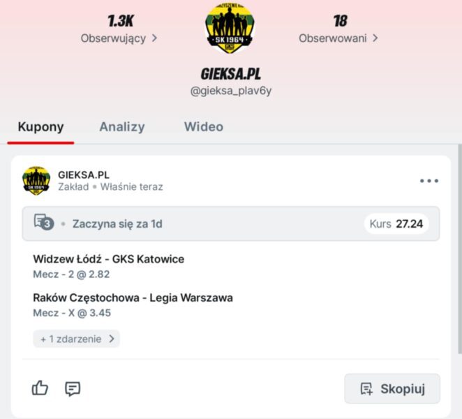Przez tyle lat czekaliśmy na Puchar Polski jak na okno do Ekstraklasy z nadzieją, aby uchyliło się chociaż odrobinę i pozwoliło oddychać tym samym powietrzem co krajowa elita… Dzisiaj tuzy Ekstraklasy otwierają listę drużyn, z którymi nie chcemy grać na tym etapie. To najlepszy dowód na to, jaki skok wykonaliśmy przez ostatnie dwa lata: nomen omen lata świetlne! Z uwagi na zależności rodzinne (kuzyni z Dolnego Śląska kibicujący Śląskowi) najbardziej chciałbym trafić Śląsk na wyjeździe. U siebie zdążyliśmy zagrać i razem z kuzynami oglądaliśmy to „widowisko” na starej Bukowej. We Wrocławiu z uwagi na Święta nie mieliśmy szans się spotkać. Poza tym z uwagi na cykl „Okiem rywala” łapię kontakt z przedstawicielami innych klubów – z jednymi gorszy, z drugimi lepszy i czasem wbijamy sobie różne szpilki 😉 Tym kluczem chciałbym trafić na Widzew (pozdrawiam Michał) lub Koronę (piona Michał i marxokow). Górnik za to dopiero w finale, najlepiej na Śląskim, bo 3 maja córka ma komunię, więc logistyka byłaby łatwiejsza 😂 Rywali z niższych lig trochę się boję, z uwagi na stan boiska w grudniowe popołudnie, ale bytomski orlik powinien być wtedy jak najbardziej zdatny do użytku 😜 Tak czy inaczej, sam fakt, że w listopadzie rozmawiamy jeszcze o GieKSie w Pucharze Polski jest dla mnie powodem do uśmiechu. Czas na kolejny krok w stronę Narodowego.