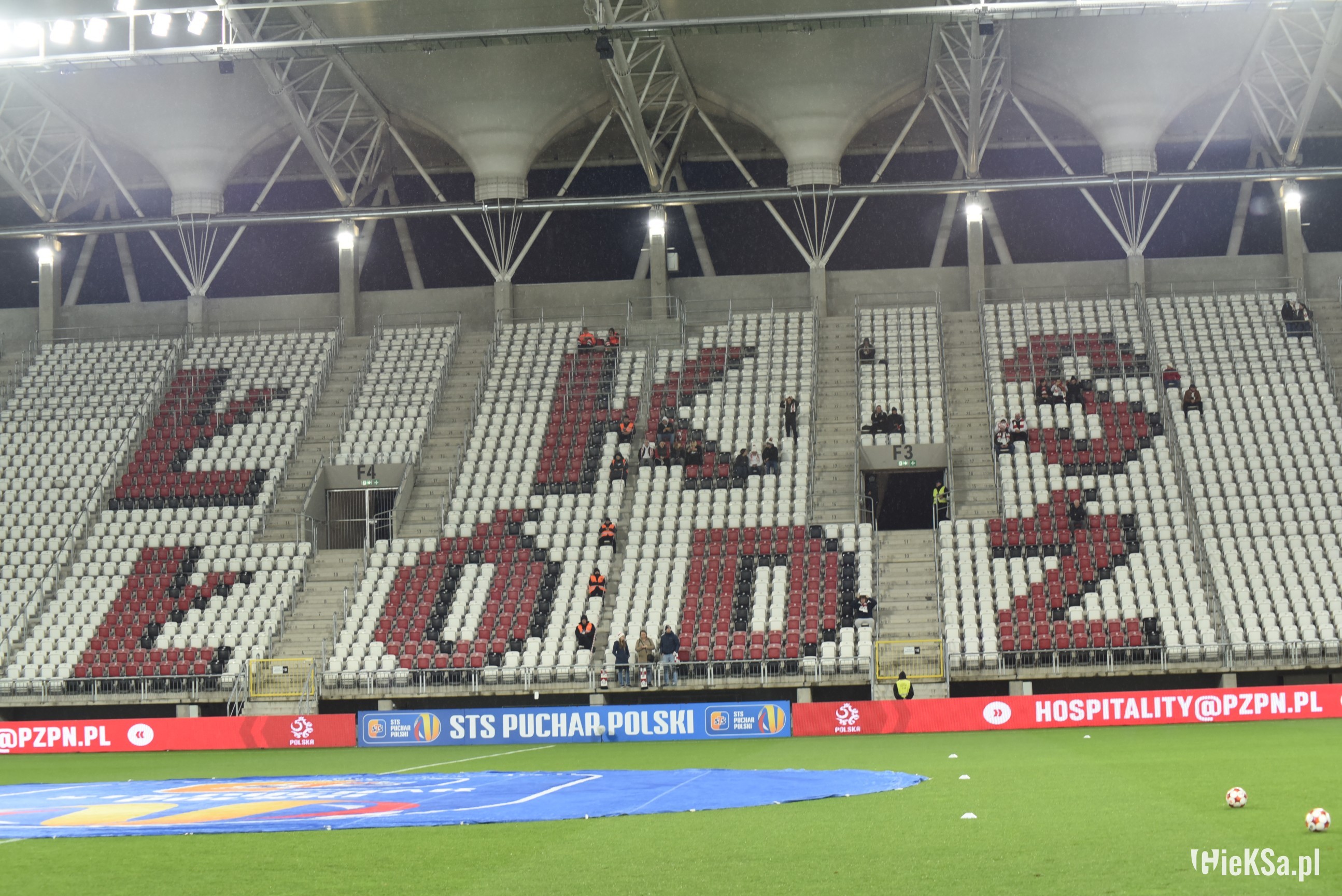 15. Na obiekcie był pewien relikt kilkuletniej przeszłości. Otóż przy wejściu na prasówkę znajdowały się dwie kartki z hasłem do WiFi. Problem jednak polegał na tym, że jedna z nich to była kartka z… finału Pucharu Polski 2021. Ciekawe to, czy tam nikt nigdy z klubu się nie zapuścił, by ją zdjąć? A może to po prostu pamiątka?