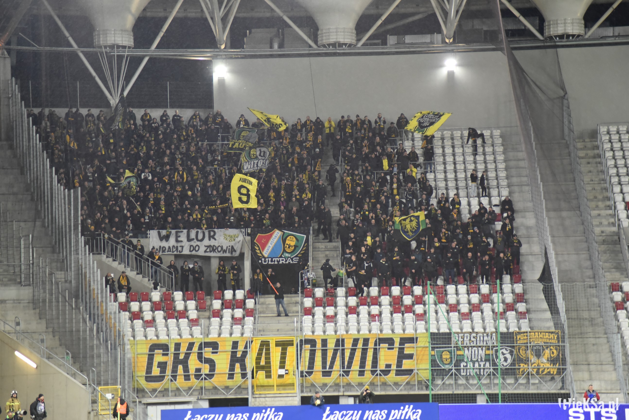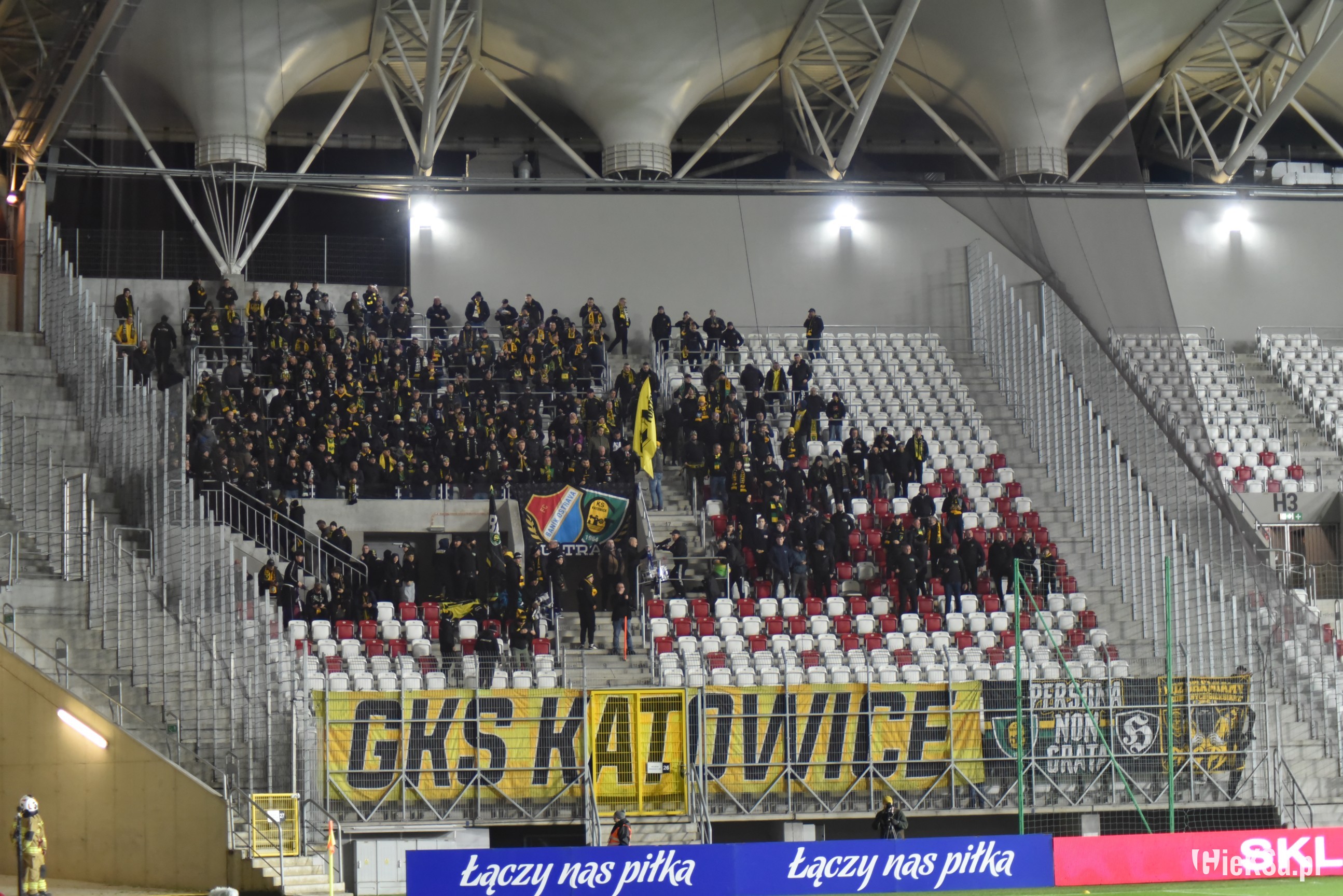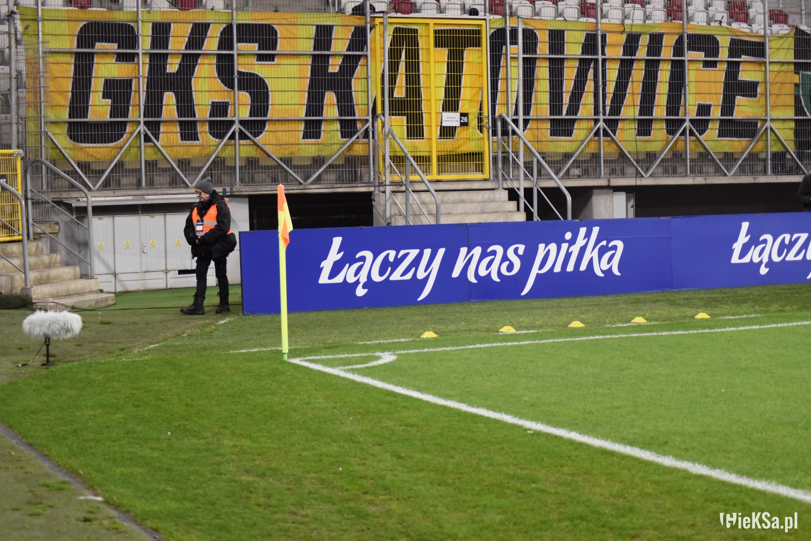21. A potem mieliśmy już granie. Powiedziałbym, że przecieraliśmy oczy ze zdumienia, gdy GKS od początku atakował, gdyby to była prawda. Znamy ten schemat choćby z meczów z Legią czy Cracovią. Problem był taki, że przewaga nie była udokumentowana bramką. Tutaj była – i to dwoma trafieniami. Kibice obu drużyn od początku oglądali bardzo ciekawy mecz.