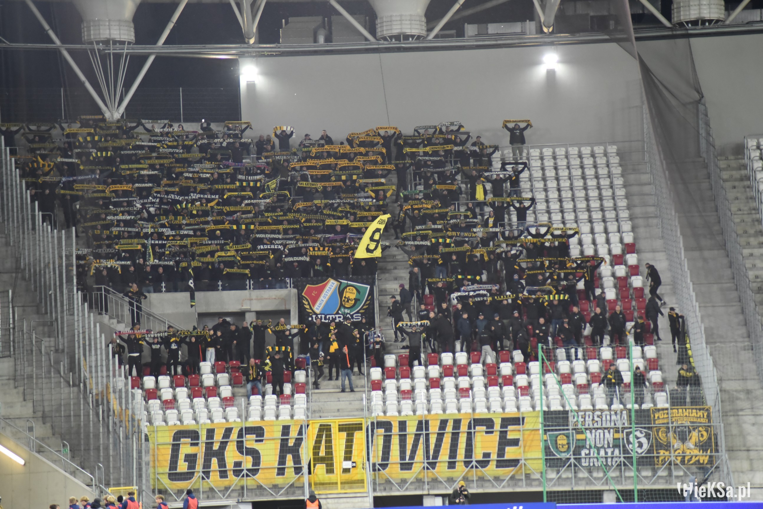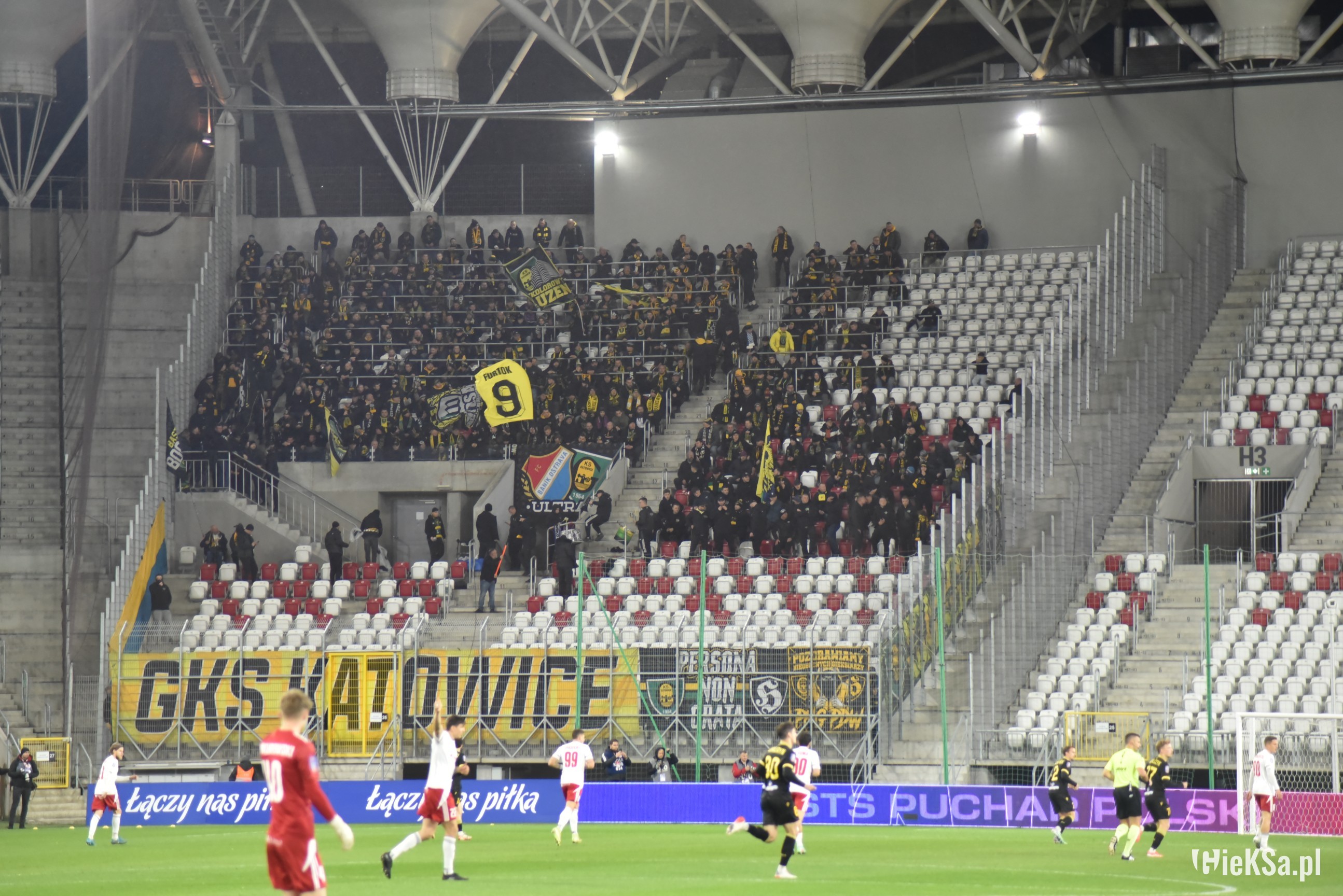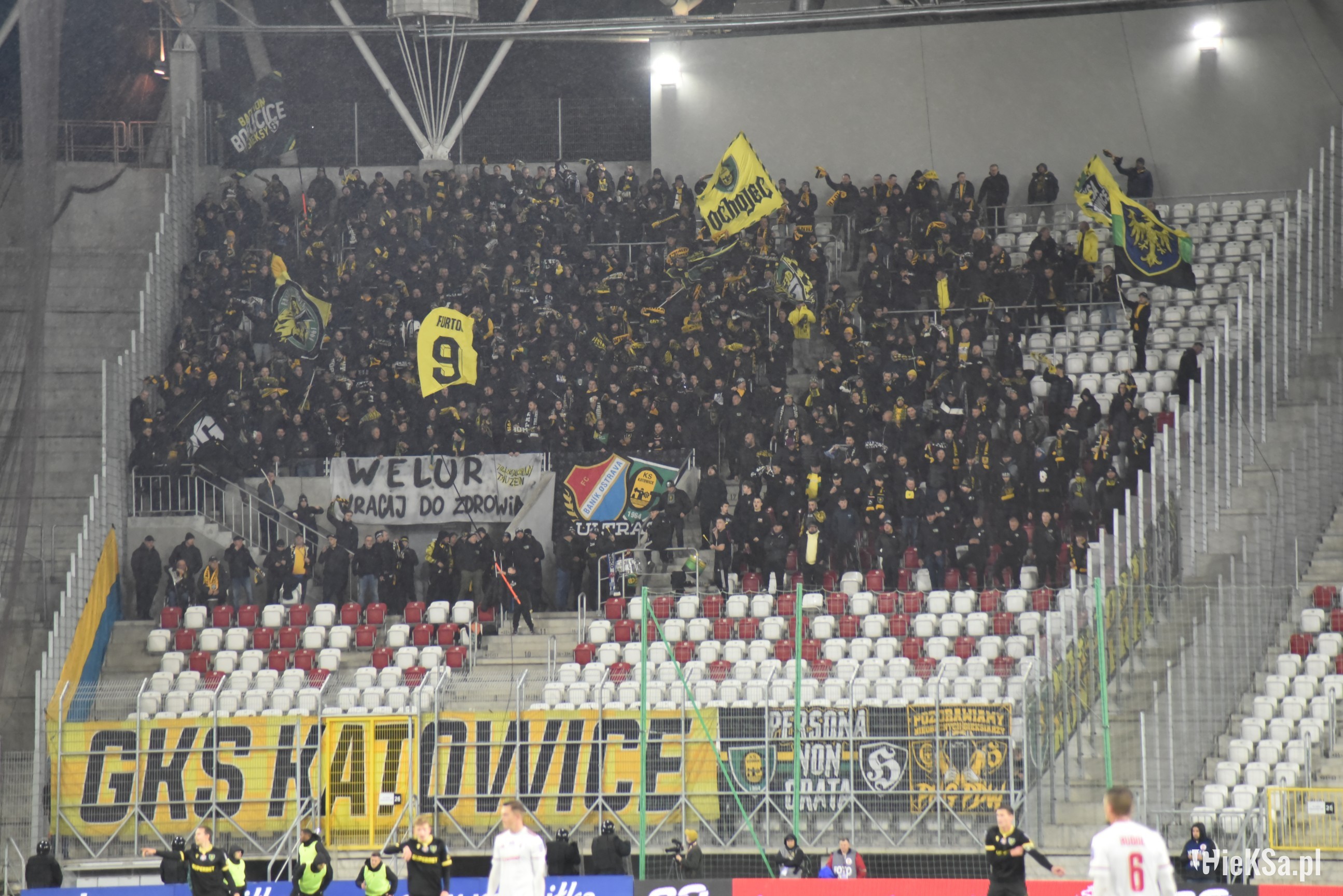 21. A potem mieliśmy już granie. Powiedziałbym, że przecieraliśmy oczy ze zdumienia, gdy GKS od początku atakował, gdyby to była prawda. Znamy ten schemat choćby z meczów z Legią czy Cracovią. Problem był taki, że przewaga nie była udokumentowana bramką. Tutaj była – i to dwoma trafieniami. Kibice obu drużyn od początku oglądali bardzo ciekawy mecz.