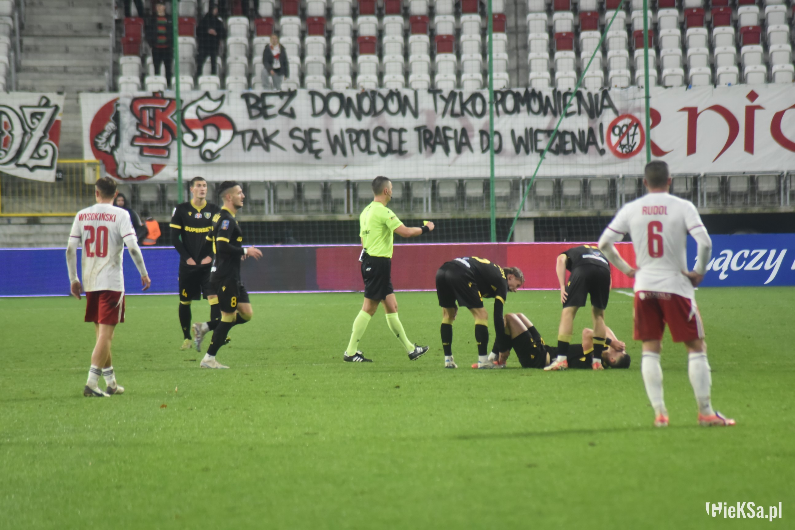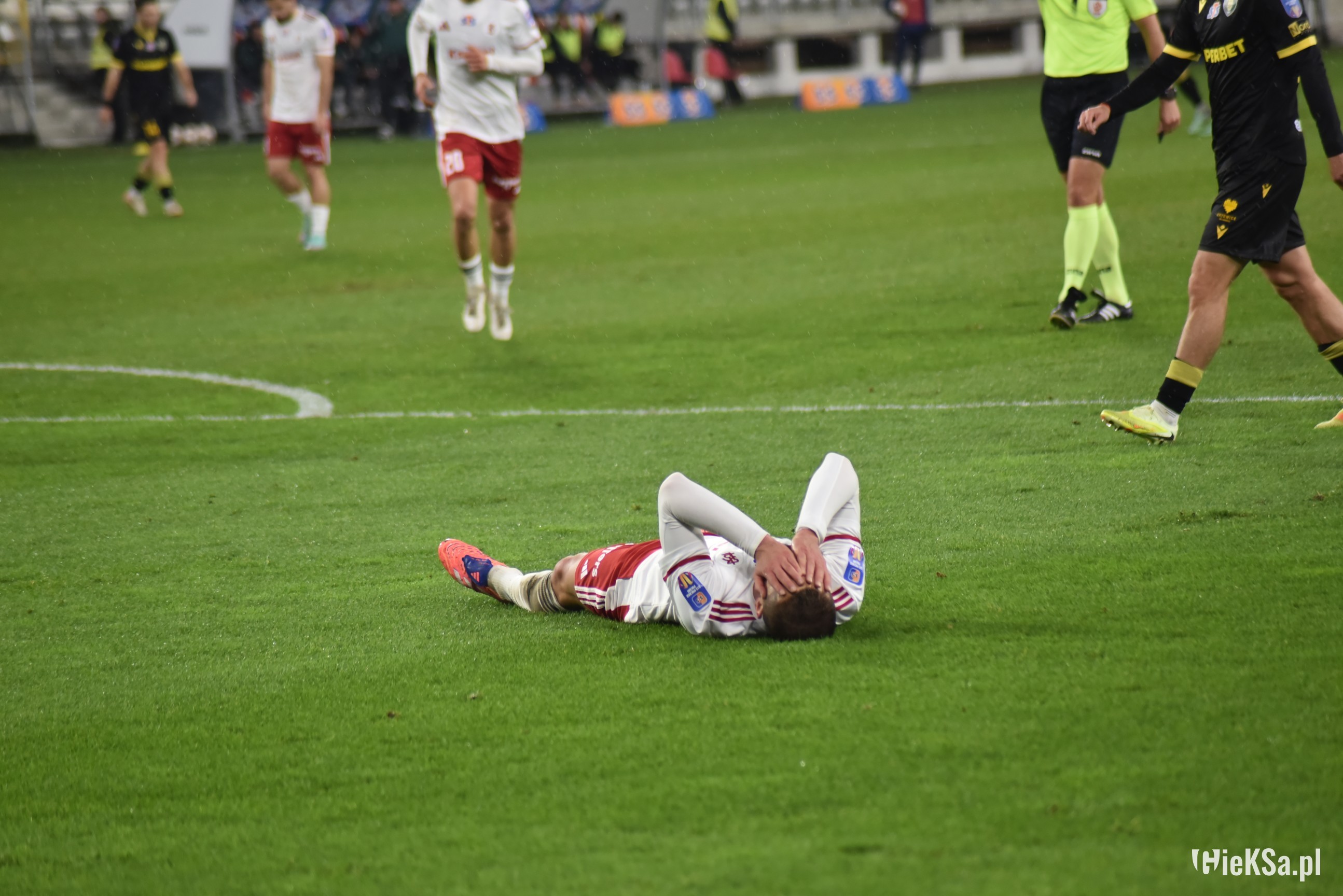 Do straty drugiej bramki, szczególnie przez pierwsze 15 minut wyglądaliśmy, jakbyśmy grali pierwszy raz ze sobą. Wymuszone lub nie straty piłki i błędy techniczne, na które ciężko było zareagować. 0:2 i… zeszło nas całe ciśnienie. Dlatego zagraliśmy najlepsze dwadzieścia pięć minut w całym sezonie. Do bramki na 2:2 i po niej, kiedy złapaliśmy wiatr w żagle i czułem, że będzie to, co mówiłem przed meczem. Potem czerwona kartka. Na drugą połowę chcieliśmy przetrzymać do 70. minuty przy 2:2 i potem zaryzykować i zagrać o zwycięstwo. W pierwszej akcji, po pierwszym rzucie wolnym w drugiej połowie nie byliśmy w stanie kryć wszystkich zawodników, którzy dobrze grają głową lub są groźni po SFG – musieliśmy jednego zostawić i był to właśnie Zrelak. Musieliśmy poświęcić do centrum, a on schodził poza światło bramki, bo większe szanse na gola są właśnie ze światła niż na dalszym słupku. Pomyliłem się. Taką bramkę straciliśmy, nie zdołaliśmy w ostatniej strefie wyblokować. Potem miałem poczucie, że przy odrobinie szczęścia odrobimy na 3:3, bo mieliśmy dobry moment, ale nie strzeliliśmy. A potem co? Masz 2:3 i grasz w „10”, stoisz nisko i próbujesz przegrać jak najmniej lub idziesz po kolejną bramkę. Strzelał je przeciwnik, gratulacje dla GKS i trenera Góraka. Wygrali zasłużenie z przebiegu całego spotkania. Dla nas jest to bardzo ciężki czas, ciężki okres i musimy wszyscy uderzyć się w piersi, wziąć trochę więcej odpowiedzialności za to, co się w ostatnim czasie dzieje, ale pretensje mogę mieć tylko dla siebie.