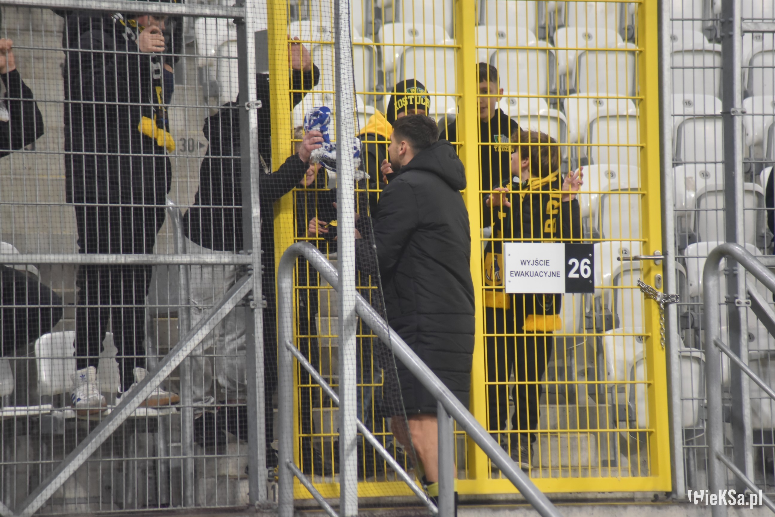 34. W końcu mieliśmy odrobinę radości. Po meczu oczywiście nagrałem swoją nagrywkę, a z racji tego, że byliśmy – jak wspomniałem – nieopodal komentatorów, zaprosiłem Tomasza Wieszczyckiego do wywiadu. Były reprezentant Polski zgodził się i przeprowadziliśmy sympatyczną, krótką rozmowę. Wieszczu zapowiedział, że za tydzień będzie na meczu z Koroną.