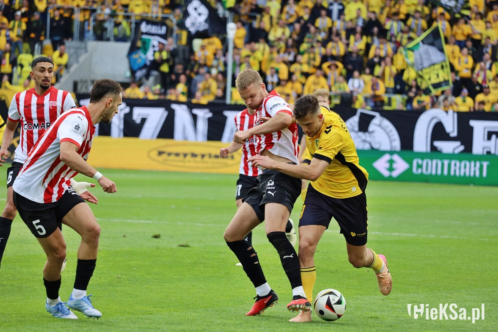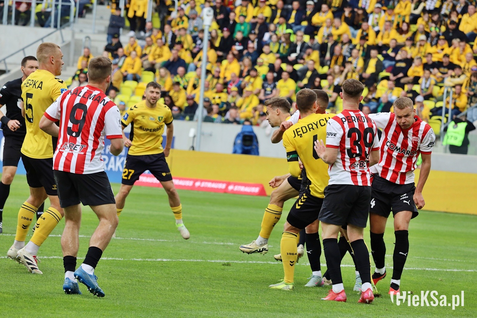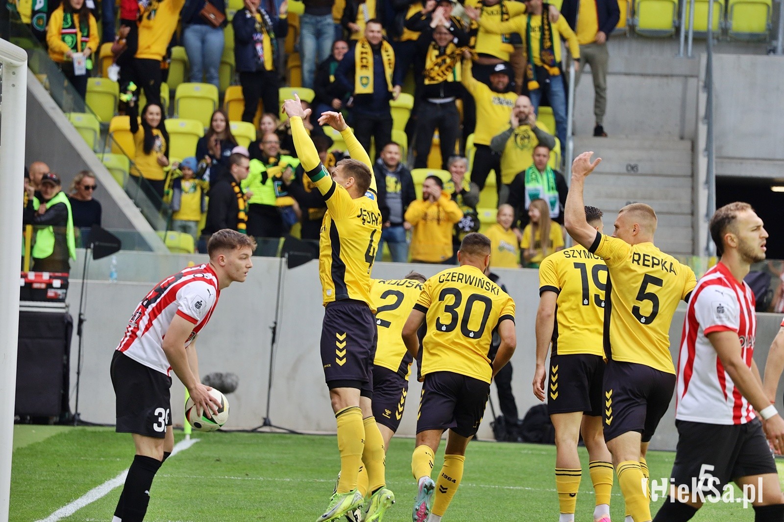 Nie zapominajmy też o świetnej defensywie naszej drużyny. To była kontynuacja gry z meczu z Pogonią. Poświęcenie, żółty (w tym przypadku czarny) mur naszych piłkarzy, wślizgi, bloki i wybloki. To co było naszym mankamentem na początku sezonu, w dwóch ostatnich meczach stało się chlubą. Nasz zespół znakomicie gra w obronie. A jeśli dołożymy do tego fakt, że nie opieramy się tylko na kontrach, tylko budujemy ciekawie swoje akcje ofensywne, można powiedzieć, że rozwój tej drużyny trwa w najlepsze.