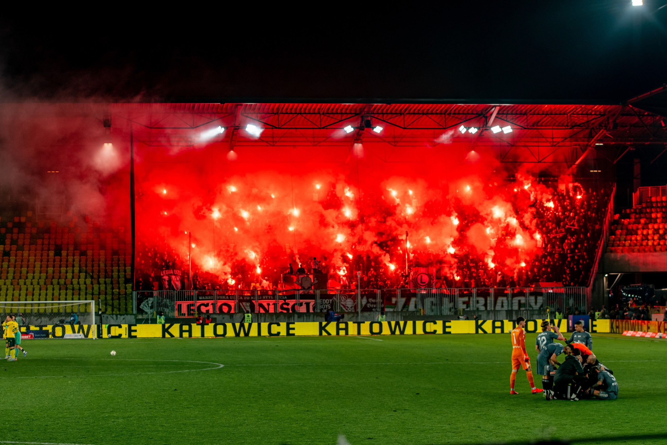 Ostatni nasz pojedynek to jesień 2025 roku. Legioniści chwilę wcześniej odwiesili swój bojkot, więc mecz mógł żyć pełnią wzajemnych „uprzejmości”. W niedzielny wieczór obecnych w Warszawie było 734 fanatyków GieKSy, w tym 17 JKS i 13 FCB. Legia, dosłownie rzutem na taśmę, pokonała nas 3:1.