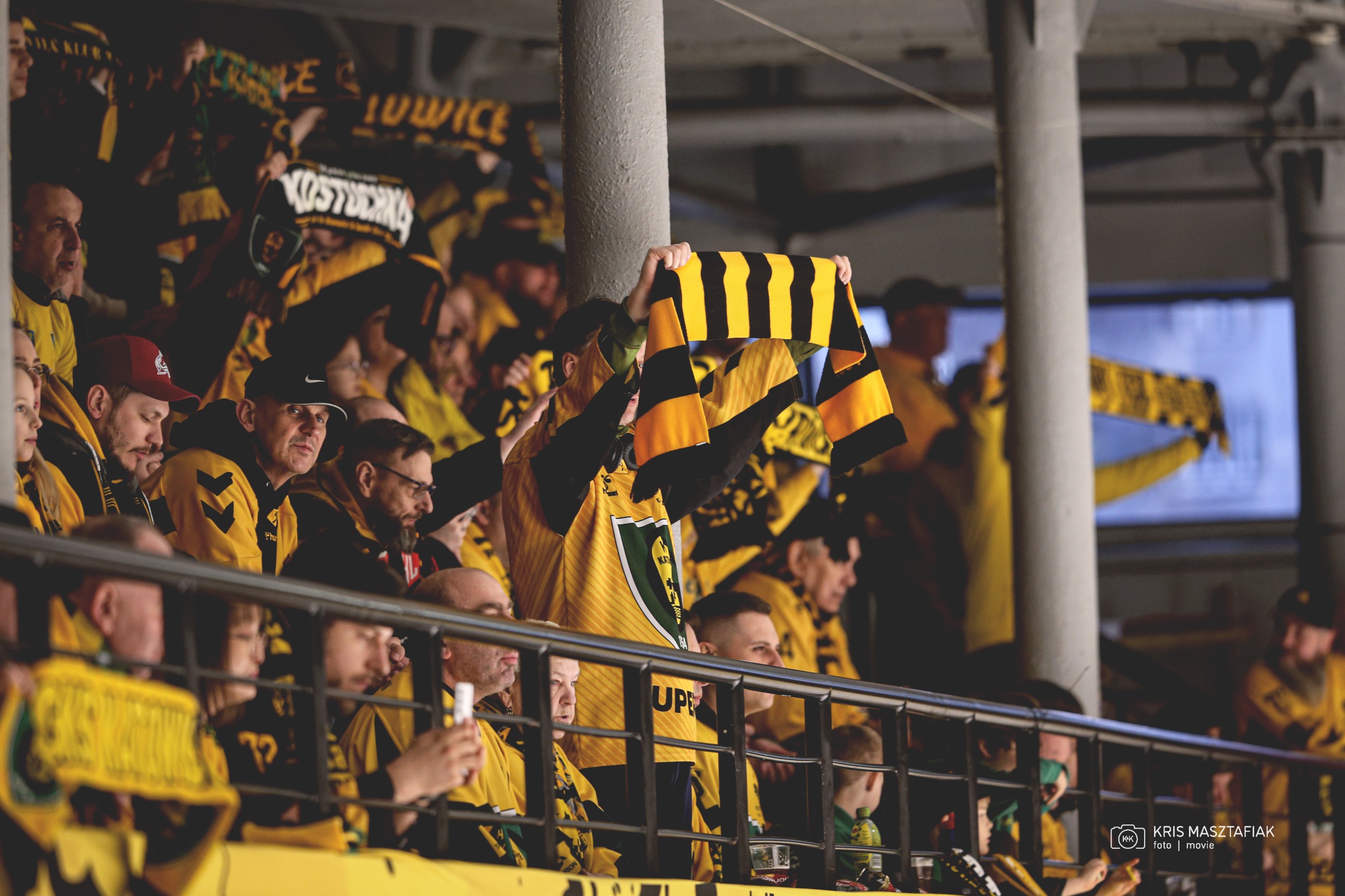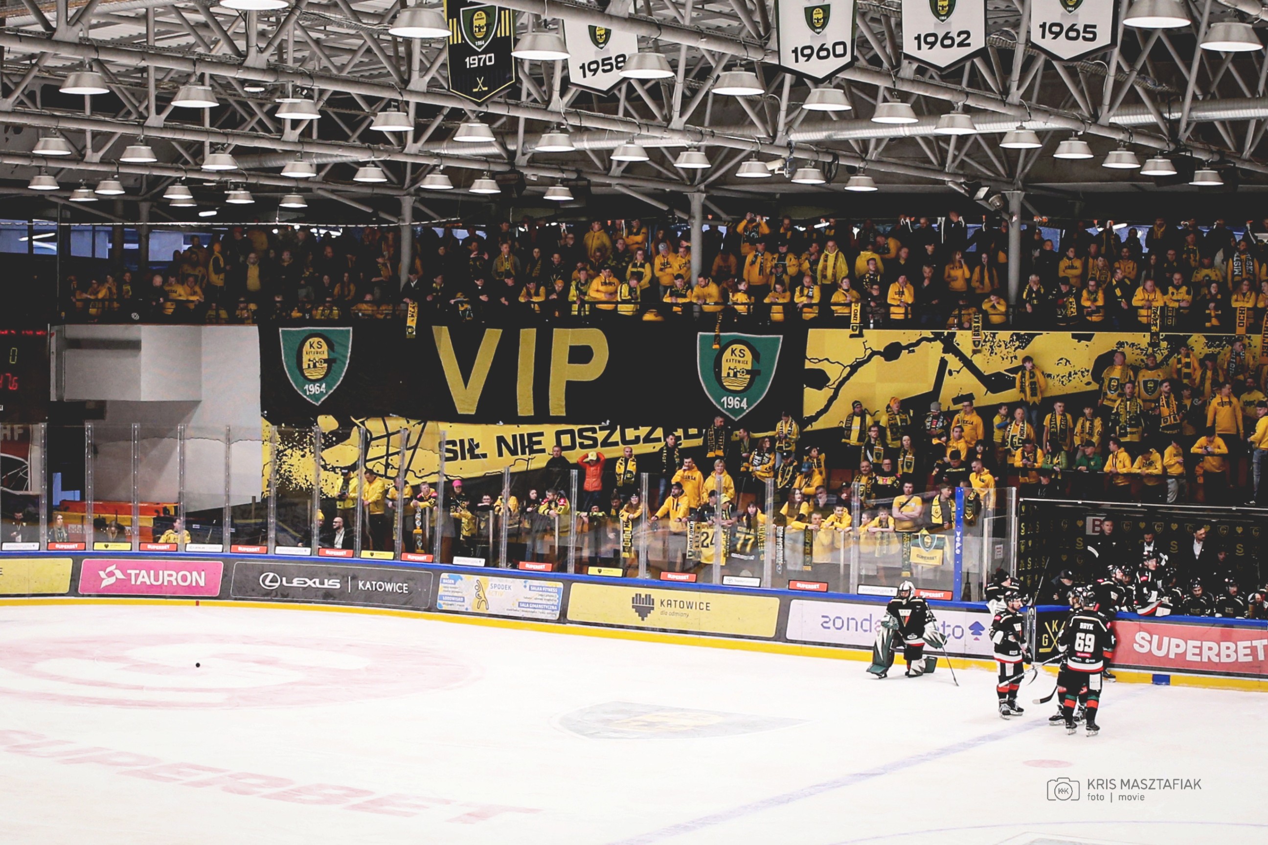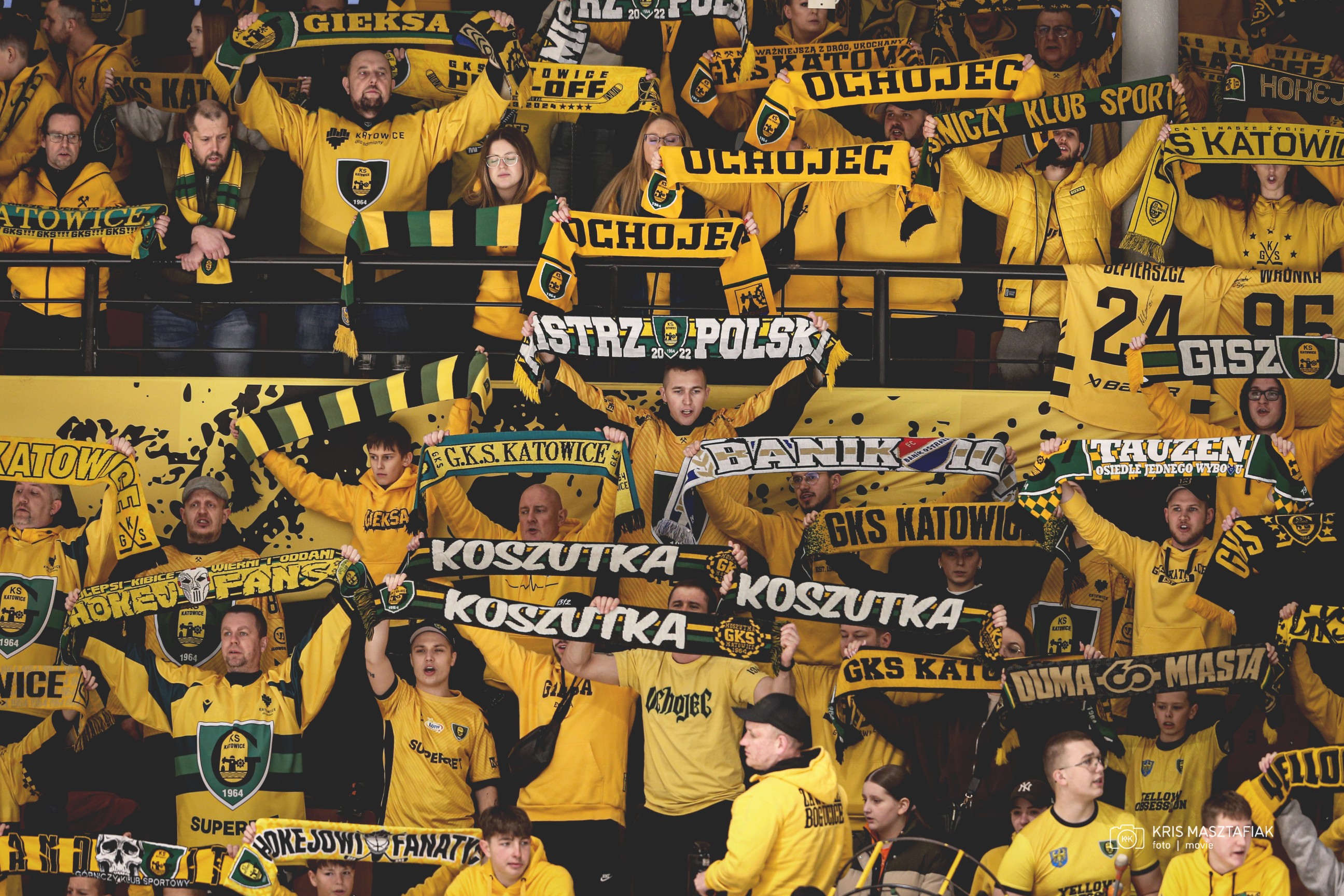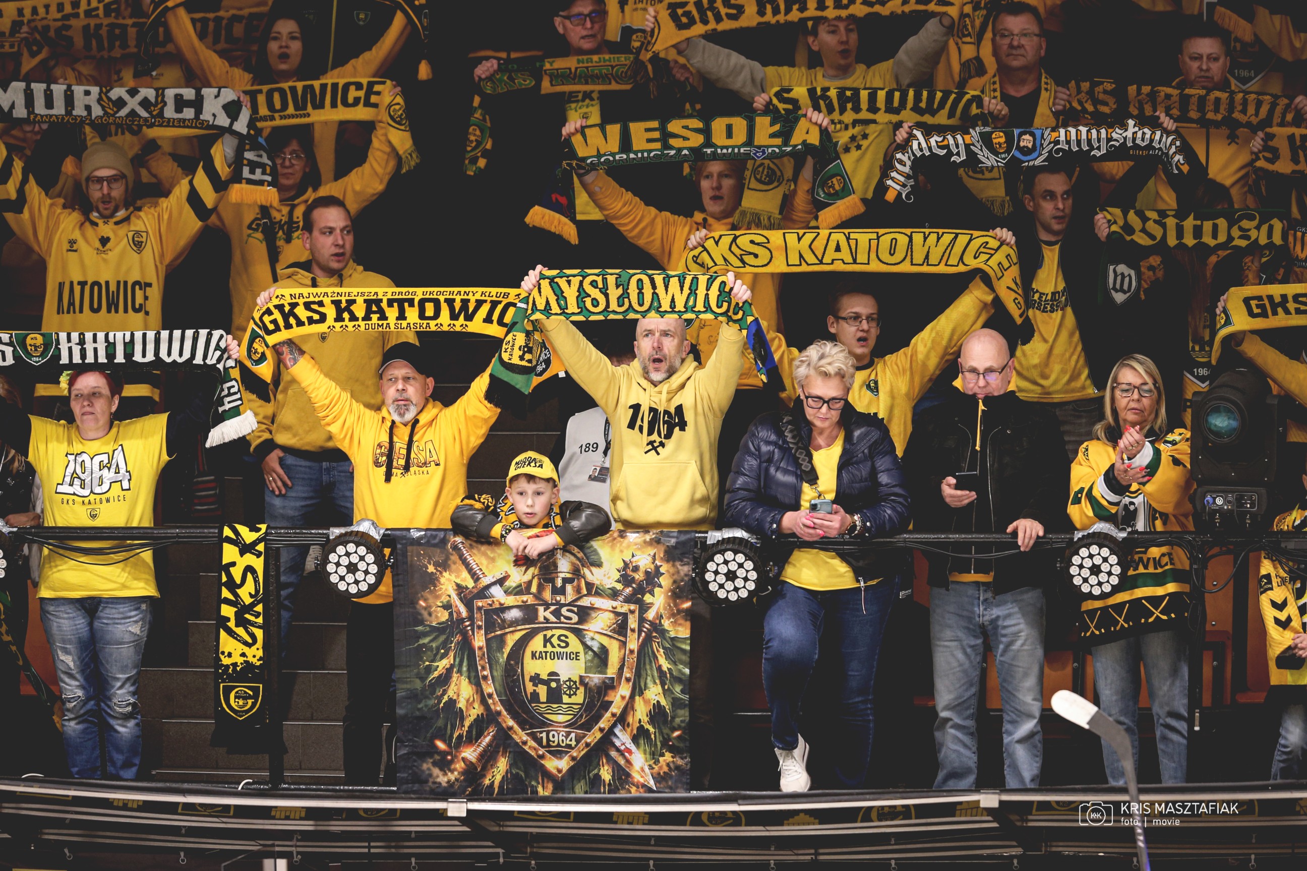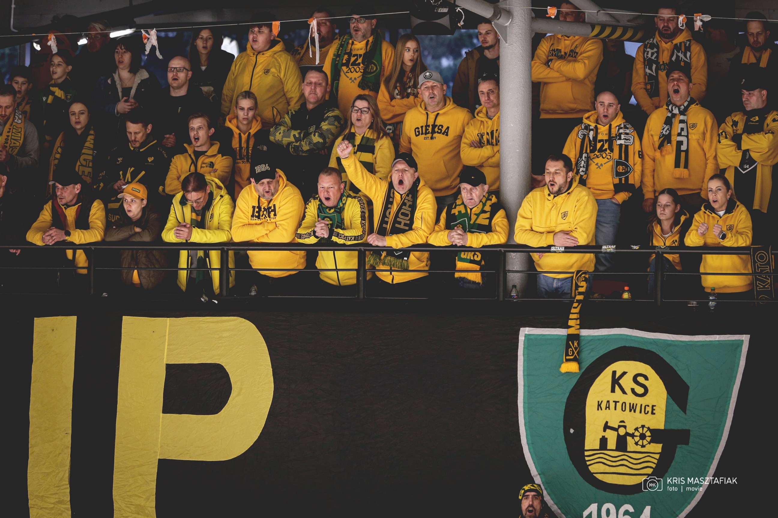 17. Kibice Jagi bardzo głośno dopingowali, Katowiczanie na sektorze gości też odgryzali się, mimo, że byli w liczbie niemal czterokrotnie niższej niż w listopadzie na niedoszłym meczu.