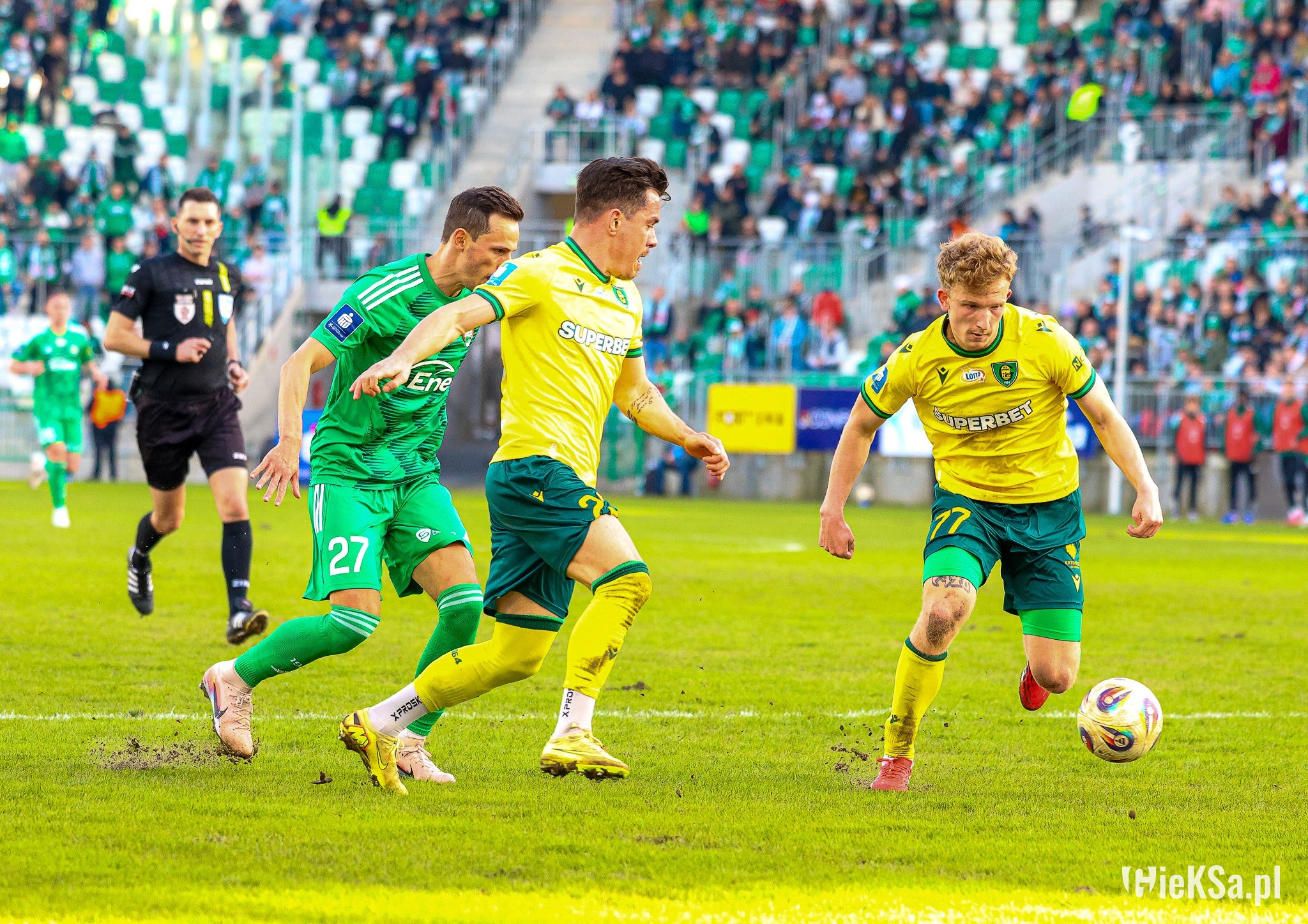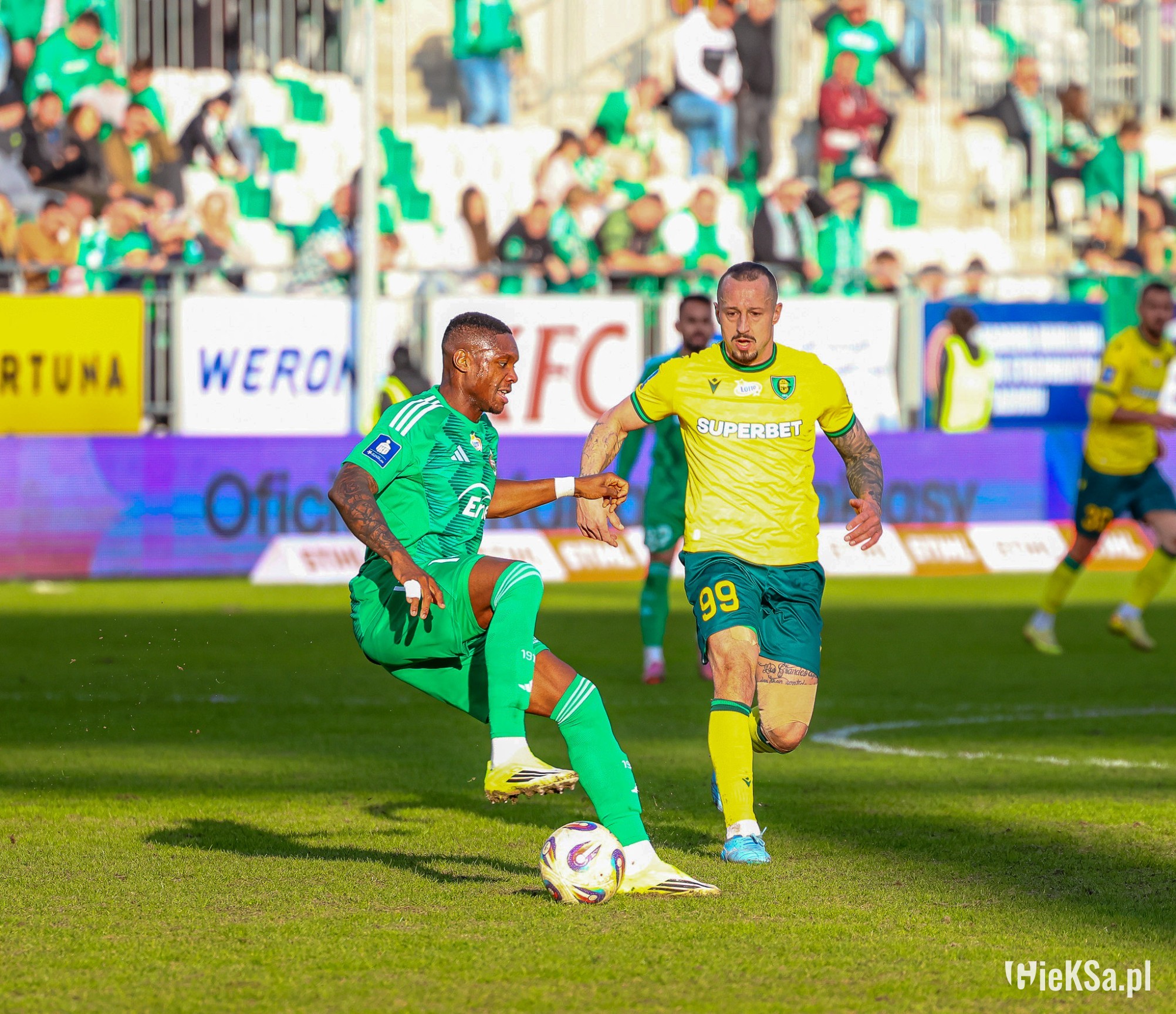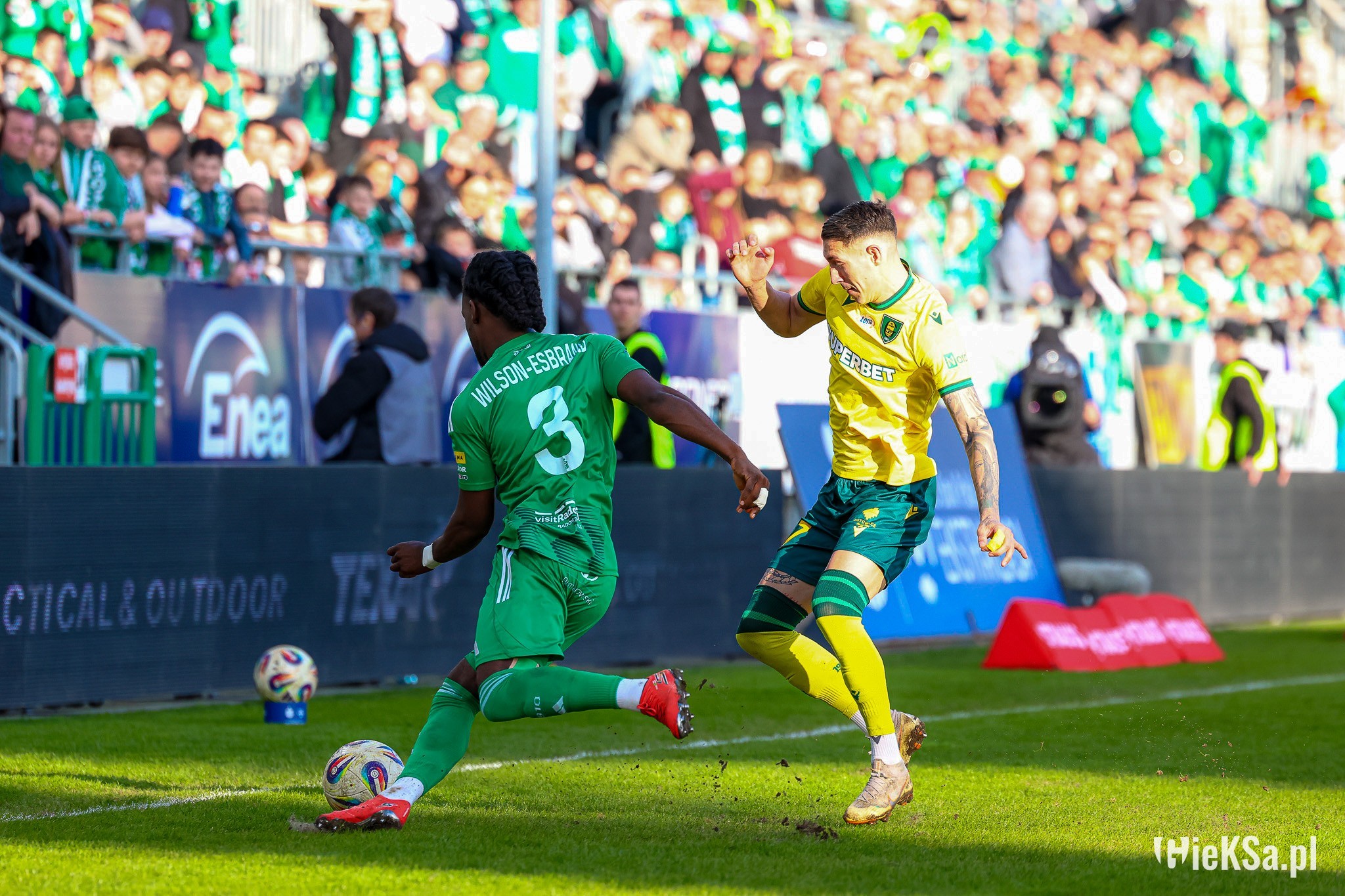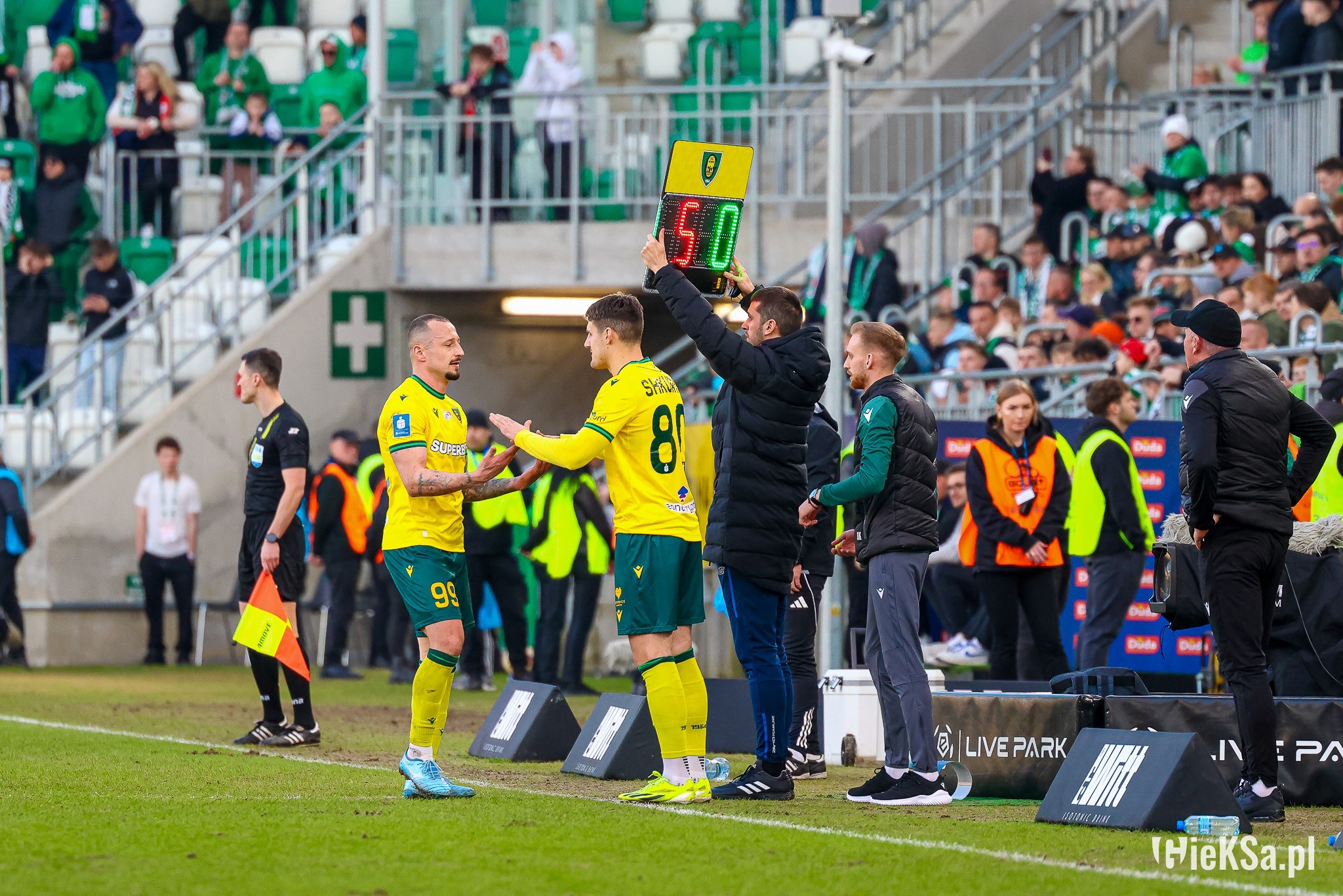 Wracając do symbolicznego Lukasa. GieKSa ma swój sposób na stałe fragmenty i to „drugie tempo”, o którym trener mówił w poprzednim sezonie jest cały czas praktykowane. Lukas Klemenz zachował się w tej sytuacji jak rasowy napastnik, dostał piłkę prostopadłą, a nie centrę z boku boiska i z pierwszej – w sytuacji sam na sam – strzelił gola. Schematy.
