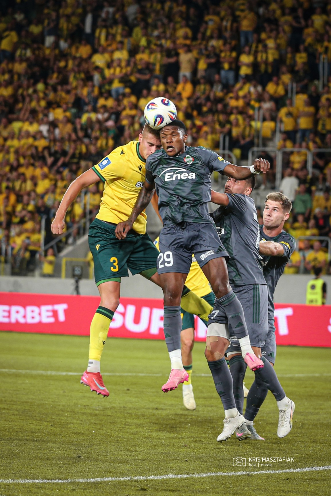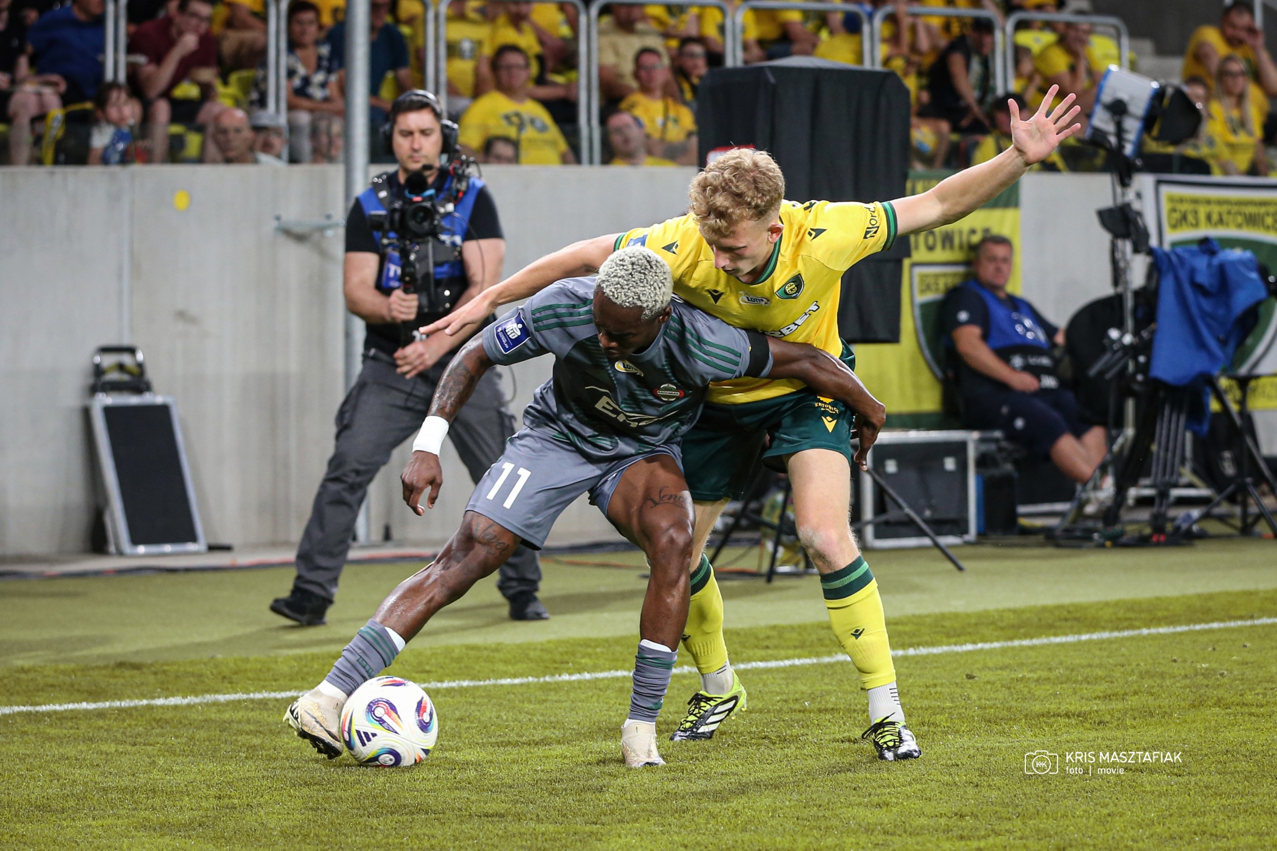 Jest frustrujące, że jako cała drużyna nie możemy zagrać na tyle dobrego meczu, żeby zarówno w defensywie, jak i ofensywie być efektywnymi. Piszę o tym dlatego, że zarówno w Płocku, jak i wczoraj ogólna gra defensywna była już lepsza niż w praktycznie wszystkich poprzednich spotkaniach (może poza meczem z Arką). Nadal to nie wystarcza do gry na zero z tyłu i jest mocno irytujące, że w każdym meczu tracimy gola. Katowiczanie nie ustrzegli się błędów. Bramka Fiabemy ostatecznie była jakaś… dziwna. Najpierw na radar go pilnował Jesse Bosch, i zawodnik był totalnie sam przed polem karnym, co było karygodne. Żaden z naszych zawodników nie zdołał go zablokować. Dodatkowo można zapytać, co zrobił w tej sytuacji Rafał Strączek. Może to jest jakaś szkoła bramkarska, by nie stać w środku światła bramki tylko gdzieś w ¾… W każdym razie przez to strzał w miarę w środek bramki został przepuszczony, przy czym dodatkowo Rafał interweniował tak, jakby piłka mu przeleciała pod brzuchem, schował ręce…