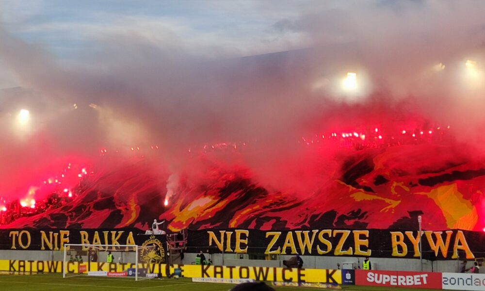 Wiosną 2025 Lech grał o mistrza, a my mieliśmy już pewne utrzymanie. Zagraliśmy na nowym stadionie i po raz pierwszy stworzyliśmy kartoniadę na dwie trybuny („GieKSa Gol”). Na murawie padł remis 2:2, ale Pyry ostatecznie zdobyły Mistrzostwo Polski, pokonując w ostatniej kolejce Piasta Gliwice. Do Katowic zawitało 1250 kibiców Kolejorza, co było ich najlepszą liczbą u nas w historii.