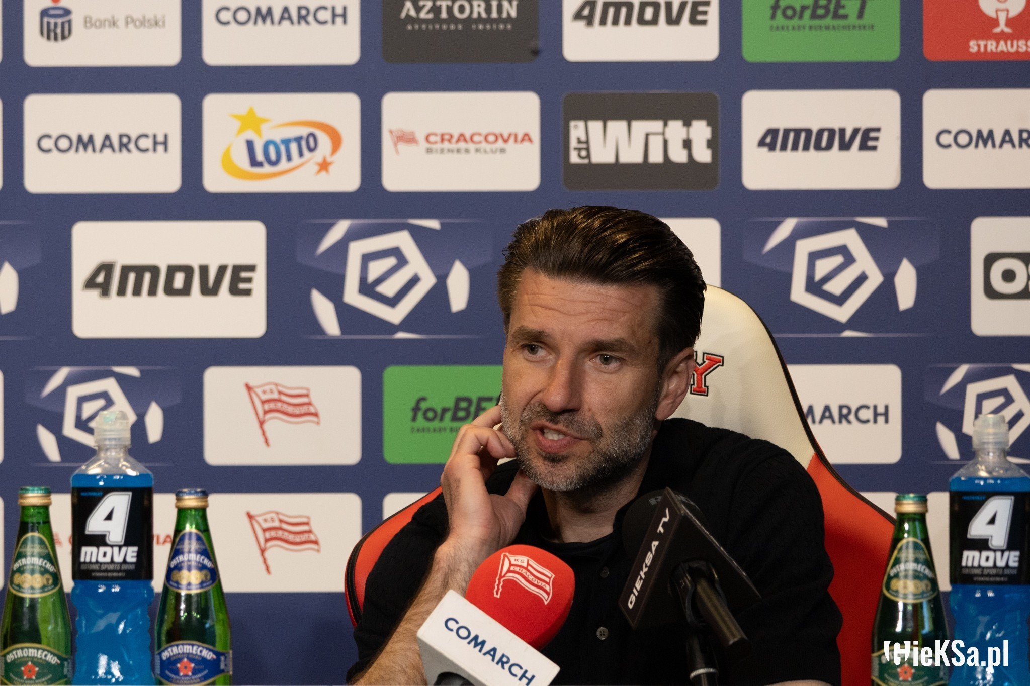 Ten mecz miał dwie połowy. Mam na myśli różnicę, między połowami, bo w pierwszej połowie byliśmy w dobrej formie i stworzyliśmy 1-2 klarowne sytuacje, ale druga połowa była skrajnie przeciwna. Mecz wygrała drużyna lepsza i jest to trudne do zaakceptowania. Musieliśmy dokonać kilku zmian w naszym zespole, szczególnie w przerwie dokonaliśmy zmiany Rodina, jedynego doświadczonego zawodnika w naszej obronie, który dostał w żebra i miał problemy z oddychaniem. Jak się traci takiego zawodnika, to ma to duży wpływ na nasz zespół. W mojej opinii graliśmy za bardzo bezpiecznie w ataku, bez ryzyka, bez prób zagrania w pole karne. Gratulujemy trenerowi GKS-u, lepsza drużyna wygrała. Musimy się podnieść, bo mamy dziewięć meczów do końca.