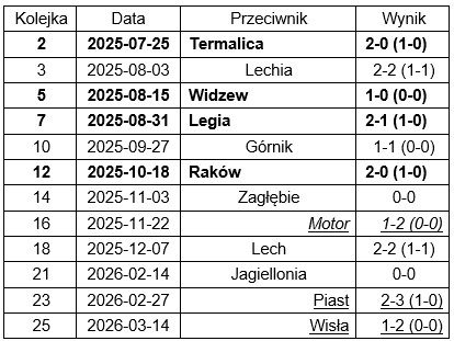 2:0 z Lechią i trzy punkty w lidze. Pierwsza połowa wyrównana, Lechia miała więcej z gry, ale to my byliśmy konkretniejsi. Druga połowa to sprawniejsze zarządzanie wynikiem, choć nie bez nerwowych momentów.