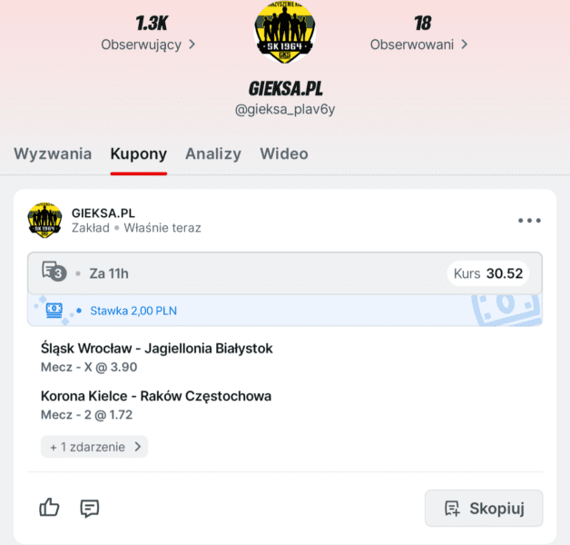 Rzeczywiście, mój typ się nie sprawdził i po meczu śmiałem się w duchu, co ze mnie za znawca. Moim zdaniem tym meczem przegraliśmy mistrzostwo Polski, więc po czasie zabolało podwójnie. Szczególnie nie lubię przegrywać z Legią, Widzewem czy Lechem, a tutaj przyszła porażka z beniaminkiem. Mówi się trudno, bo takie wpadki się zdarzają. Myślę, że w najbliższą niedzielę 3:0 dla nas już musi być. Raków jest w gazie, a GieKSa będzie delikatnie podmęczona pojedynkiem z Jagiellonią, który musiał was sporo kosztować. Raków też co prawda grał ze Śląskiem, ale moim zdaniem wyglądało to trochę tak, jakby grał na pół gwizdka. Dlatego forma fizyczna będzie działać na naszą korzyść.