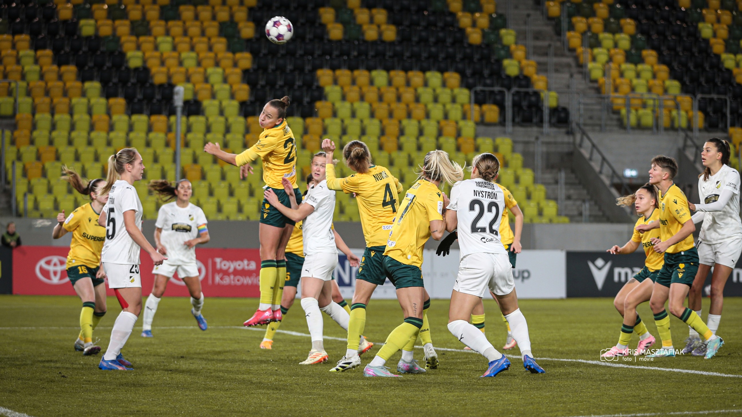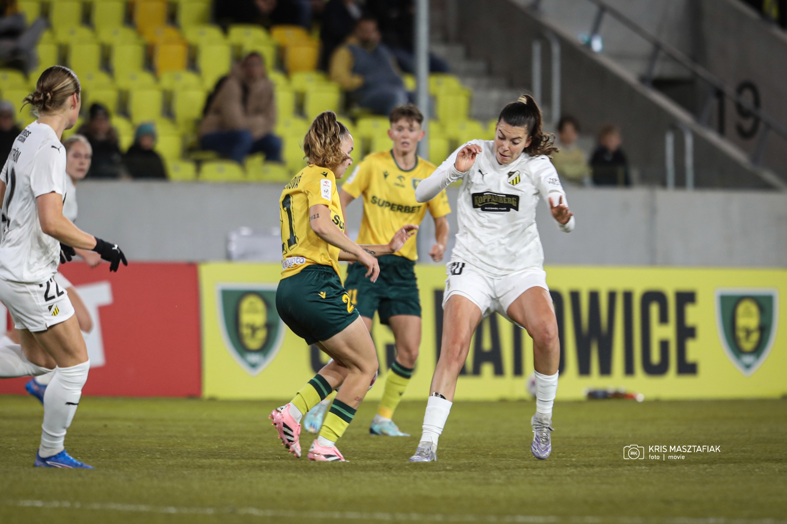 Jest frustrujące, że jako cała drużyna nie możemy zagrać na tyle dobrego meczu, żeby zarówno w defensywie, jak i ofensywie być efektywnymi. Piszę o tym dlatego, że zarówno w Płocku, jak i wczoraj ogólna gra defensywna była już lepsza niż w praktycznie wszystkich poprzednich spotkaniach (może poza meczem z Arką). Nadal to nie wystarcza do gry na zero z tyłu i jest mocno irytujące, że w każdym meczu tracimy gola. Katowiczanie nie ustrzegli się błędów. Bramka Fiabemy ostatecznie była jakaś… dziwna. Najpierw na radar go pilnował Jesse Bosch, i zawodnik był totalnie sam przed polem karnym, co było karygodne. Żaden z naszych zawodników nie zdołał go zablokować. Dodatkowo można zapytać, co zrobił w tej sytuacji Rafał Strączek. Może to jest jakaś szkoła bramkarska, by nie stać w środku światła bramki tylko gdzieś w ¾… W każdym razie przez to strzał w miarę w środek bramki został przepuszczony, przy czym dodatkowo Rafał interweniował tak, jakby piłka mu przeleciała pod brzuchem, schował ręce…