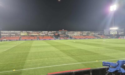 13. Wkrótce już znaną drogą udałem się na chwilę na salę konferencyjną, gdzie pogadałem chwilę z miejscowym dziennikarzem. Potwierdzał, że pod Mateuszem Stolarskim jest gorący stołek. Dla obu klubów było to niezwykle ważne spotkanie. Kazik w tym czasie wypuścił drona i zrobił efektowne ujęcia.