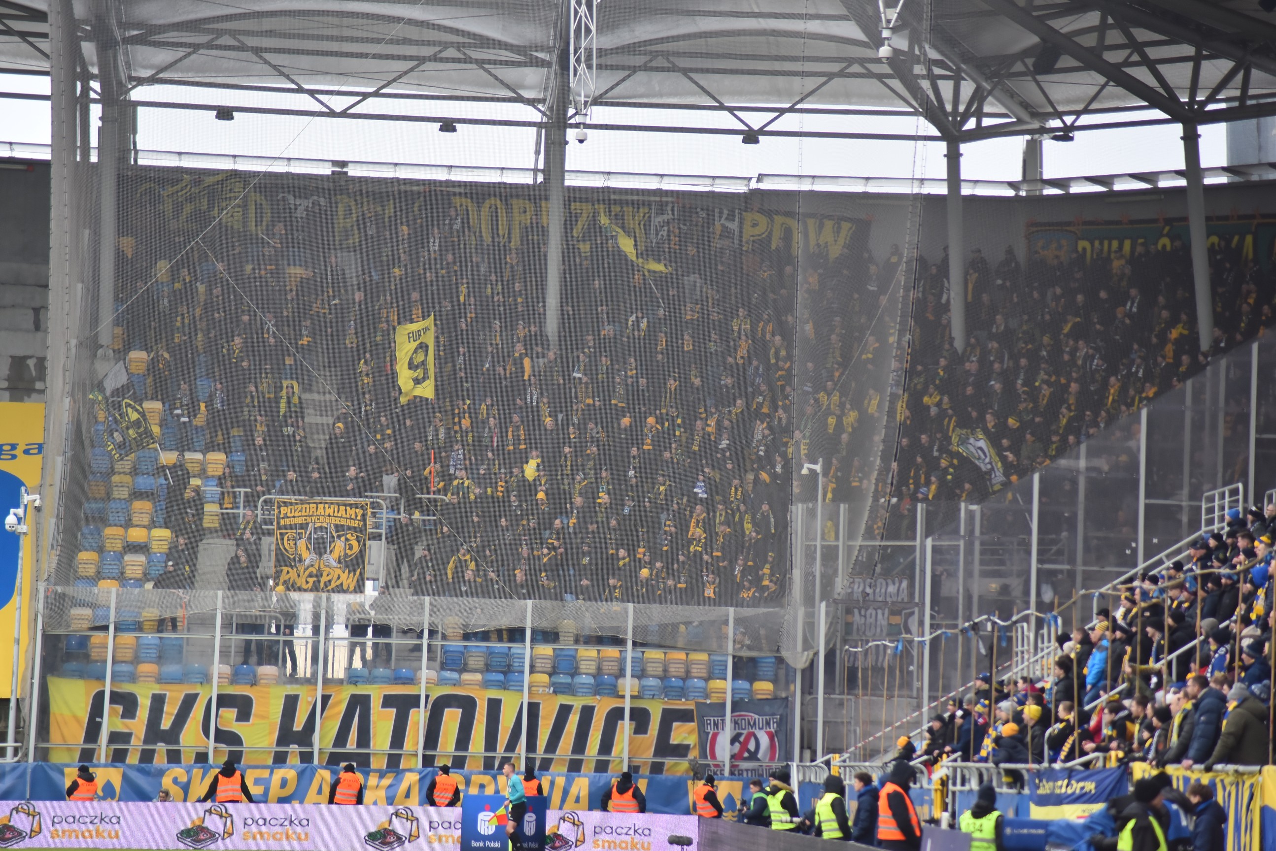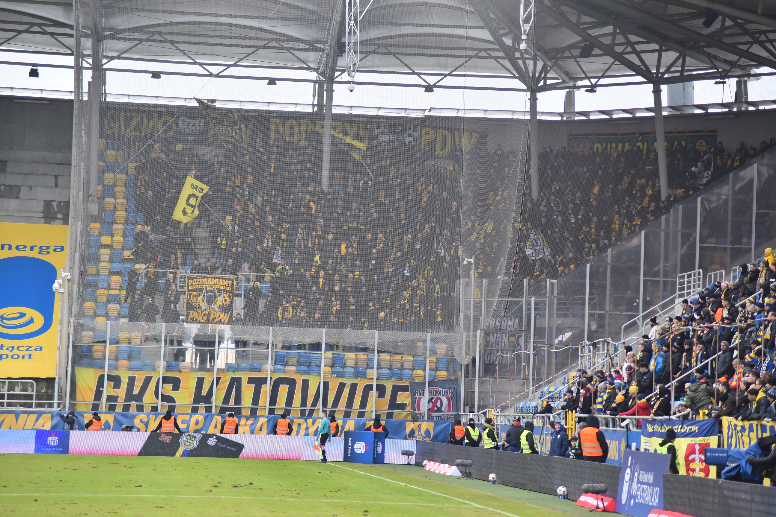 Wiosną 2025 roku Ultras GieKSa ’03 zaprezentowała oprawę „Nasze miasta – W nich nasze ulice – Mówi się na nas GKS Katowice!” w asyście sporej ilości pirotechniki. W tym dniu zadebiutowały flagi na kijach z nazwami dzielnic i fan clubów, w których wyznaje się kult GieKSy. Fani Legii, przez brak drogi dojazdowej pod sektor gości na nowowybudowanym obiekcie, niestety nie mogli zawitać. Legia wygrała 3:1.