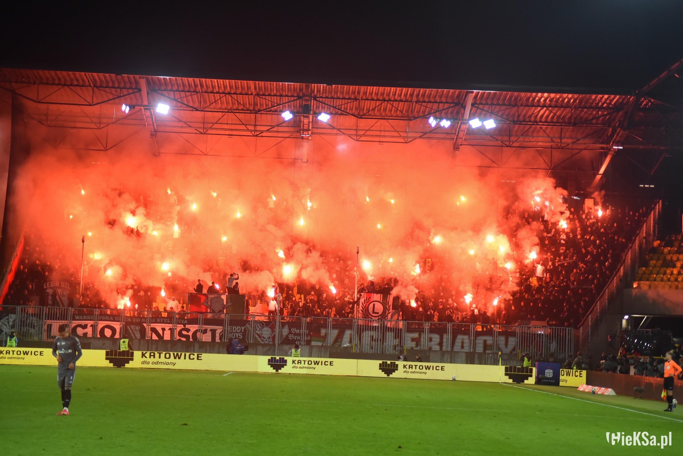 Ostatni nasz pojedynek to jesień 2025 roku. Legioniści chwilę wcześniej odwiesili swój bojkot, więc mecz mógł żyć pełnią wzajemnych „uprzejmości”. W niedzielny wieczór obecnych w Warszawie było 734 fanatyków GieKSy, w tym 17 JKS i 13 FCB. Legia, dosłownie rzutem na taśmę, pokonała nas 3:1.