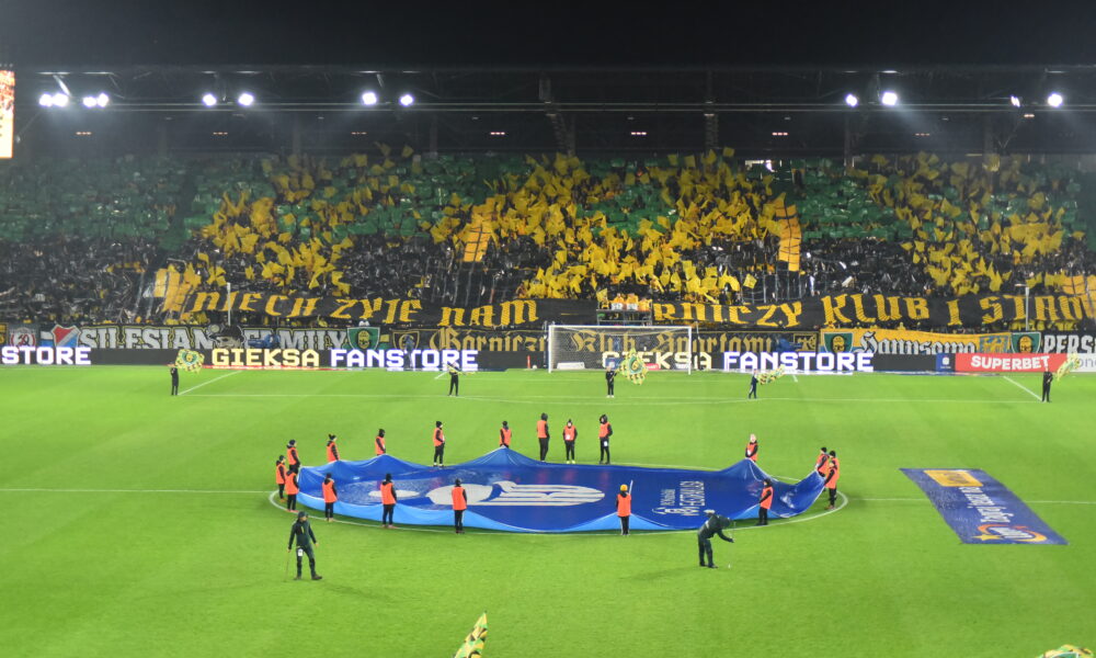Wiosną 2025 roku Ultras GieKSa ’03 zaprezentowała oprawę „Nasze miasta – W nich nasze ulice – Mówi się na nas GKS Katowice!” w asyście sporej ilości pirotechniki. W tym dniu zadebiutowały flagi na kijach z nazwami dzielnic i fan clubów, w których wyznaje się kult GieKSy. Fani Legii, przez brak drogi dojazdowej pod sektor gości na nowowybudowanym obiekcie, niestety nie mogli zawitać. Legia wygrała 3:1.