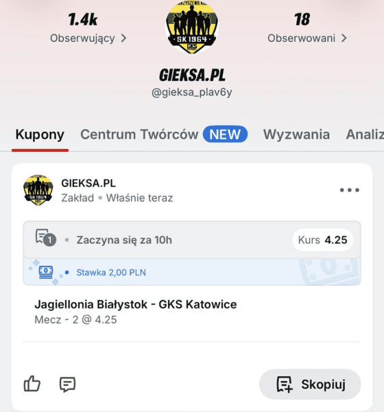 Katowiczanie do tego zaległego starcia przystąpią w znacznie lepszych nastrojach niż ich rywale. GKS notuje coraz lepsze wyniki i znajduje się już na 6. miejscu w tabeli ze stratą zaledwie dwóch punktów do 3. miejsca. Dzięki dzisiejszej ewentualnej wygranej podopieczni Rafała Góraka mogą wskoczyć na podium. GieKSa wygrała ostatnie 3 mecze – 3:1 z Górnikiem, 1:0 z Radomiakiem i 2:0 z Lechią. Jagiellonia ostatnie ligowe zwycięstwo odniosła na początku lutego z Motorem, od tamtej pory zremisowała bezbramkowo z Cracovią, 1:1 z Radomiakiem, 2:2 z Legią i przegrała 0:3 z Lechią oraz 1:2 z Piastem. Jaga ma tylko 2 punkty więcej od GieKSy. Kurs na zwycięstwo Jagiellonii 1,82. Kurs na remis 3,90. Kurs na wygraną GieKSy 4,25.