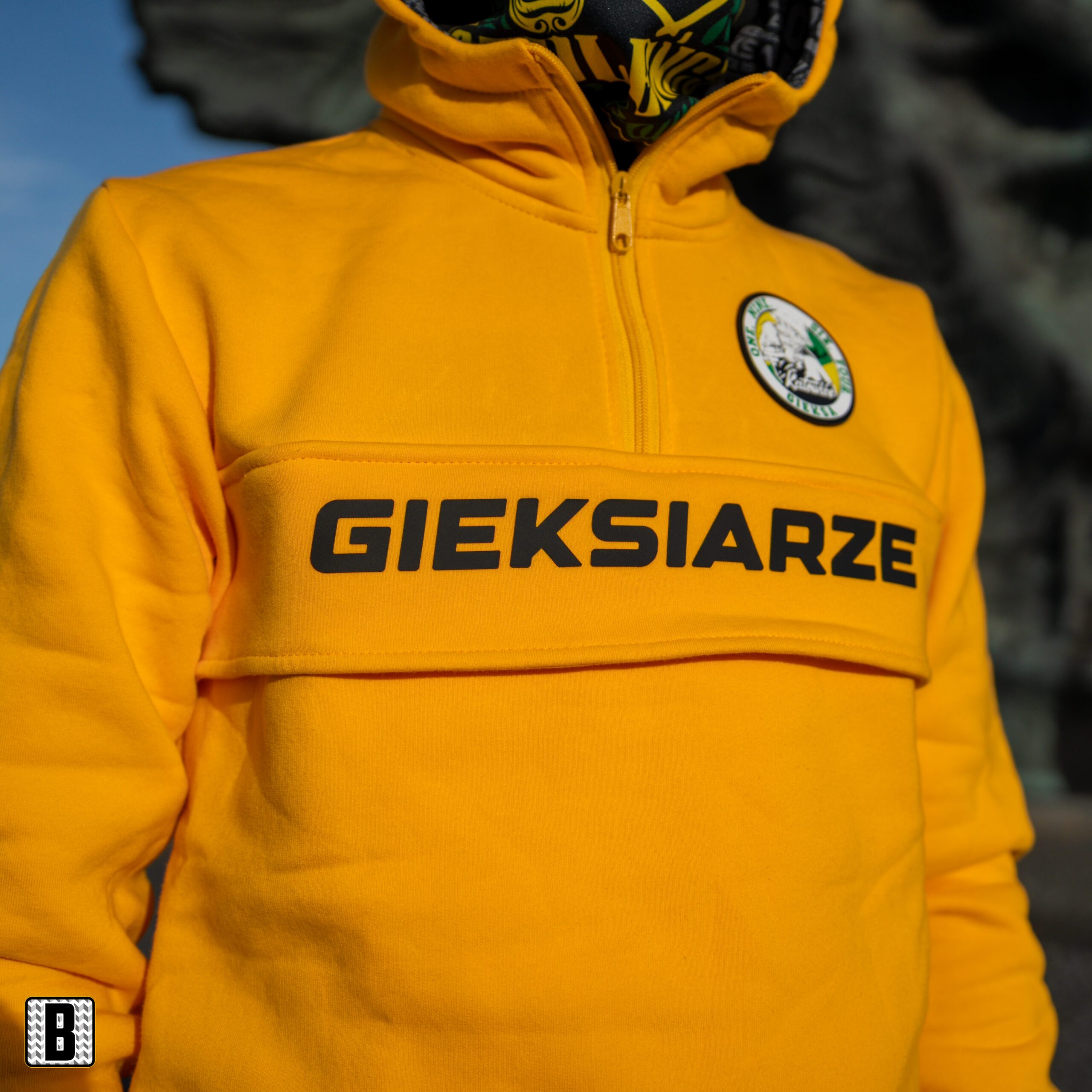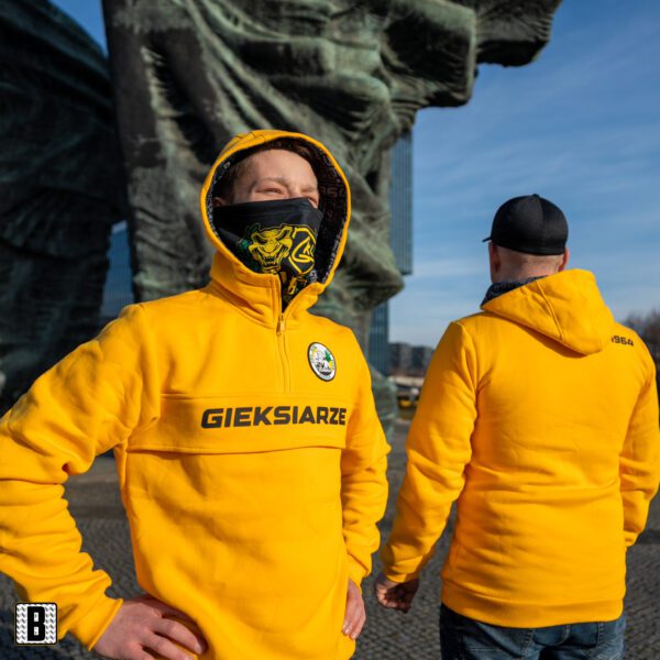 Hitem są bluzy GieKSiarze (wszystkie zdjęcia gadżetów poniżej tekstu) w cenie 249 złotych. Są to bluzy zapinane w stójce, posiadające kieszeń kangurkę zapinaną na zamek oraz zadrukowany kaptur. Dużym powodzeniem cieszy się także elegancka koszulka polo (149 złotych) z wyhaftowanym wizerunkiem Jana Furtoka świętującego gola charakterystycznym uniesieniem ręki. Na rękawie znalazł się haft małej trójkolorowej flagi. Dla każdego kibica GieKSy świetnym prezentem będzie także zgodowa koszulka GieKSa Banik (99 złotych) z klubowymi herbami, nawiązująca do oprawy naszych Przyjaciół w Warszawie. Wszystkie produkty dostępne są w pełnej rozmiarówce od XS do 5XL.