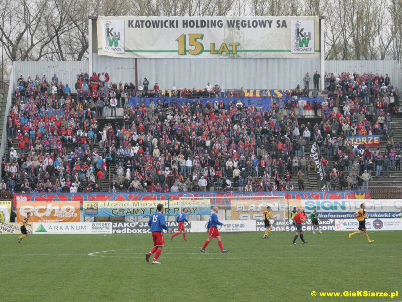 Wiosną 2008 roku zagraliśmy derby na Bukowej. Były to dla nas „nowe derby”, bo Piast pierwszy raz w historii (i jak się później okazało – ostatni) mógł się pojawić na Bukowej, ale ich liczba – mimo bliskiej odległości – budziła podziw. Przyjeżdżając w liczbie 1100 głów, zaskoczyli w tym dniu chyba samych siebie. Warto odnotować, że tą liczbą Piastoholicy wpisali się do topu kibiców gości, którzy pojawili się na GieKSie kiedykolwiek. Wykręcić ponad 1000 osób na Bukowej potrafiło mało ekip. Niewielka liczba kilometrów nie ma tutaj znaczenia. Piast na koniec sezonu awansował do Ekstraklasy.