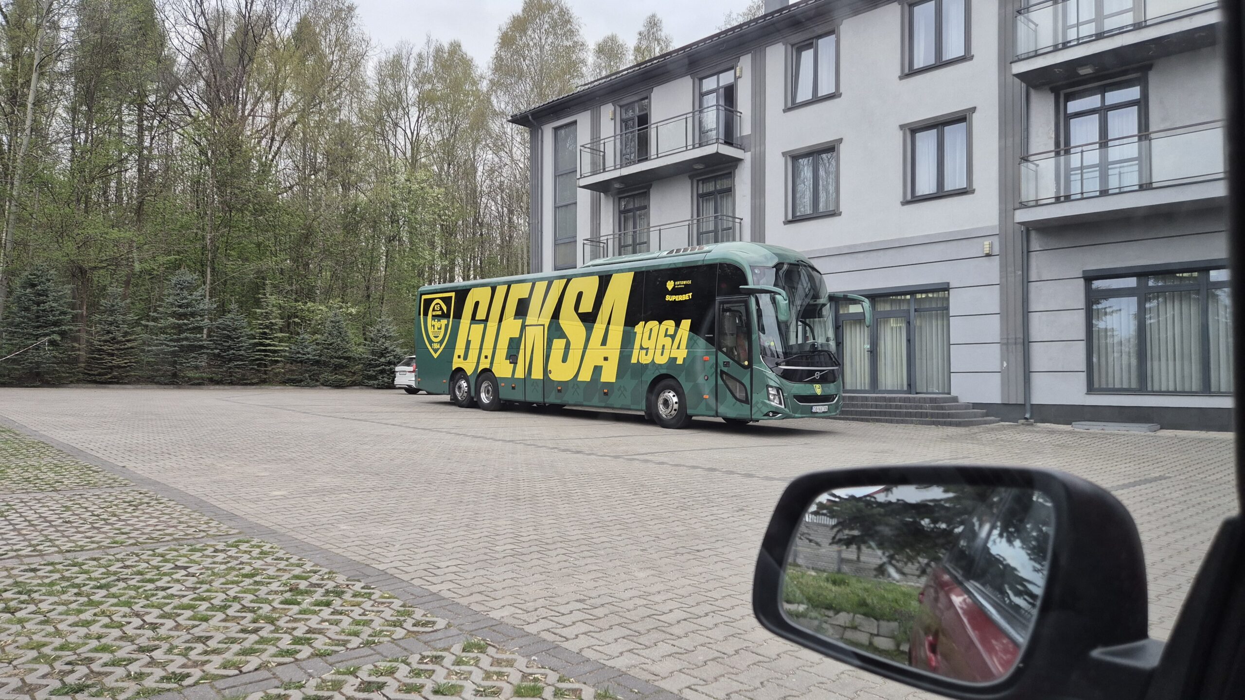 17. Szybko wróciłem do hotelu i pięknym widokiem był nasz autokar na parkingu. GieKSa już była na tym wyjeździe i na obrzeżach miasta mogła przygotowywać się w spokoju do meczu.
