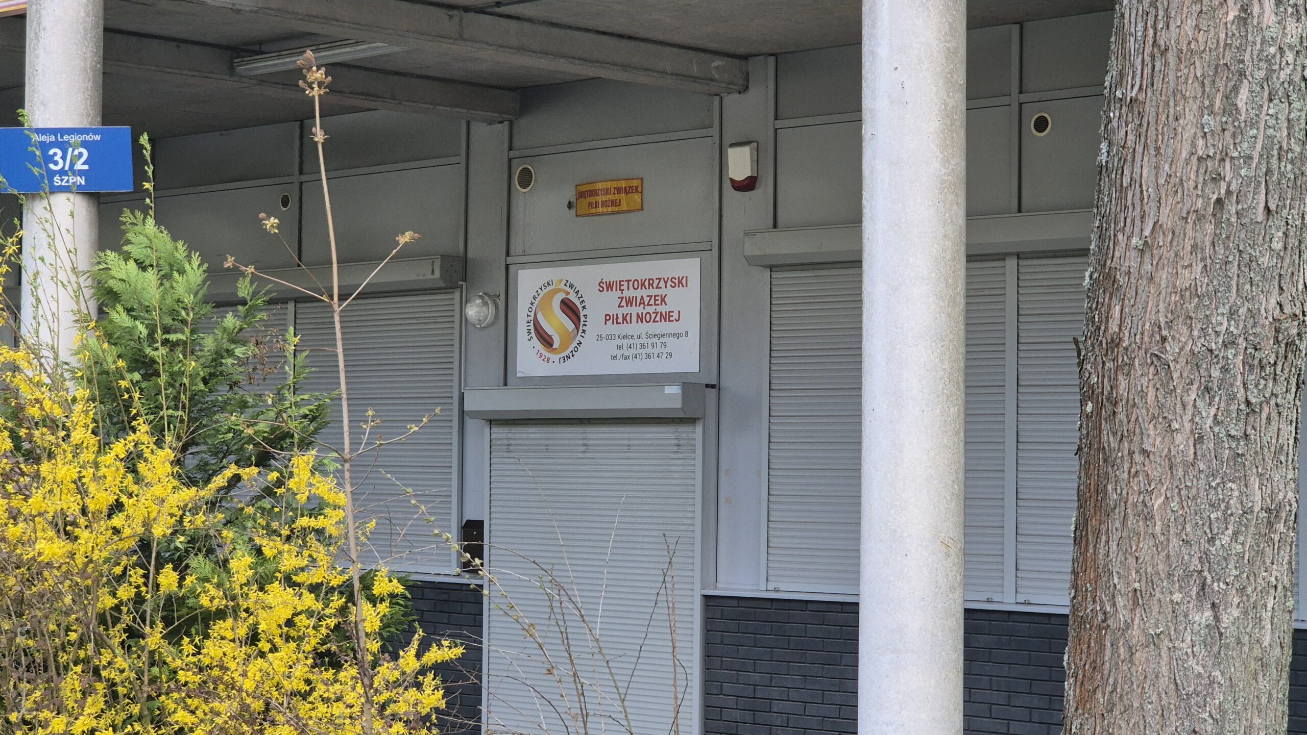 27. Co ciekawe stadion ma wynajmowane lokale i to kompletnie różnej maści. To stomatologia, aparaty słuchowe, to diabetolog, Jest i pizzeria. I Świętokrzyski Związek Piłki Nożnej. Ogólnie bardzo różni się ten stadion od ulicy Ściegiennego i Alei Legionów. Tak jakby były to dwa różne stadiony. Spacer kontynuowałem.