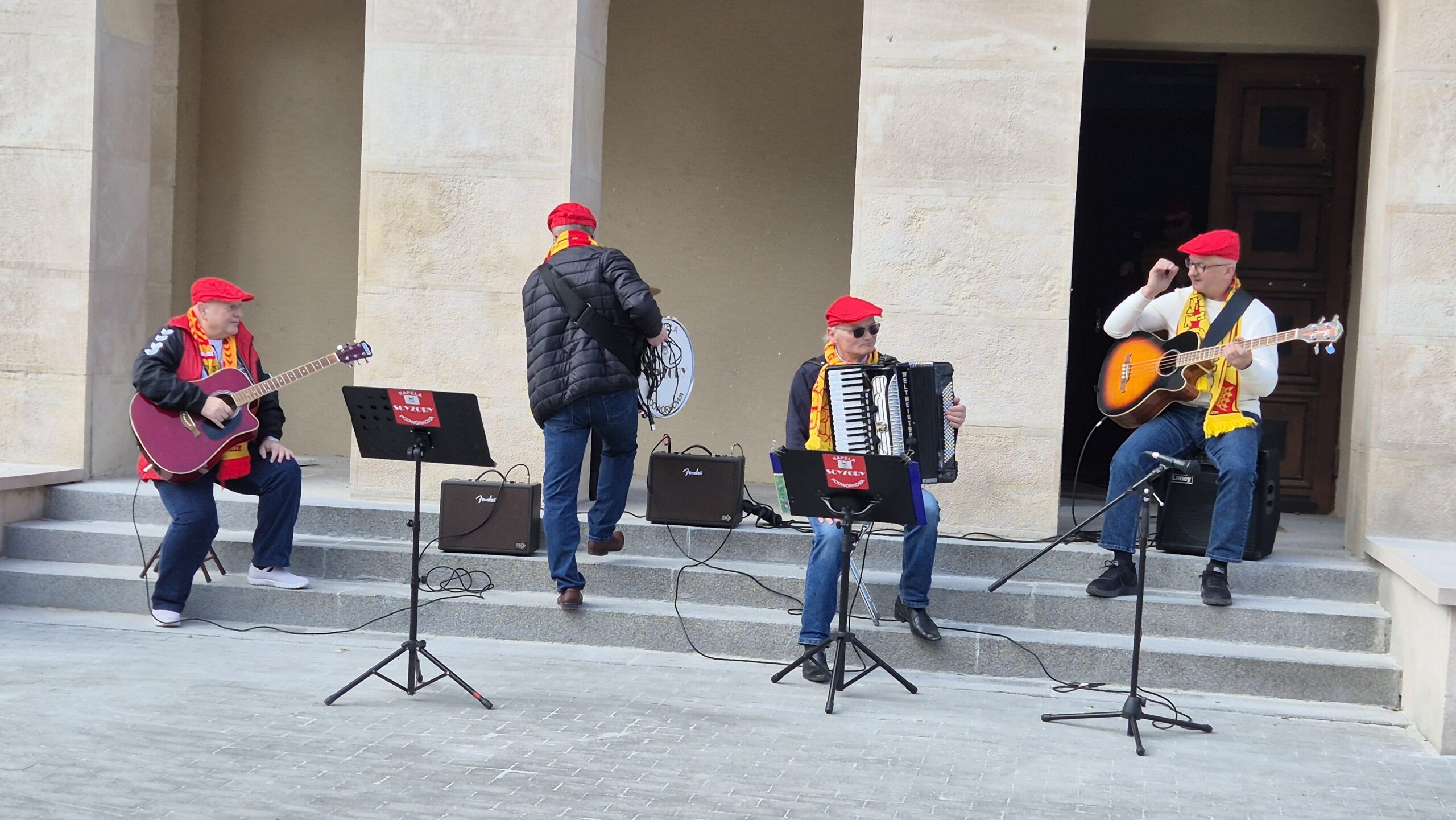 30. Po drodze minąłem grajków. Którzy grali przy WDK. Była to kapela podwórkowa Scyzory, która uatrakcyjniała ten mecz przed meczem. Zawsze takie elementy miejscowego folkloru są mile widziane.