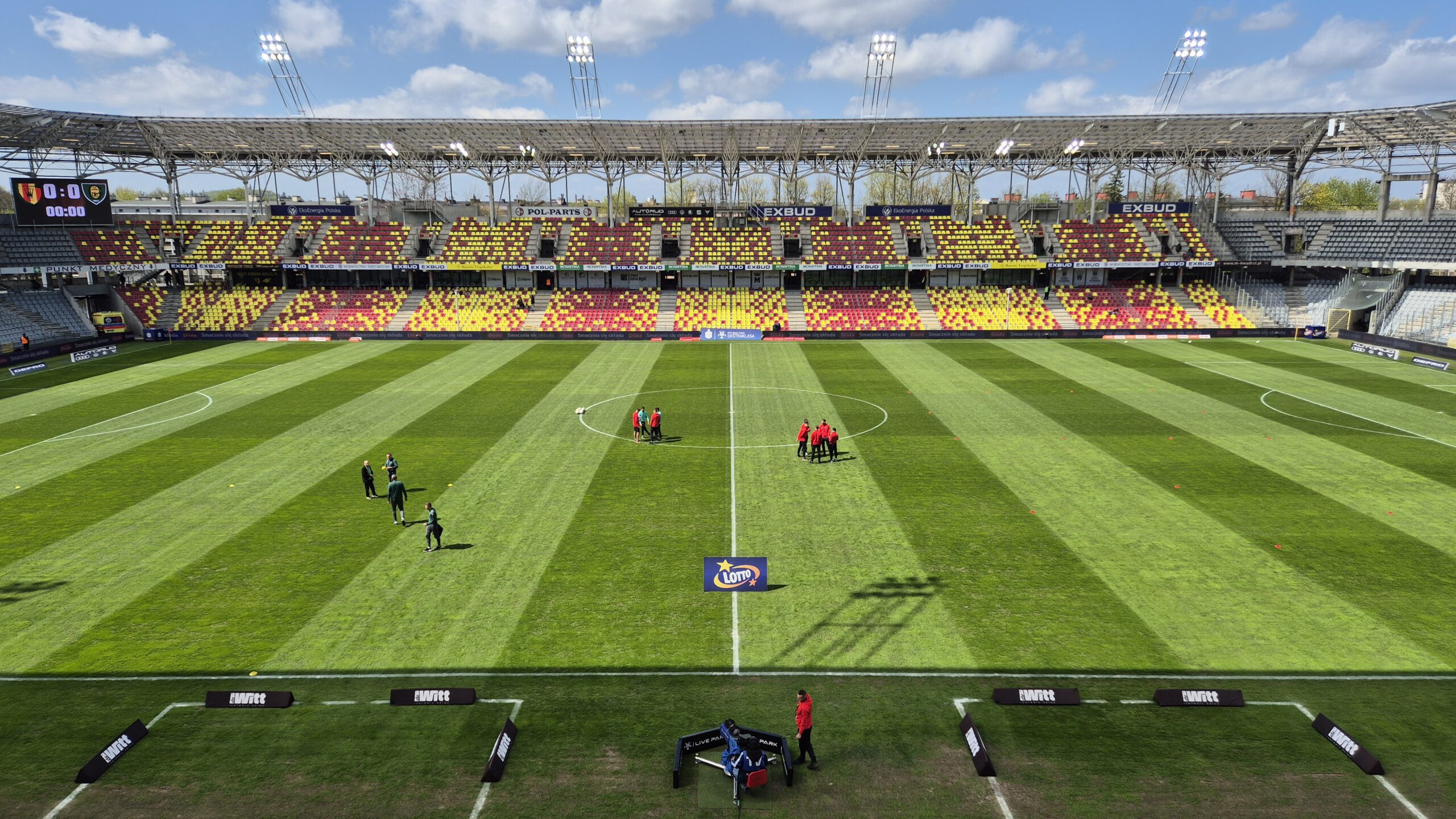 44. Trybuny powoli się wypełniały, a piłkarze rozgrzewali. Była siedemnasta, więc światło dzienne. Ostatnio byliśmy tu już tylko przy sztucznym oświetleniu.