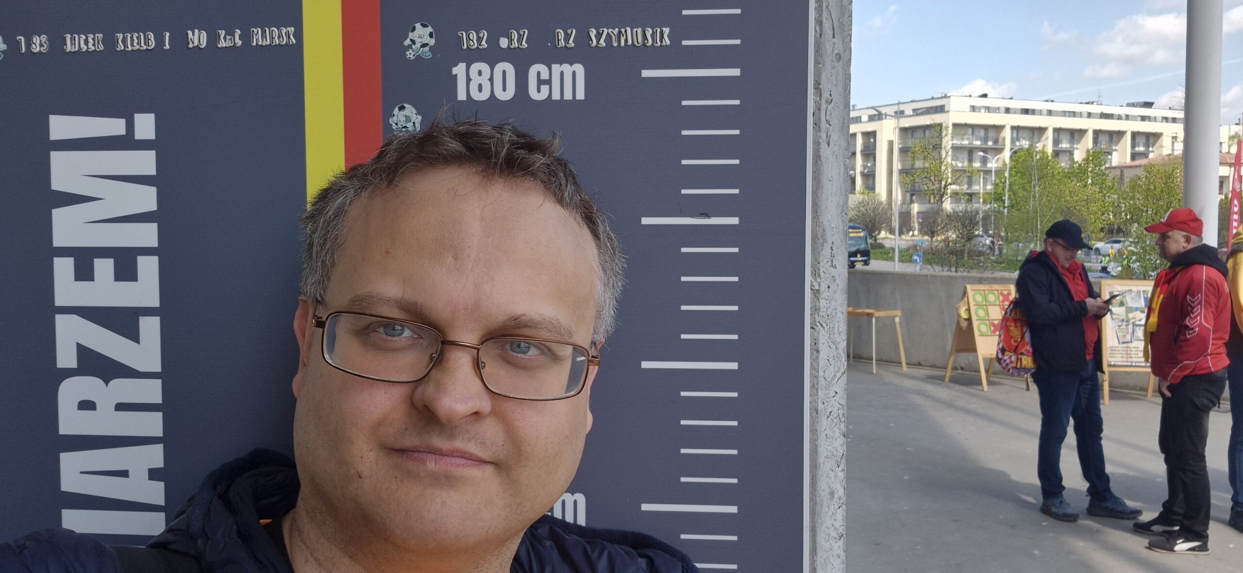 16. Czekaliśmy na mecz. Gdzieś tam w międzyczasie mijałem Mateusza Borka i Grzegorza Mielcarskiego, którzy mieli komentować to spotkanie. Jeszcze nie wiedzieli, jakie emocje będą także ich udziałem.