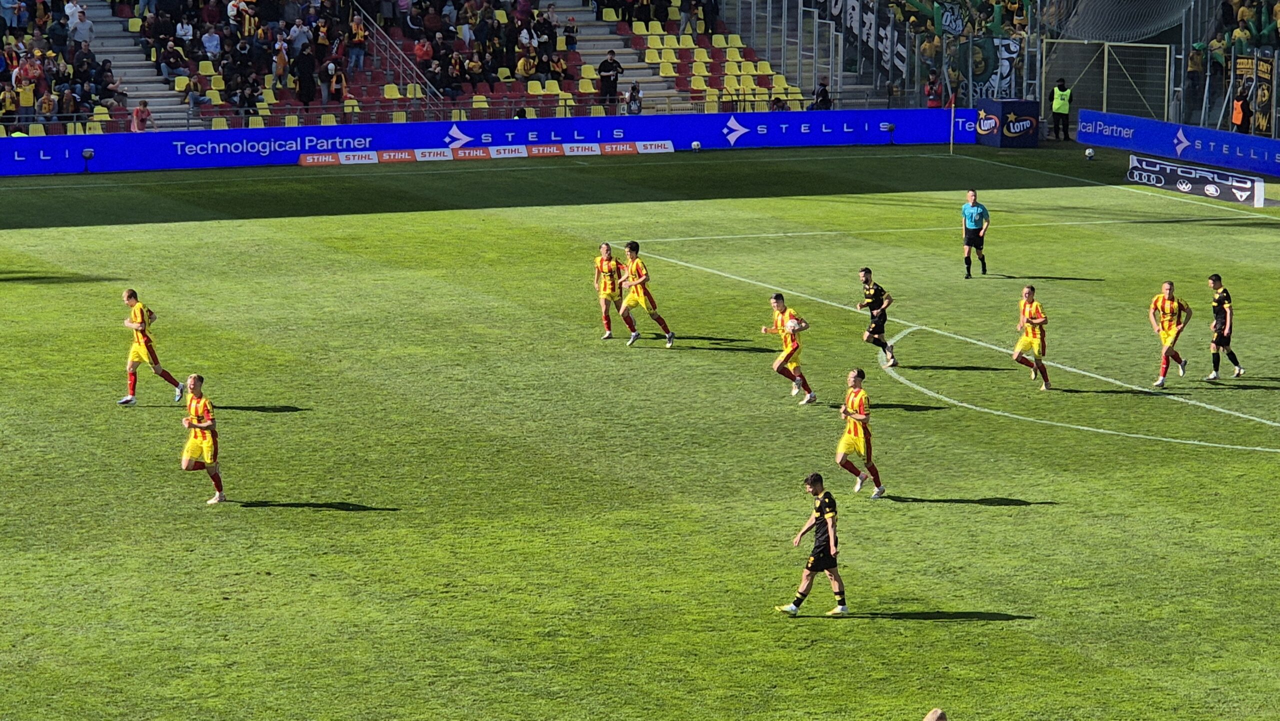 44. Akustyka jest kapitalna. Bardzo dobrze było słychać liczny sektor gości, Koroniarze też mocno dali radę. Jednocześnie zarówno kibice GieKSy zaprezentowali się liczbowo i wokalnie świetnie, jak i sympatycy Korony jesienią w Katowicach na ich rekordowym wyjeździe.