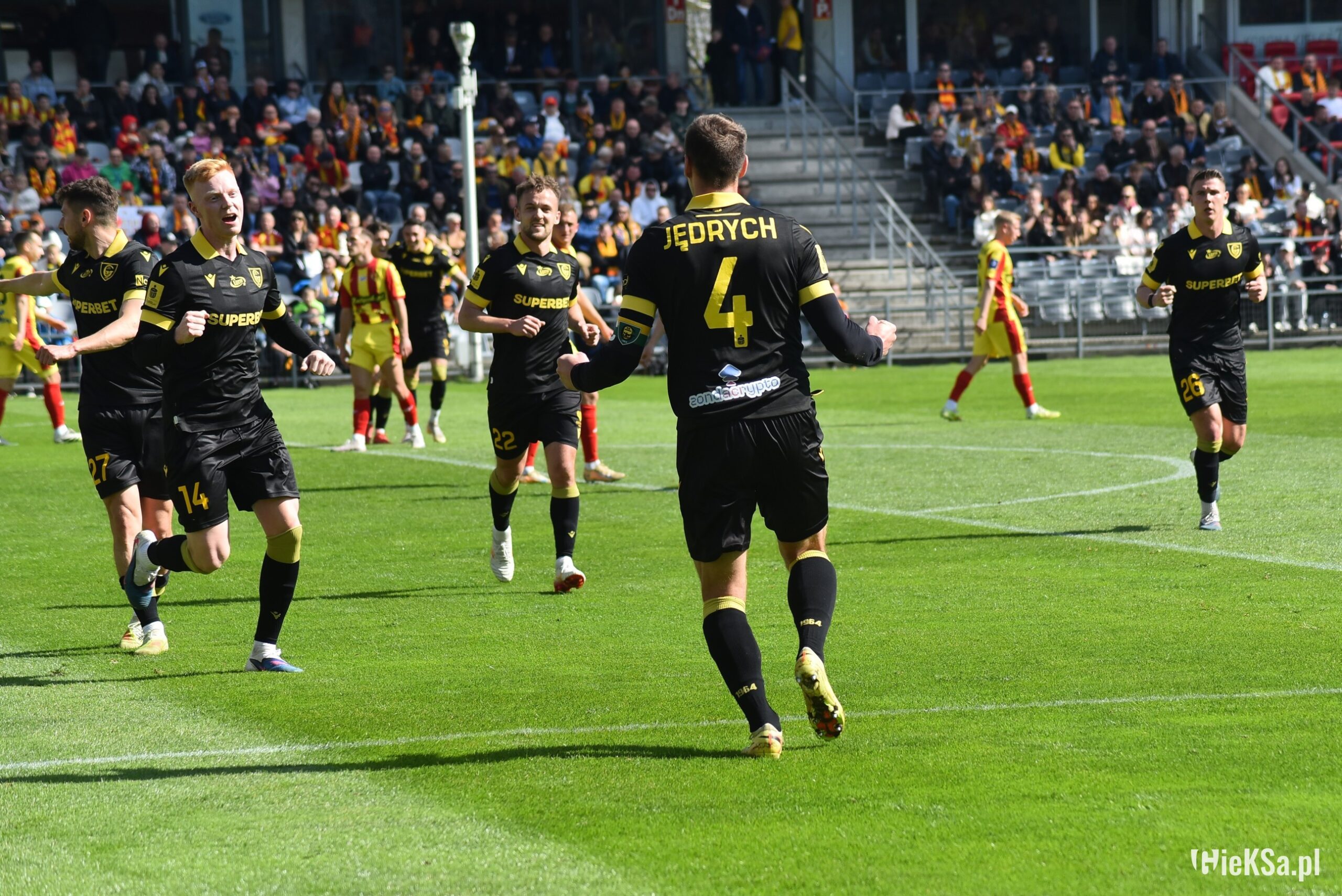 Ogólnie uważam, że to był kapitalny mecz GieKSy. W ofensywie znakomity. Pierwsza połowa to wręcz był koncert. Udokumentowany trzema bramkami i to jakimi – pierwszy gol to wiadomo, świetny strzał Markovića po stałym fragmencie, ale dwie kolejne bramki to było rozklepanie obrony rywala. Niemal jak w grze komputerowej. Przy golu na 2:1 od momentu przejęcia piłki w szybkim rozegraniu wzięło udział 7 (siedmiu!) zawodników. Nie mówimy tu o stoperach grających między sobą. Mówimy o każdym konkretnym dotknięciu, które rozwija akcję – aż do bramki. Marković, Wasyl, Milewski, Rasak, Szkurin, Czerwiński, Nowak, zaliczali asysty drugiego, trzeciego, czwartego itd. stopnia, tak, że Bartek – który zrobił kapitalny ruch do piłki – mógł tylko przystawić stopę. Drugi gol to akcja: Kudła, Jędrych, Klemenz, Szkurin, Marković, Czerwiński, Jirka, Wasielewski i Eman strzela do pustej bramki. W obu sytuacjach na przetransportowanie piłki przez tylu zawodników, nasz zespół potrzebował po 21 sekund. To jest absolutne mistrzostwo i do bólu wykorzystanie ofensywnego potencjału każdego, kogo tylko się da. Po prostu znakomite.