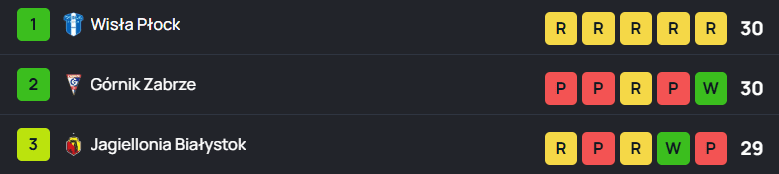 Lider dzięki 5 remisom (aka Remis Płock) – Tabela Ekstraklasy viralem obiegła Europę, gdy tylko runda miała się ku końcowi. Biedna trójka robiła, co mogła, by tylko spaść jak najniżej w klasyfikacji generalnej: niestety, reszta stawki byłą po prostu zbyt silna w takiej grze. Ostatnia w tabeli Termalica traci do lidera jedynie 11 punktów, zatem spokojnie jeszcze może walczyć o mistrzostwo.