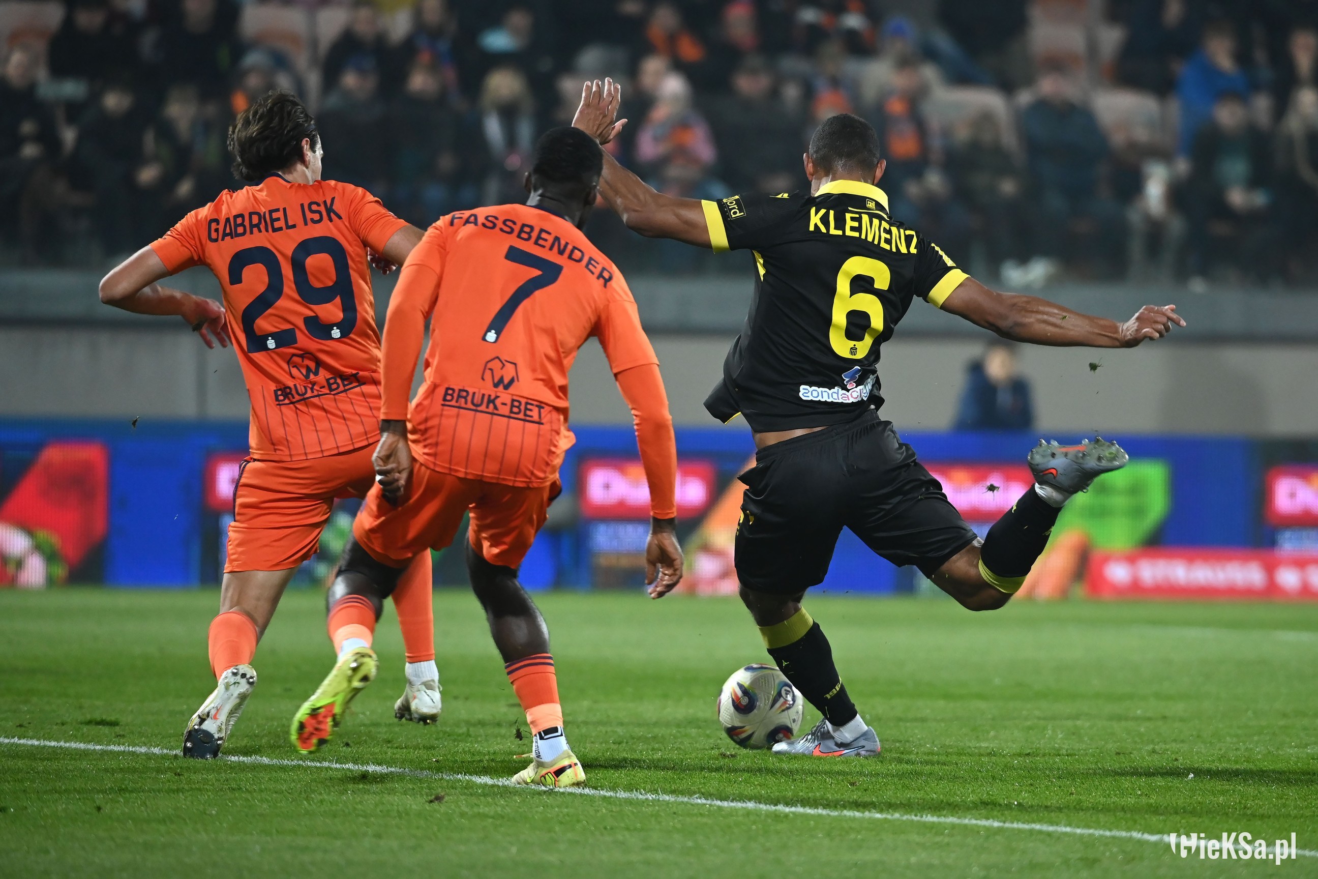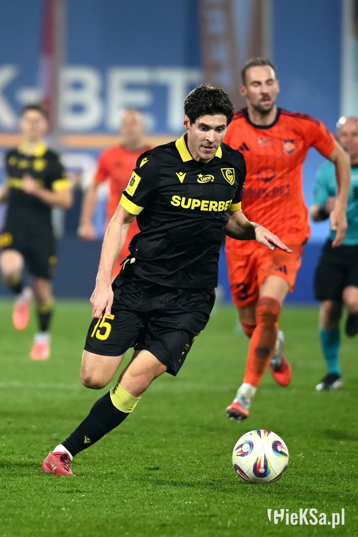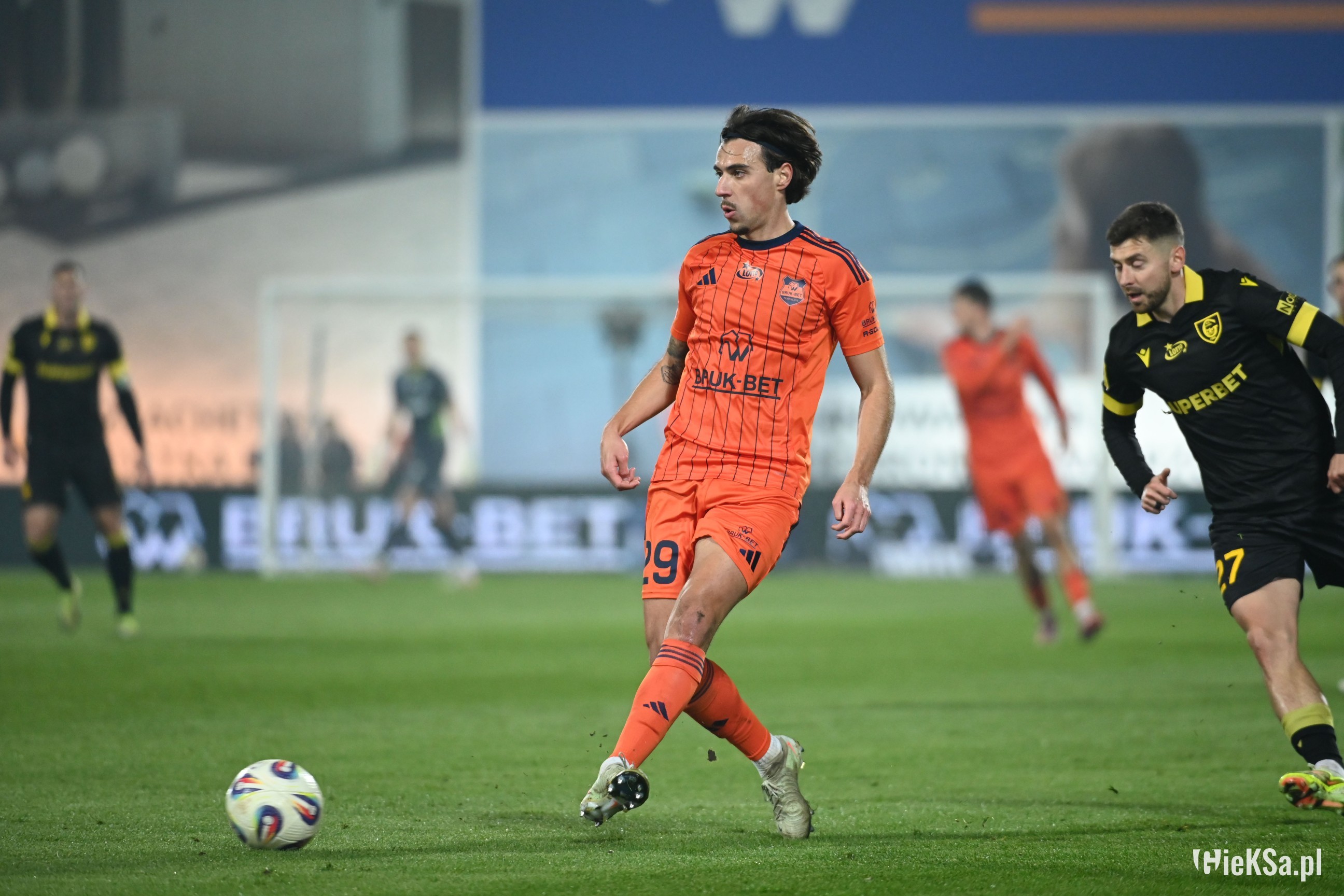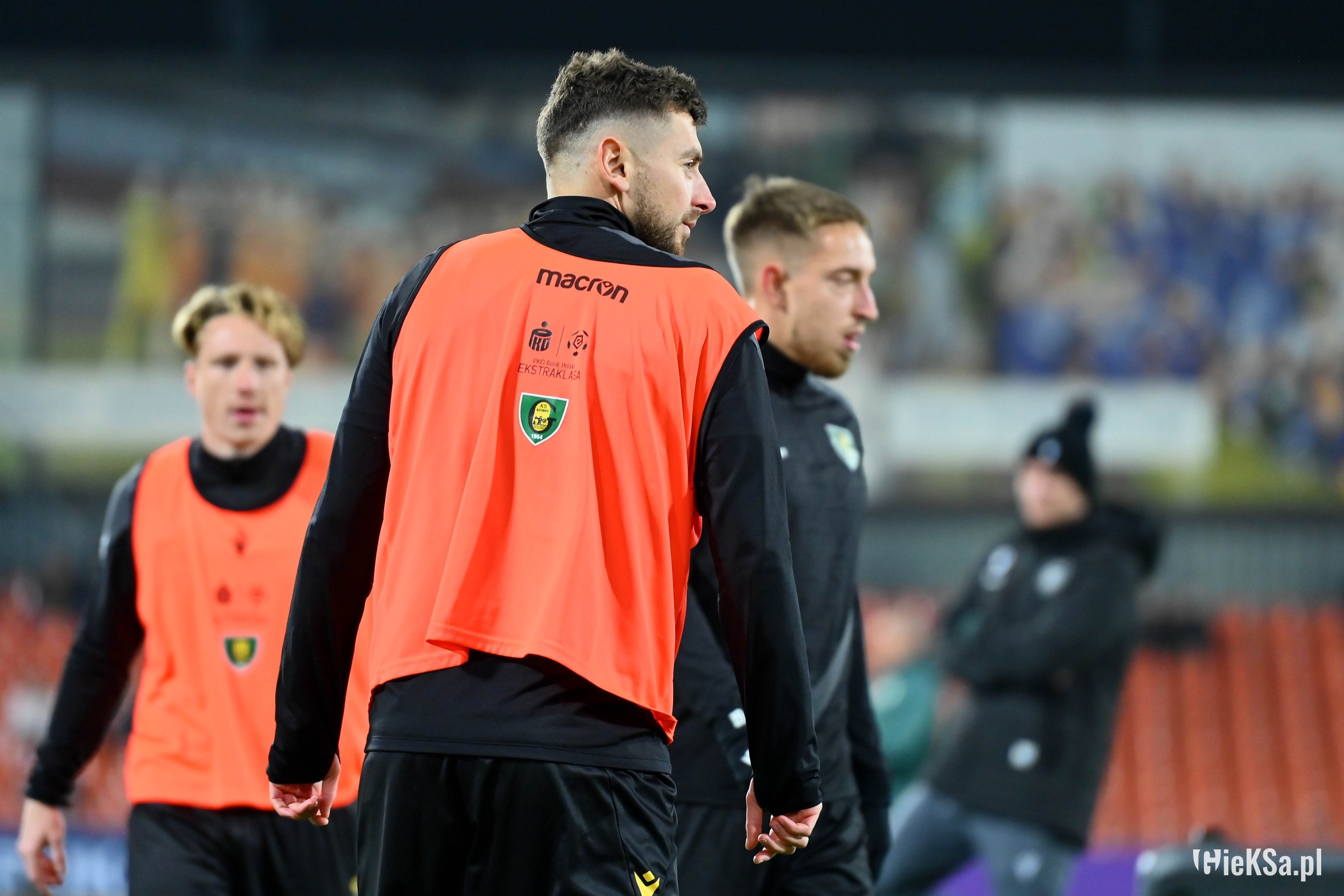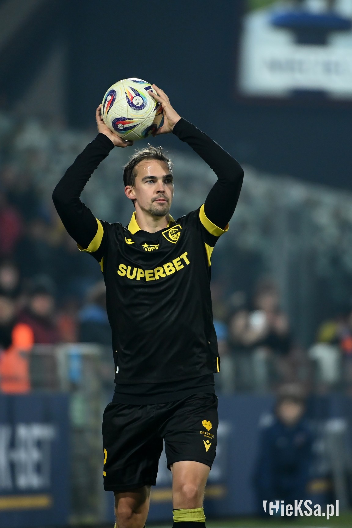 21. A potem mieliśmy już granie. Powiedziałbym, że przecieraliśmy oczy ze zdumienia, gdy GKS od początku atakował, gdyby to była prawda. Znamy ten schemat choćby z meczów z Legią czy Cracovią. Problem był taki, że przewaga nie była udokumentowana bramką. Tutaj była – i to dwoma trafieniami. Kibice obu drużyn od początku oglądali bardzo ciekawy mecz.
