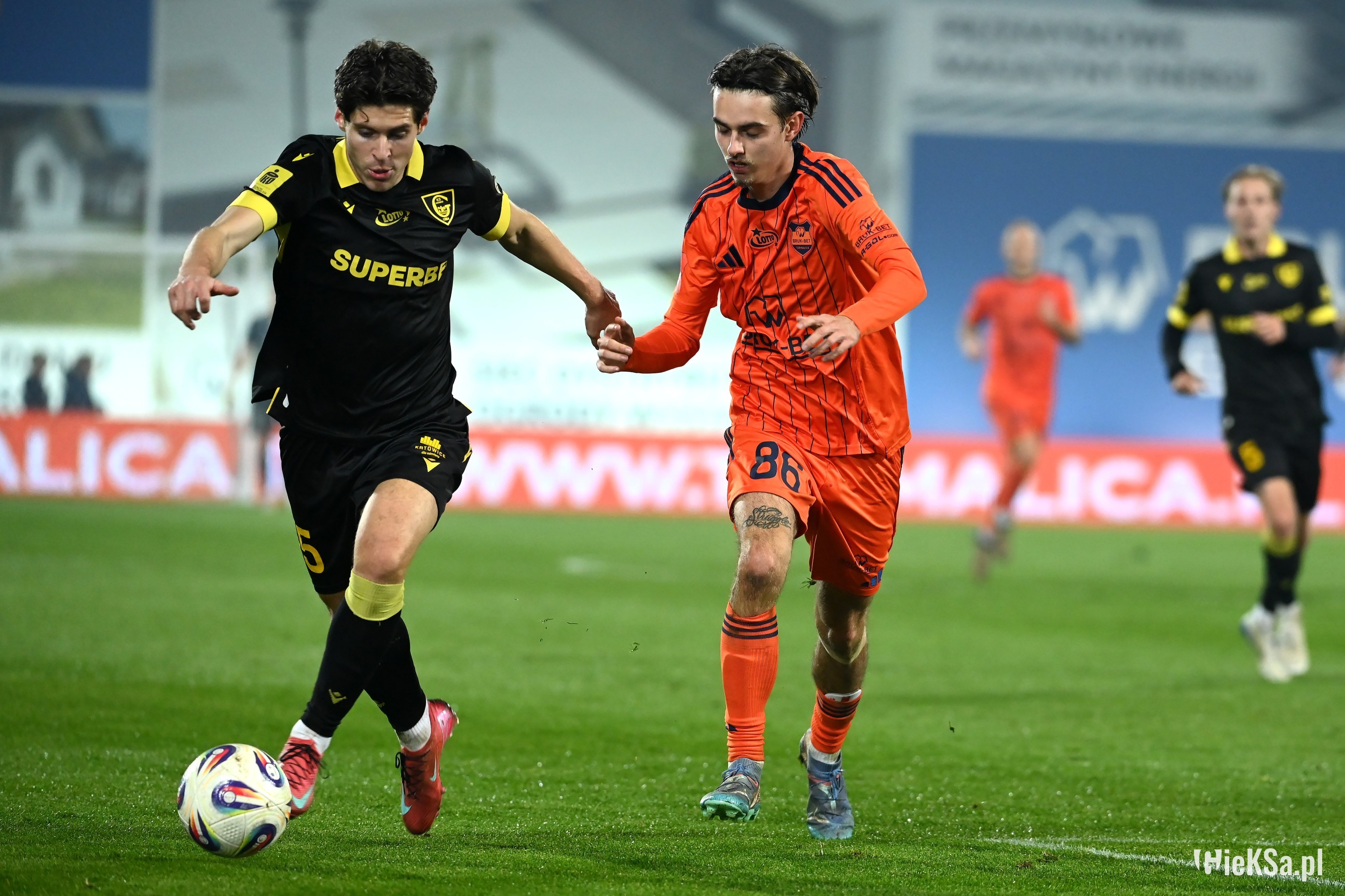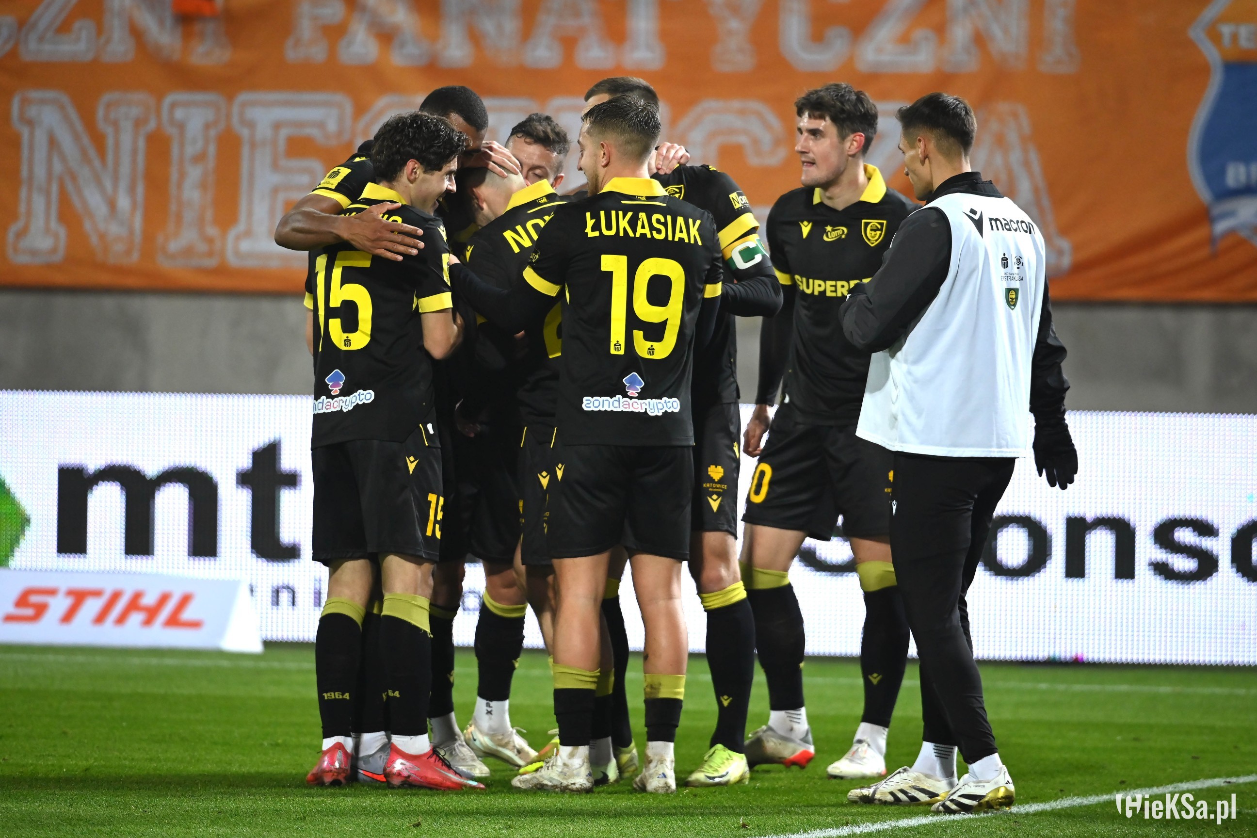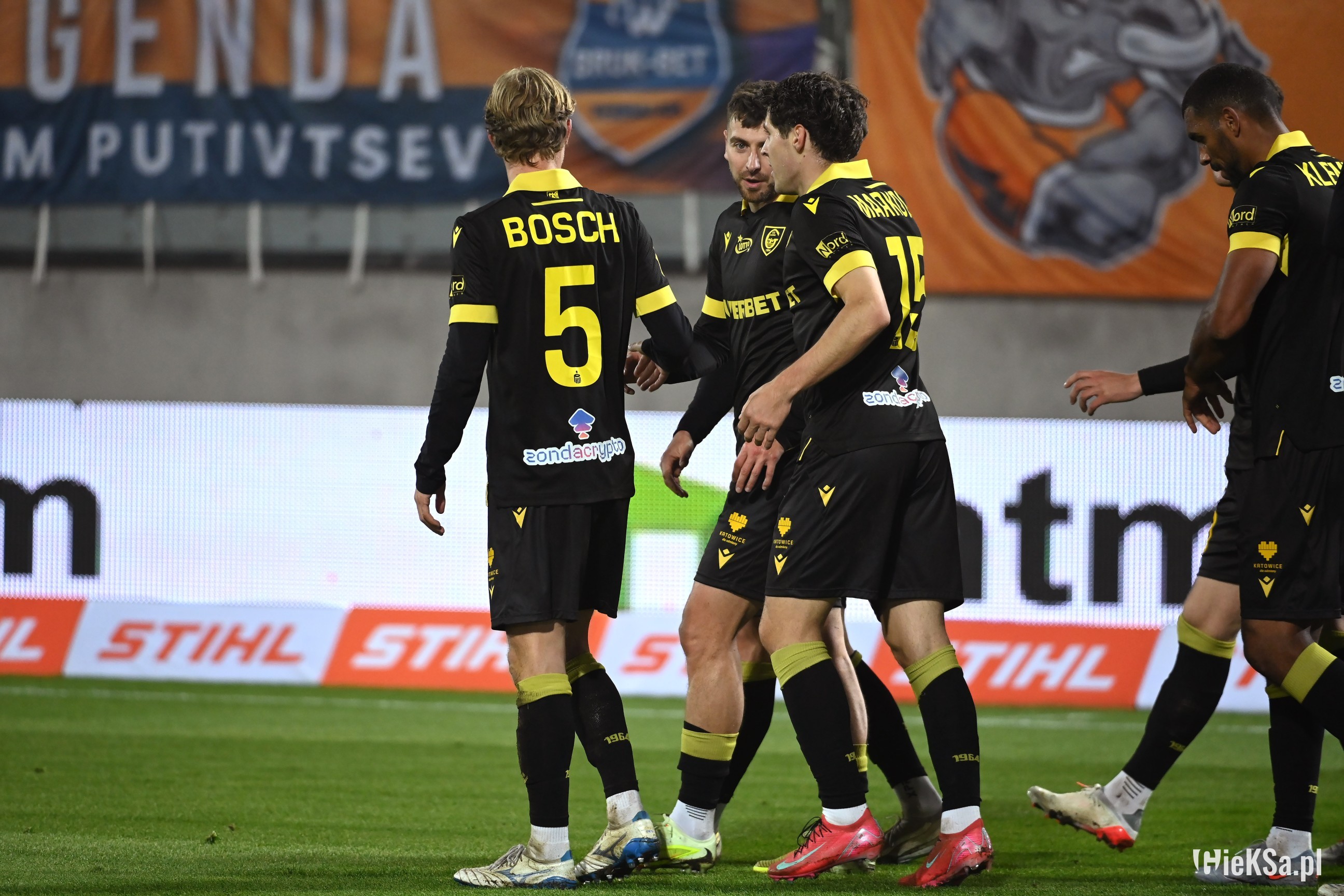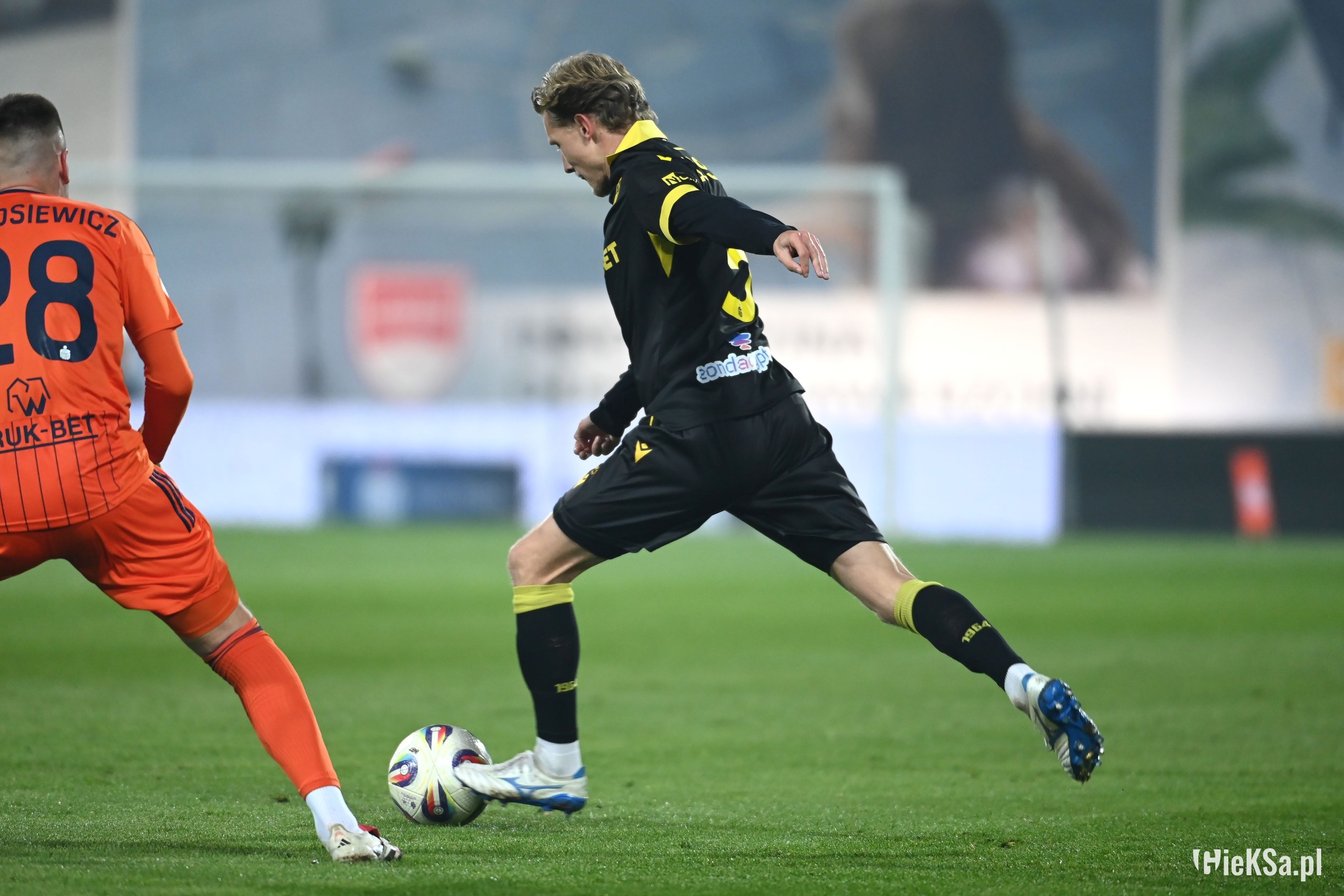 21. A potem mieliśmy już granie. Powiedziałbym, że przecieraliśmy oczy ze zdumienia, gdy GKS od początku atakował, gdyby to była prawda. Znamy ten schemat choćby z meczów z Legią czy Cracovią. Problem był taki, że przewaga nie była udokumentowana bramką. Tutaj była – i to dwoma trafieniami. Kibice obu drużyn od początku oglądali bardzo ciekawy mecz.