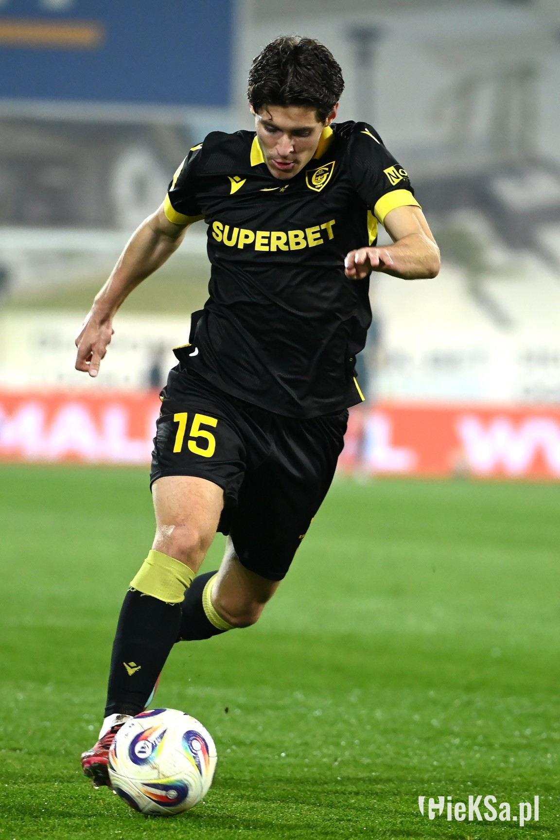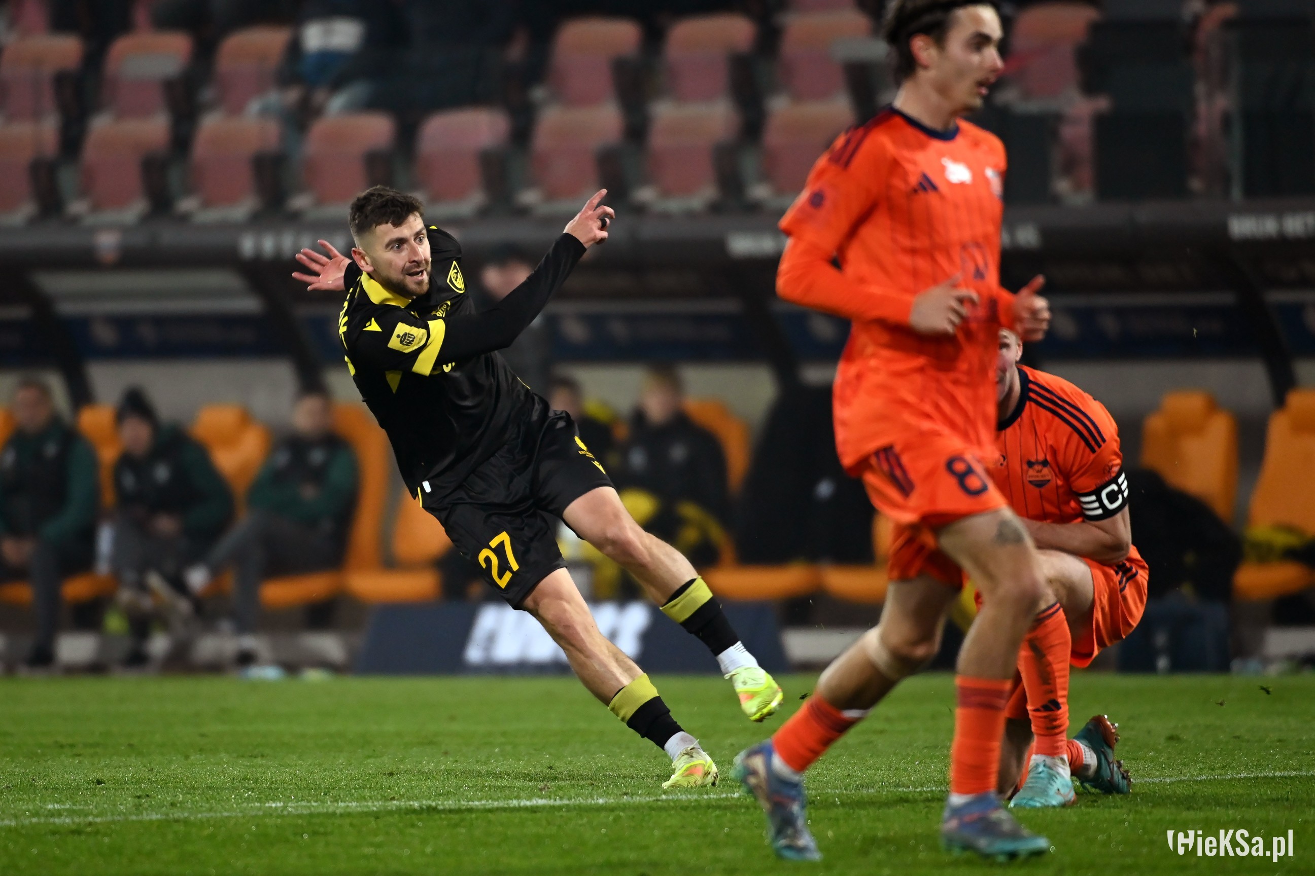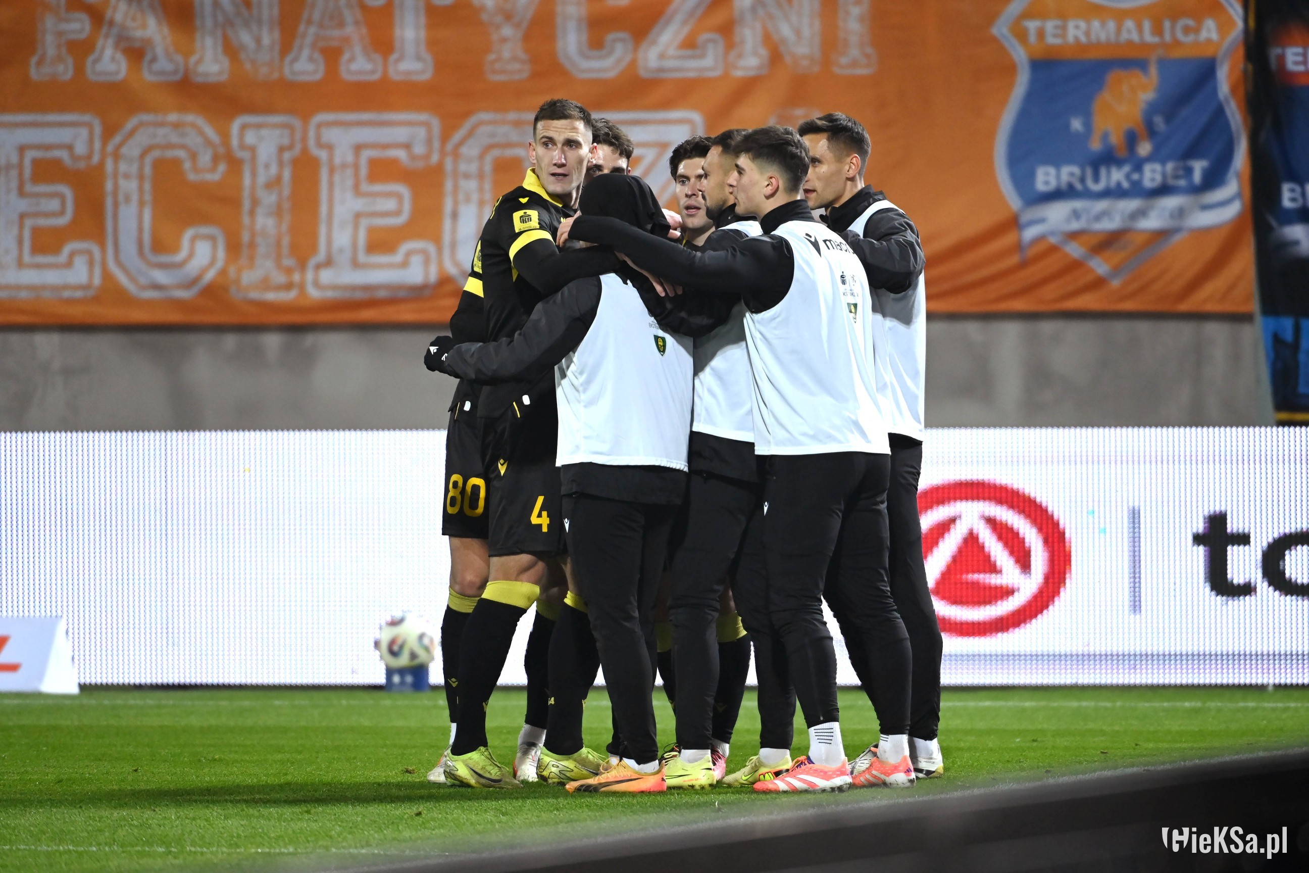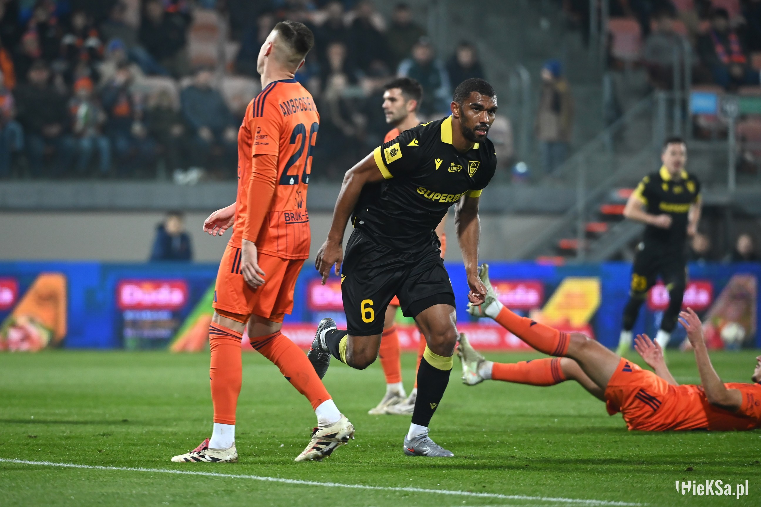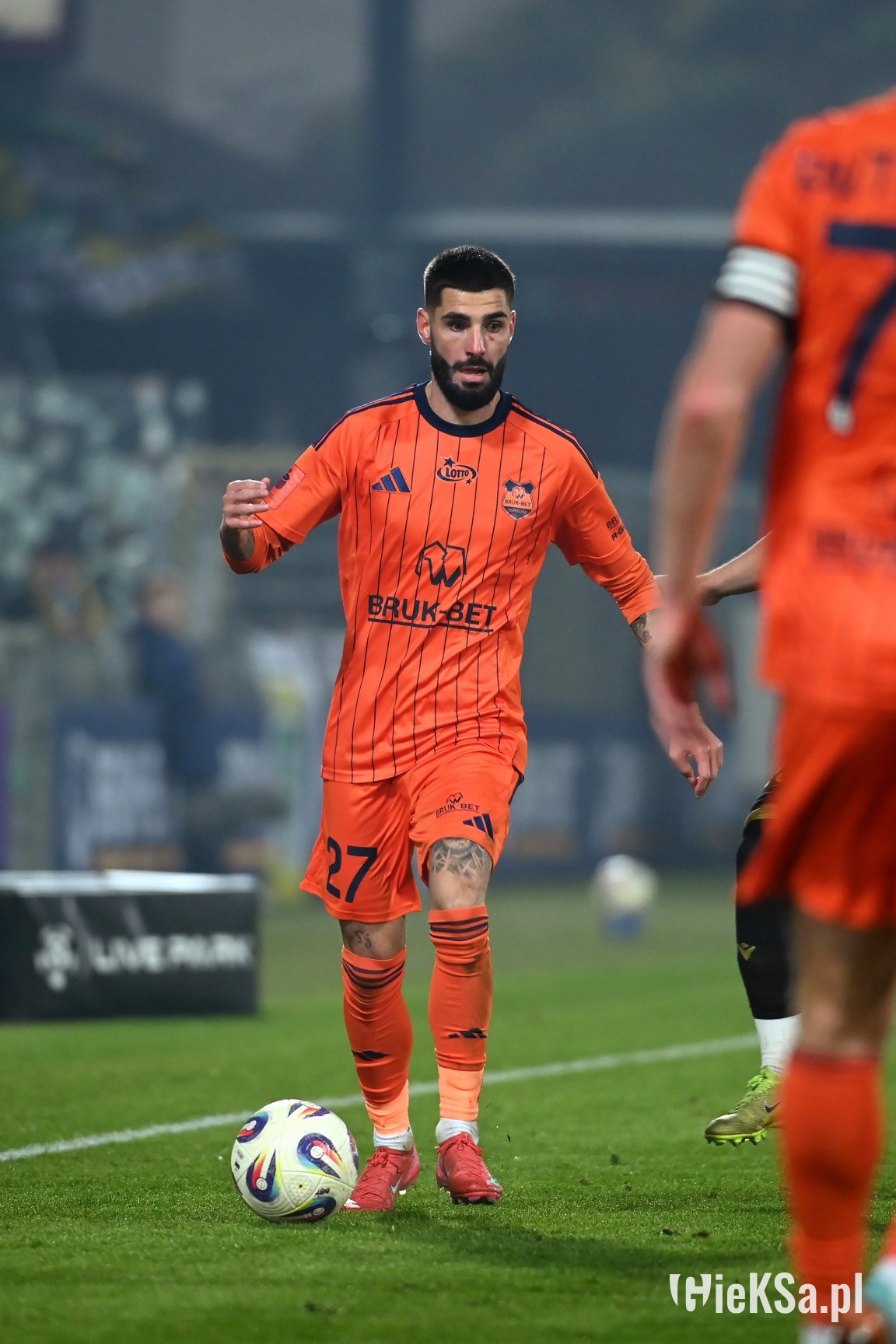 21. A potem mieliśmy już granie. Powiedziałbym, że przecieraliśmy oczy ze zdumienia, gdy GKS od początku atakował, gdyby to była prawda. Znamy ten schemat choćby z meczów z Legią czy Cracovią. Problem był taki, że przewaga nie była udokumentowana bramką. Tutaj była – i to dwoma trafieniami. Kibice obu drużyn od początku oglądali bardzo ciekawy mecz.