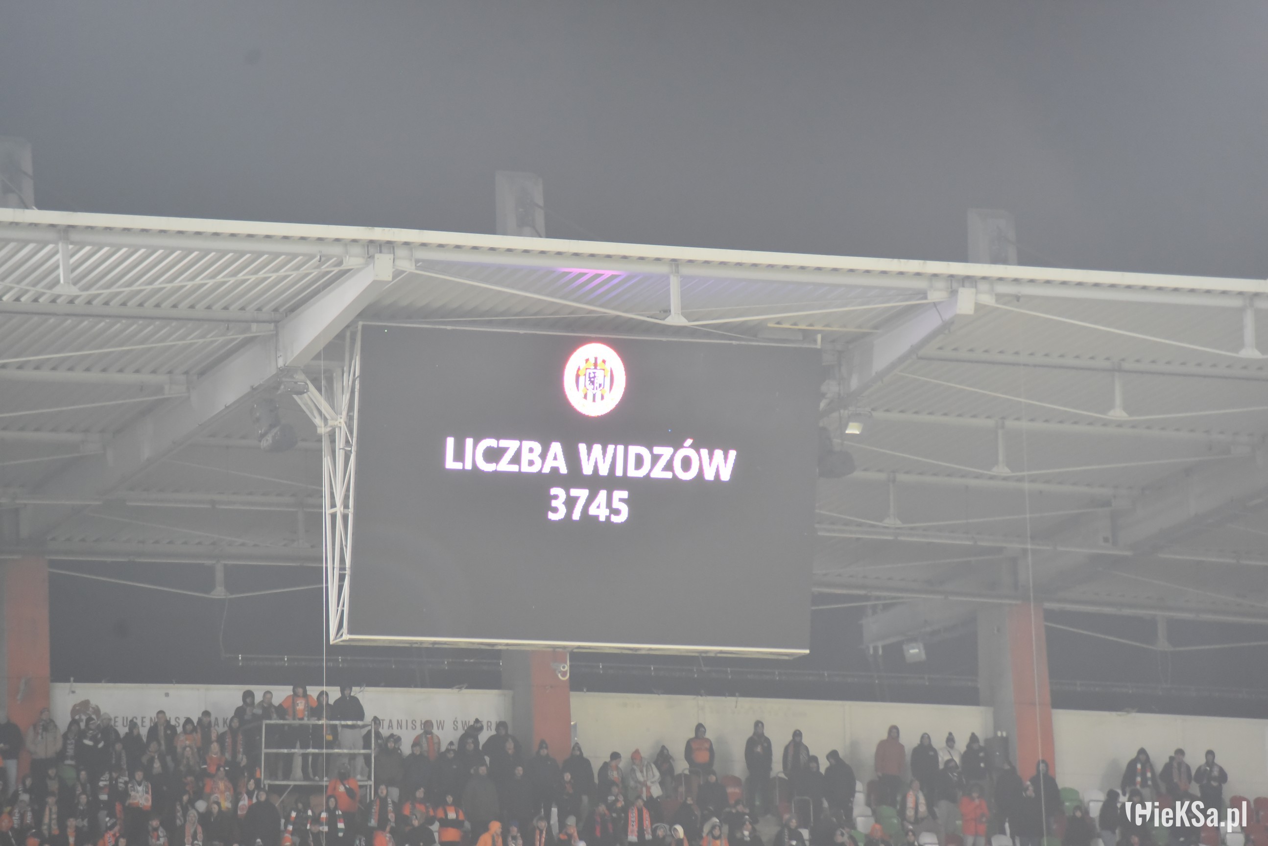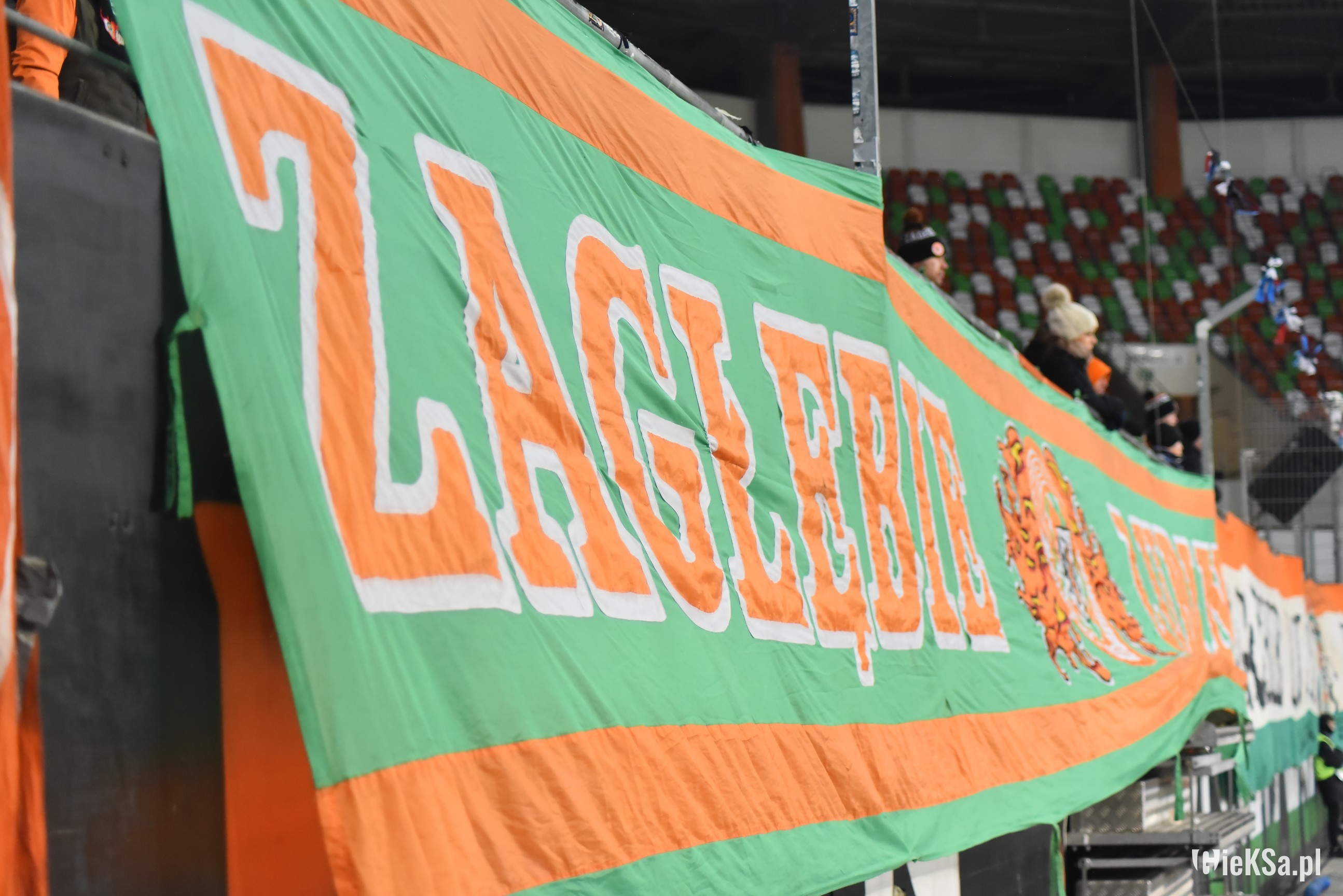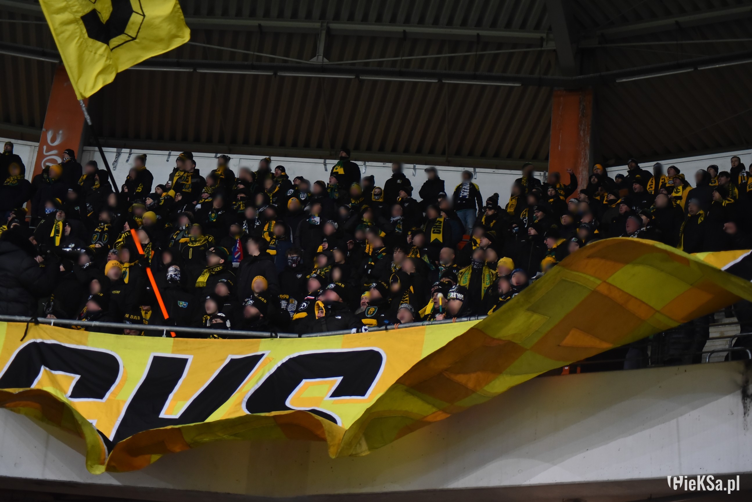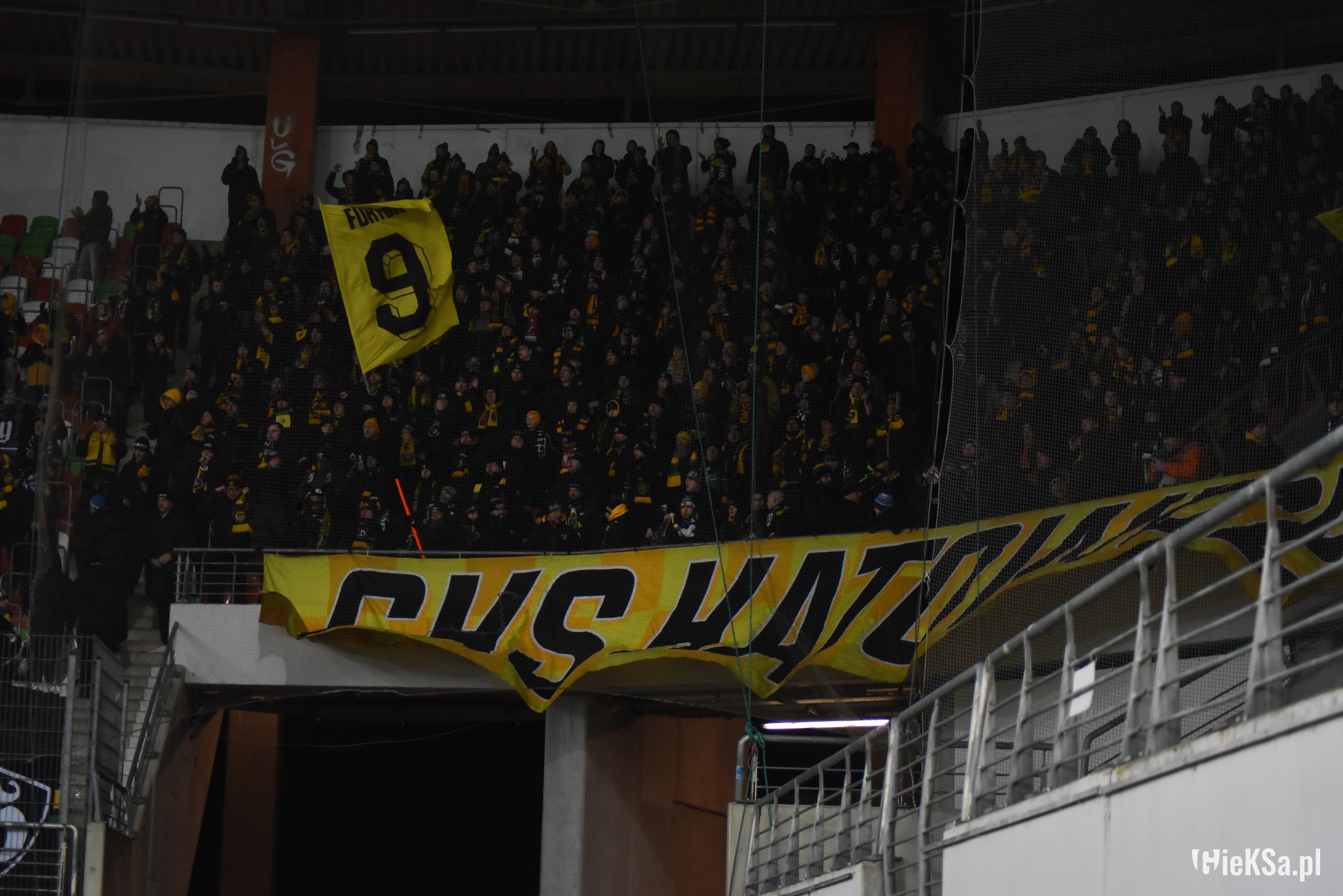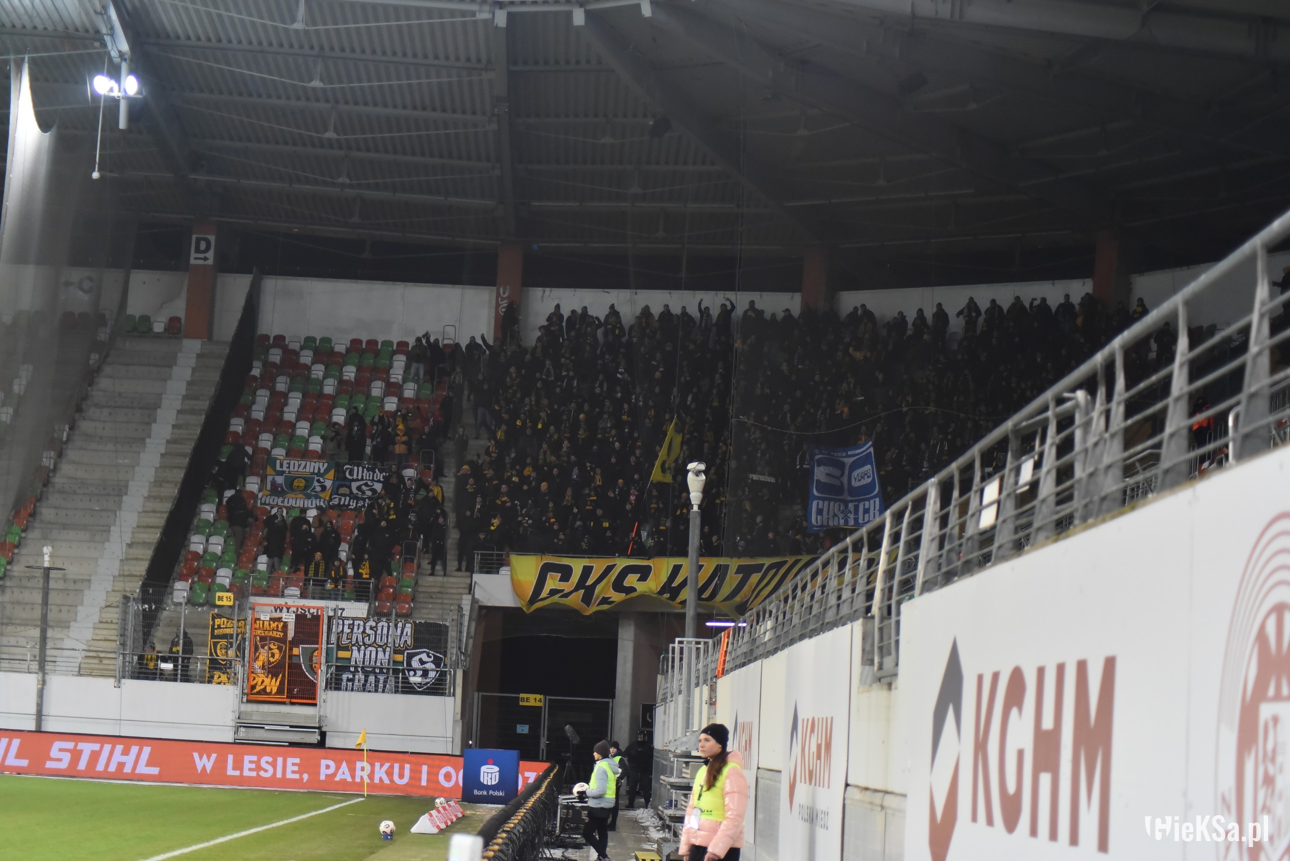 I znowu piątek… Tym razem w Niecieczy, w której w ostatnich latach często bywaliśmy. Pojawiliśmy się w 427 osób, w tym 2 Górnik Zabrze i 2 JKS Jarosław. Tym samym zakończyliśmy maraton pięciu wyjazdów z rzędu w tygodniu roboczym.