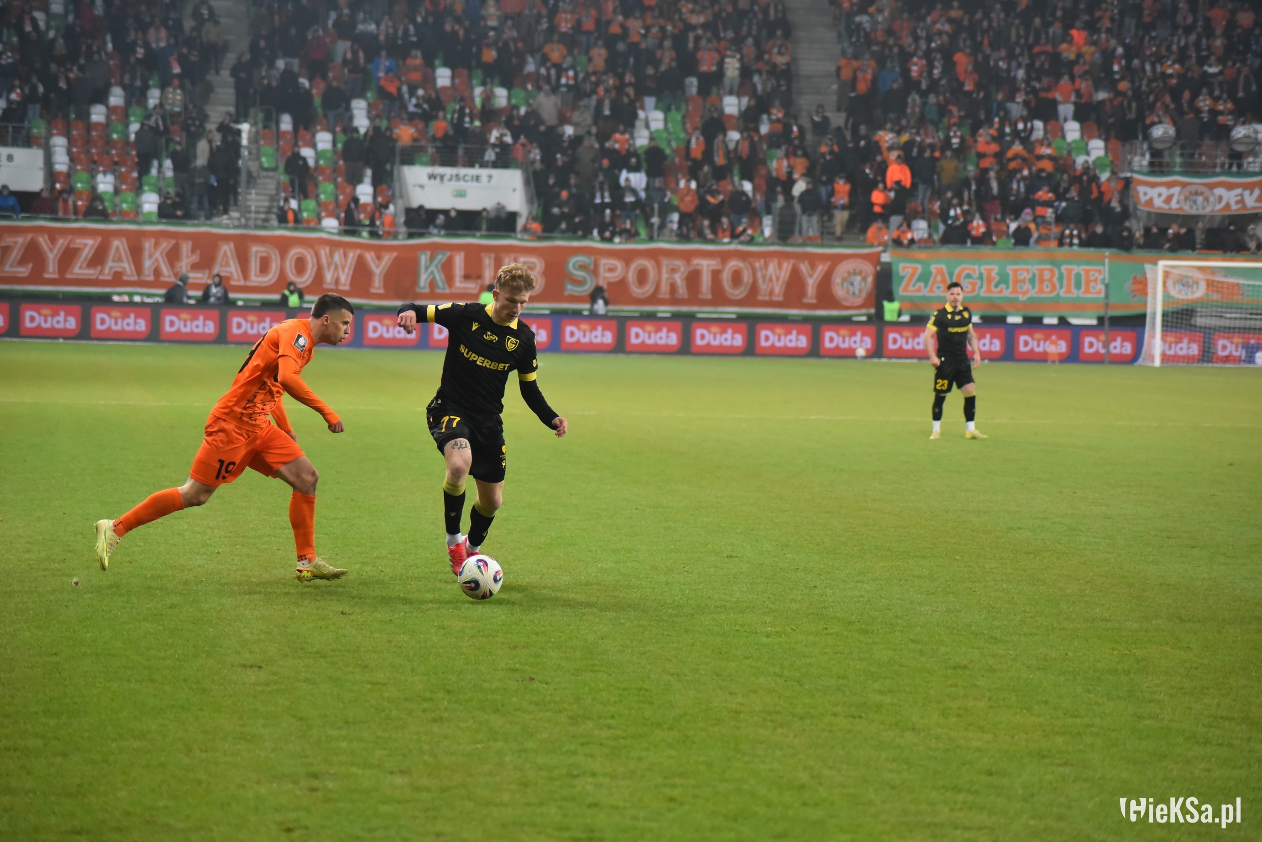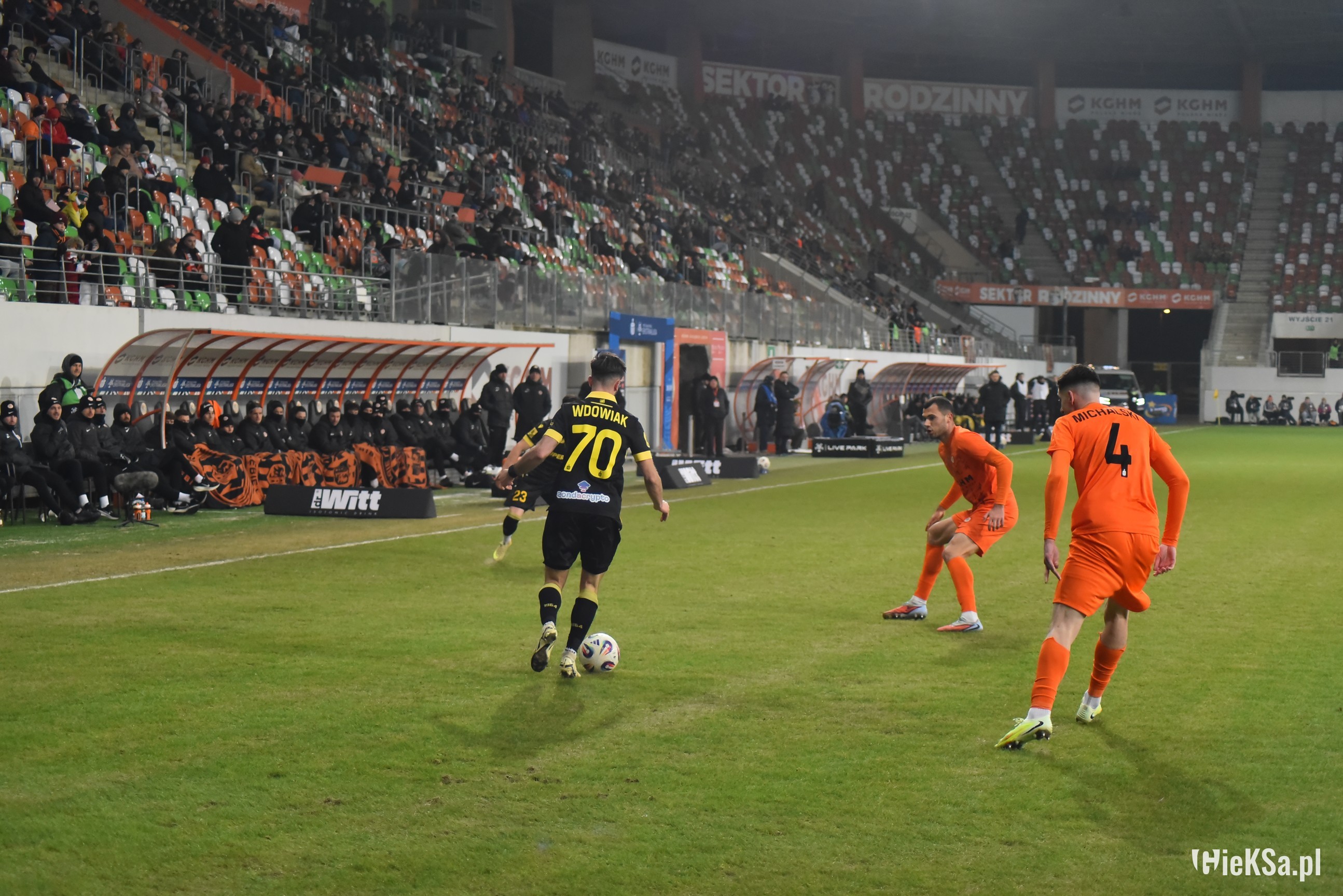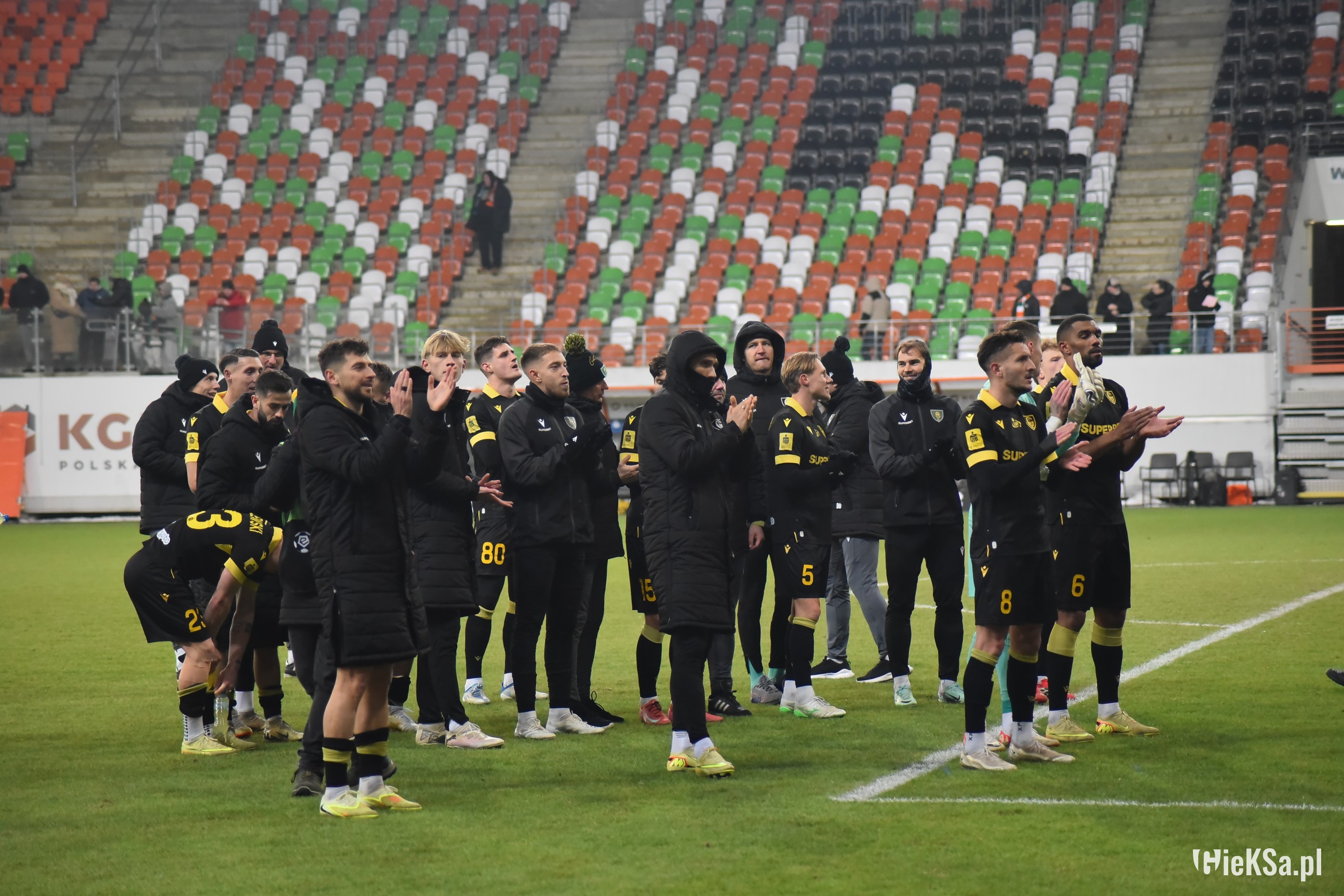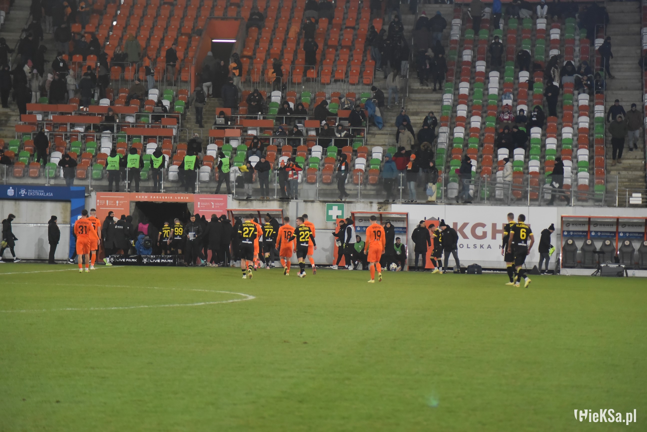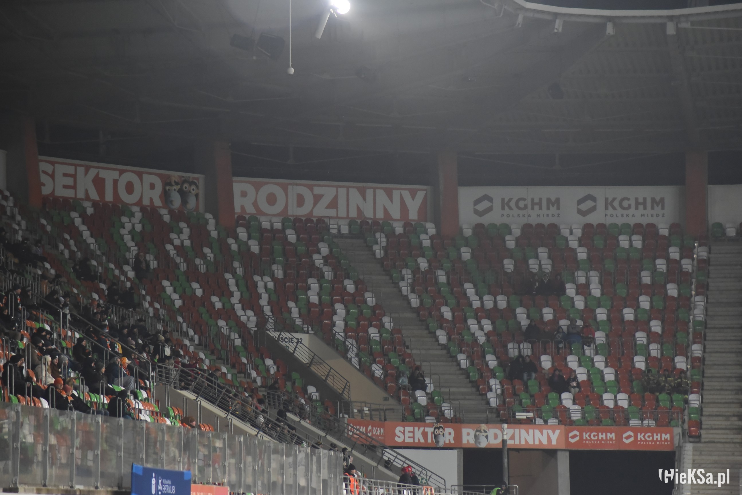 I znowu piątek… Tym razem w Niecieczy, w której w ostatnich latach często bywaliśmy. Pojawiliśmy się w 427 osób, w tym 2 Górnik Zabrze i 2 JKS Jarosław. Tym samym zakończyliśmy maraton pięciu wyjazdów z rzędu w tygodniu roboczym.