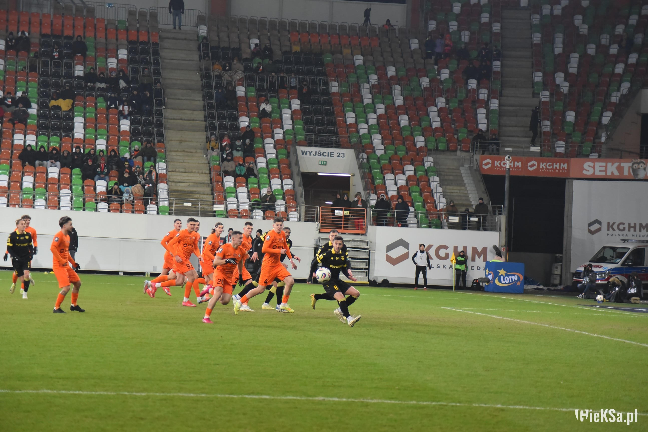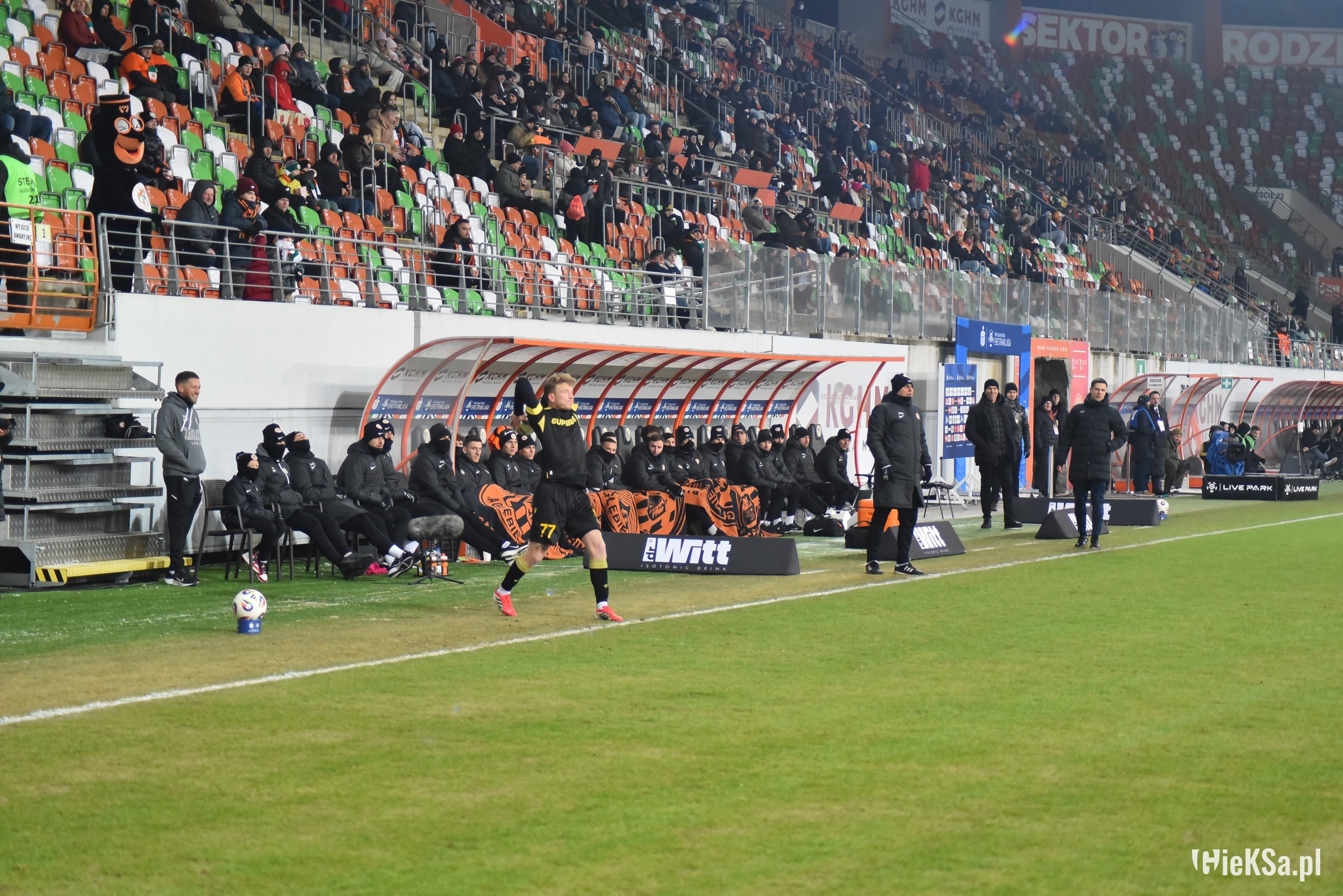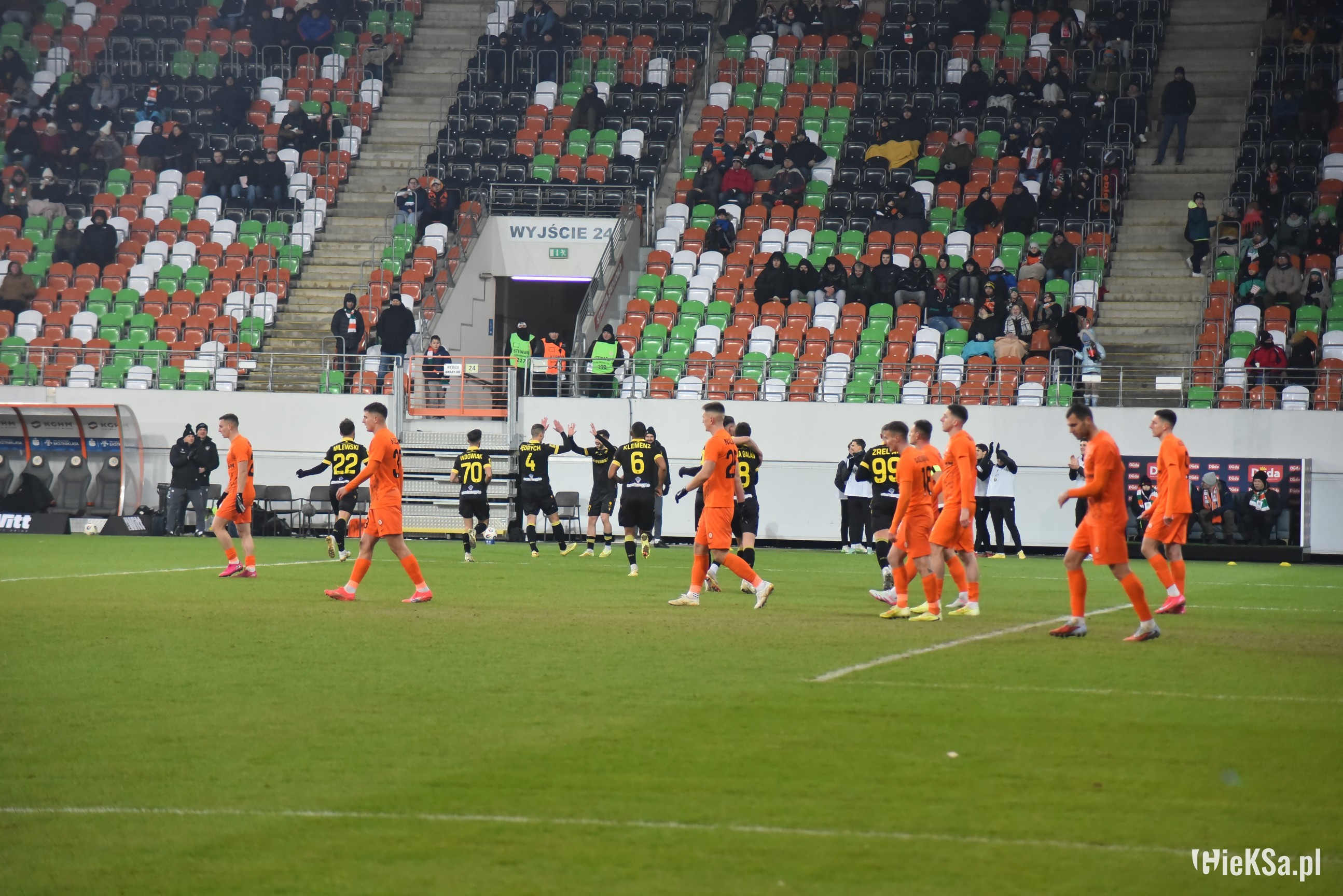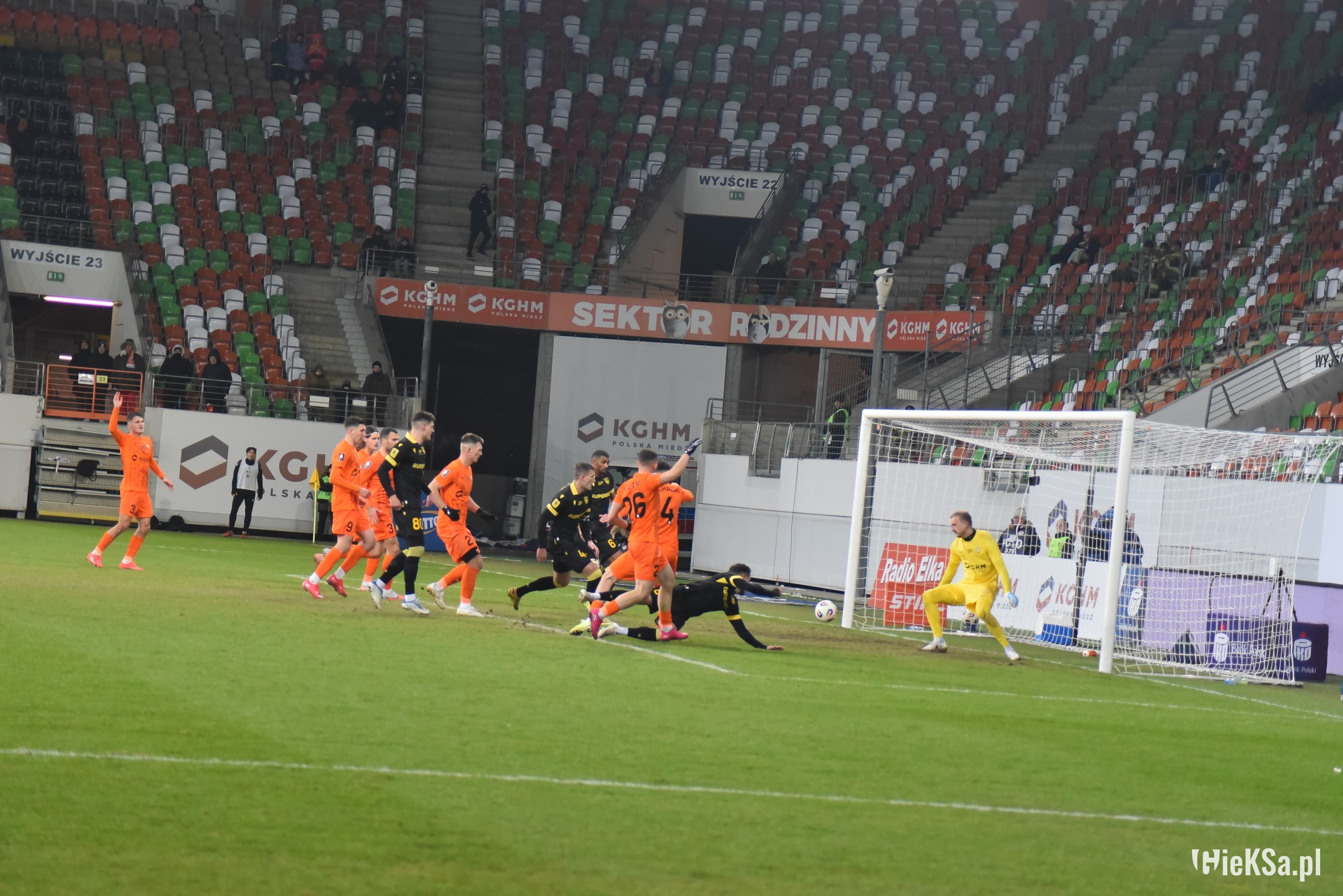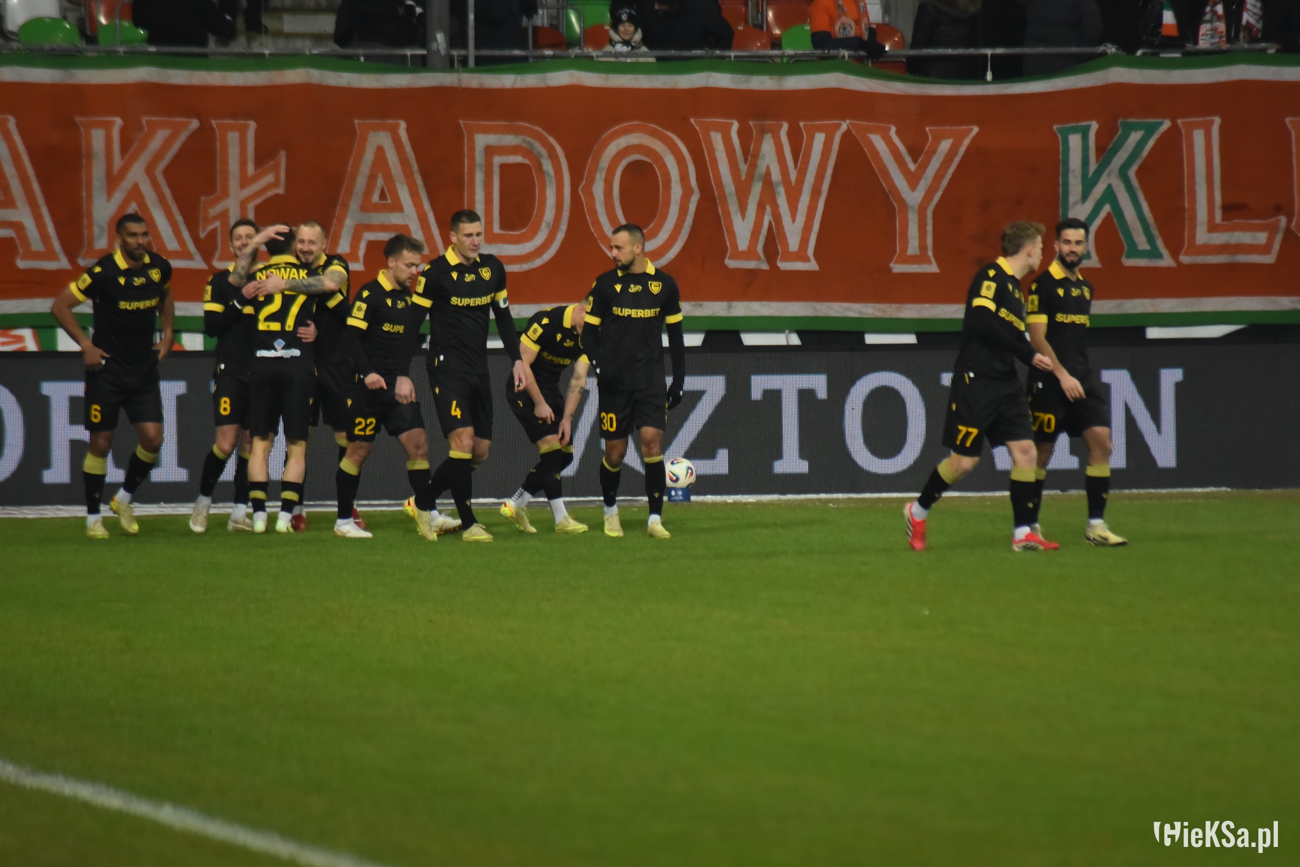 I znowu piątek… Tym razem w Niecieczy, w której w ostatnich latach często bywaliśmy. Pojawiliśmy się w 427 osób, w tym 2 Górnik Zabrze i 2 JKS Jarosław. Tym samym zakończyliśmy maraton pięciu wyjazdów z rzędu w tygodniu roboczym.
