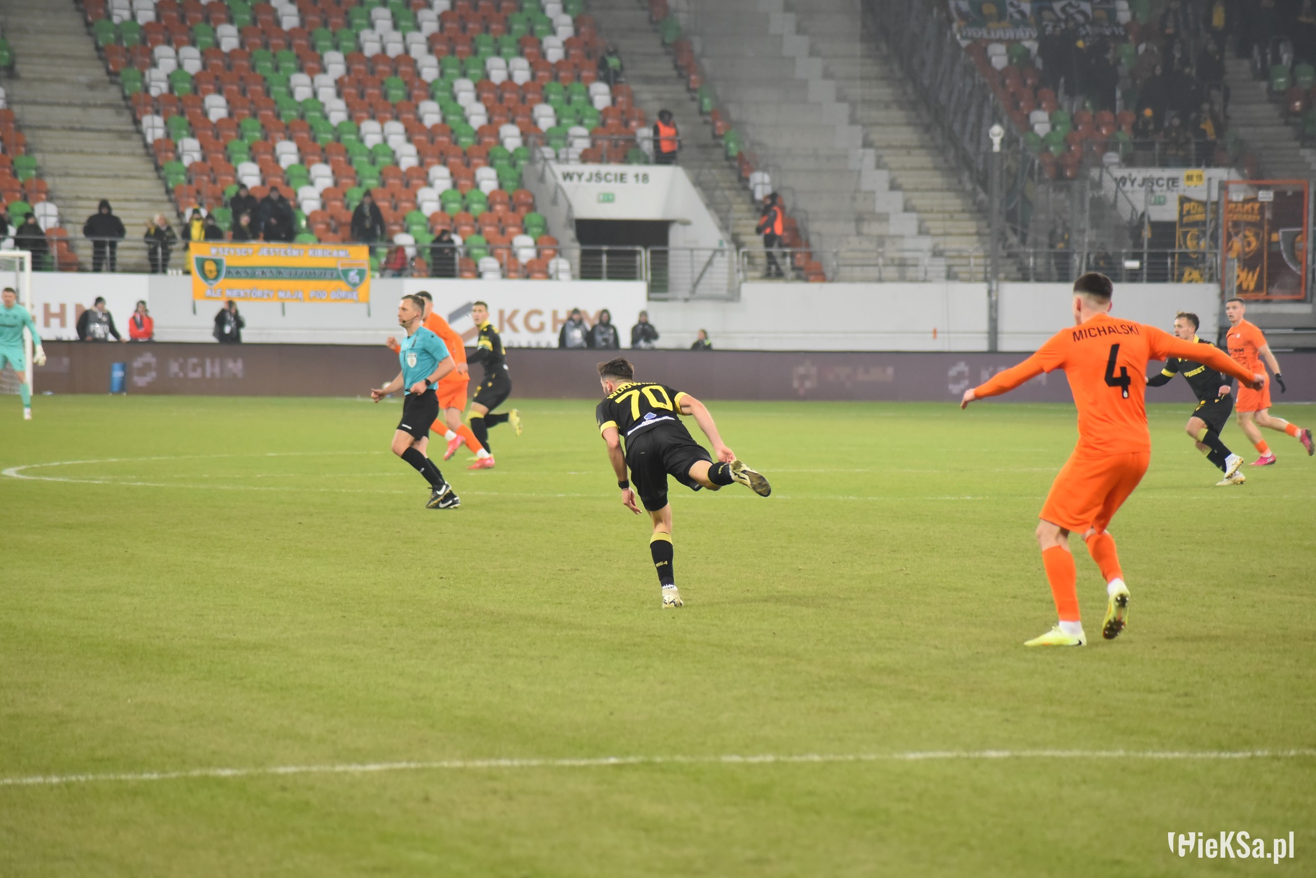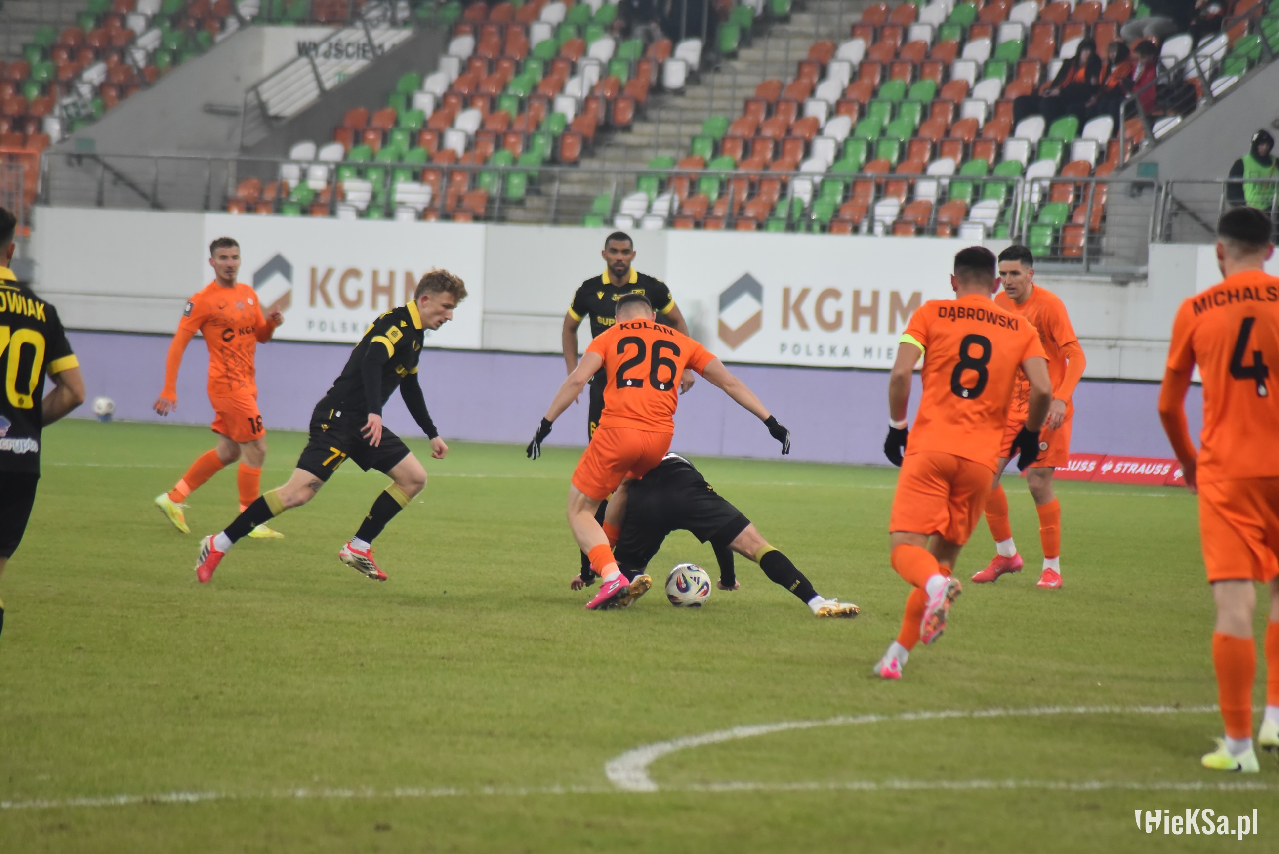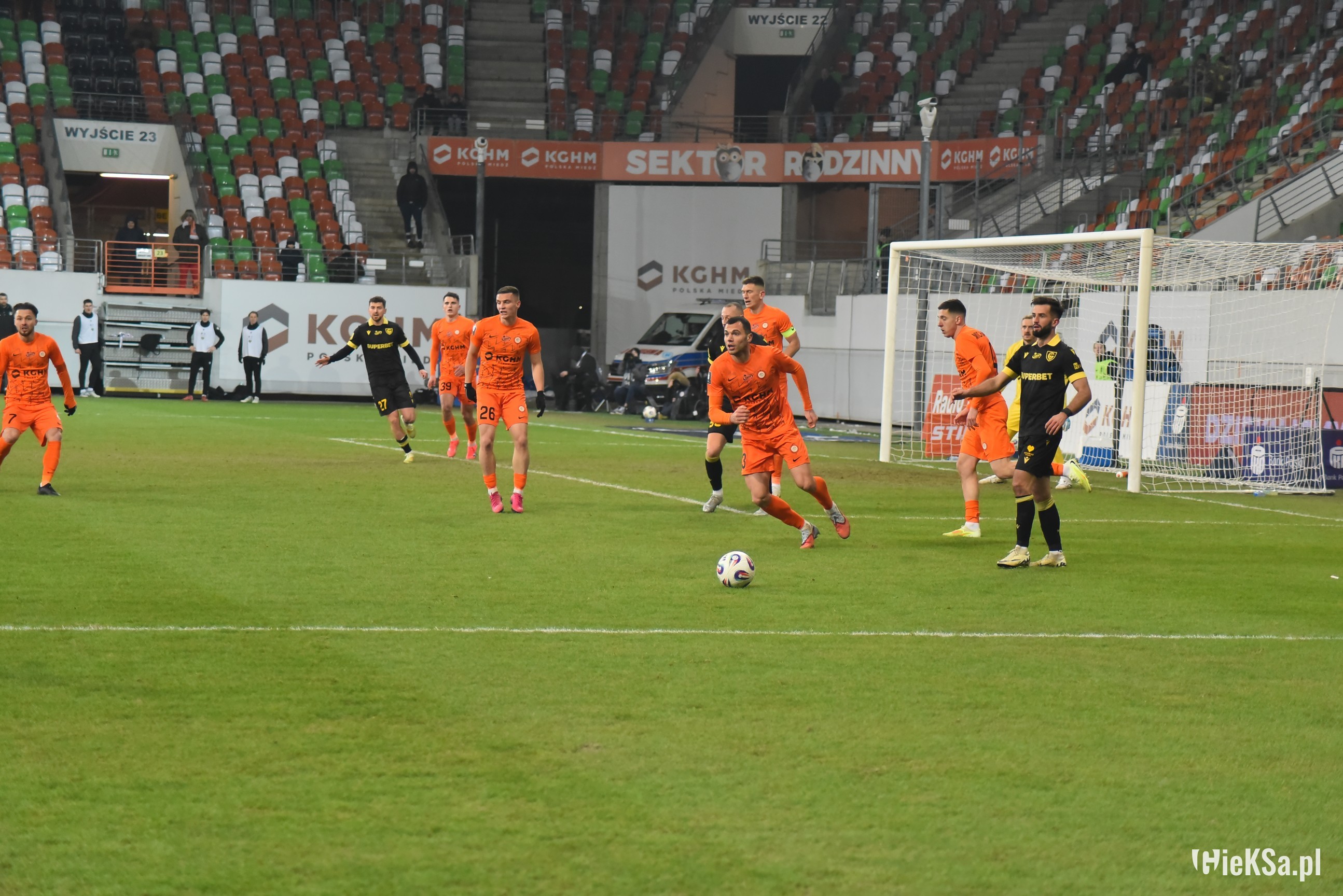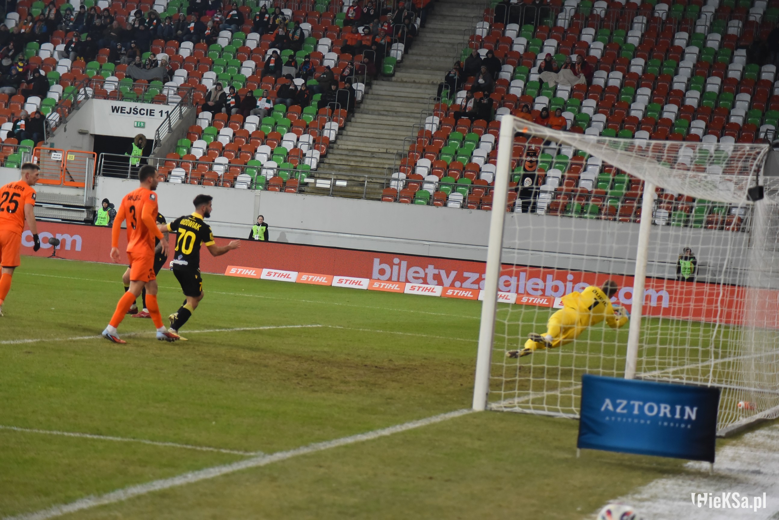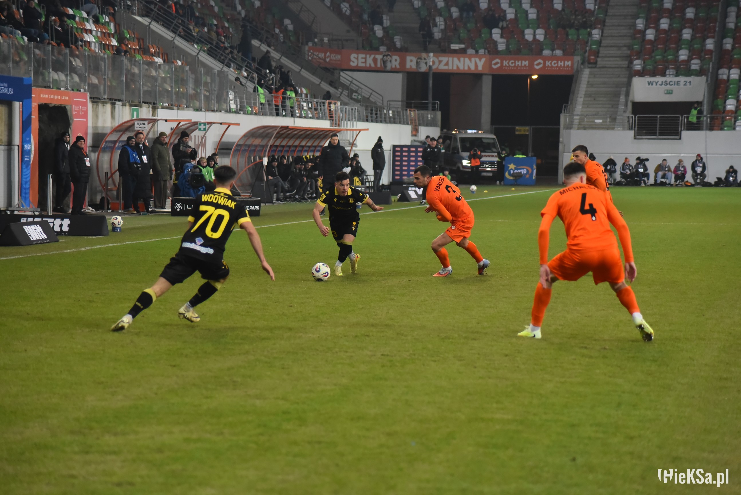 I znowu piątek… Tym razem w Niecieczy, w której w ostatnich latach często bywaliśmy. Pojawiliśmy się w 427 osób, w tym 2 Górnik Zabrze i 2 JKS Jarosław. Tym samym zakończyliśmy maraton pięciu wyjazdów z rzędu w tygodniu roboczym.