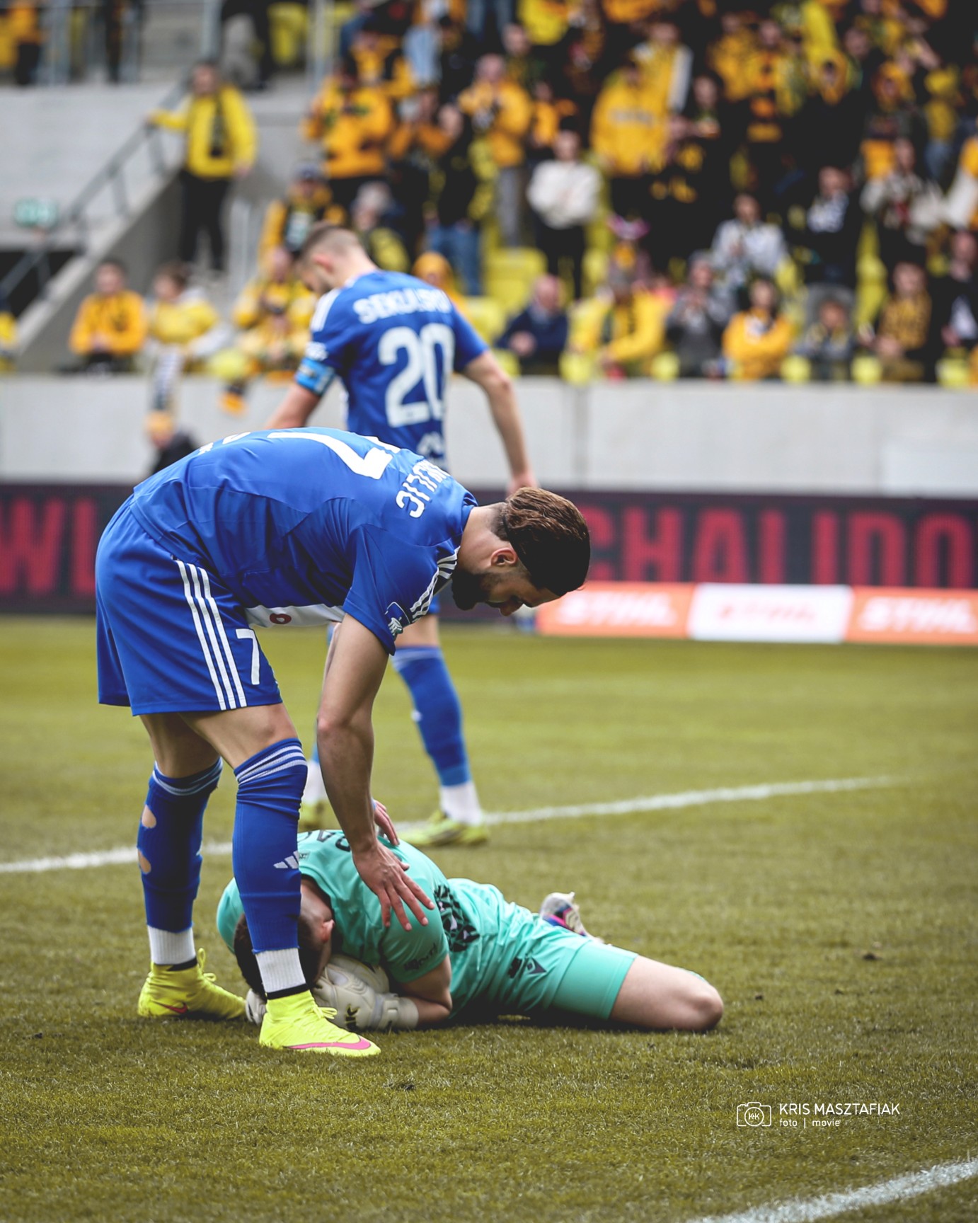 54. Pamiętam czasy z pierwszej czy drugiej ligi, kiedy trener Górak był po niektórych meczach mocno zdenerwowany. W ekstraklasie sobie takiej sytuacji nie przypominam. Widać po mowie ciała i postawie szkoleniowca, kiedy jest wybitnie wk..iony, a jednocześnie stara się to opanować. W trakcie konferencji gdy był zobowiązany odpowiadać na pytania, musiał robić dobrą minę do złej gry i włączać trochę dyplomacji, więc ten odczuwalny w atmosferze poziom napięcia nieco spadł.