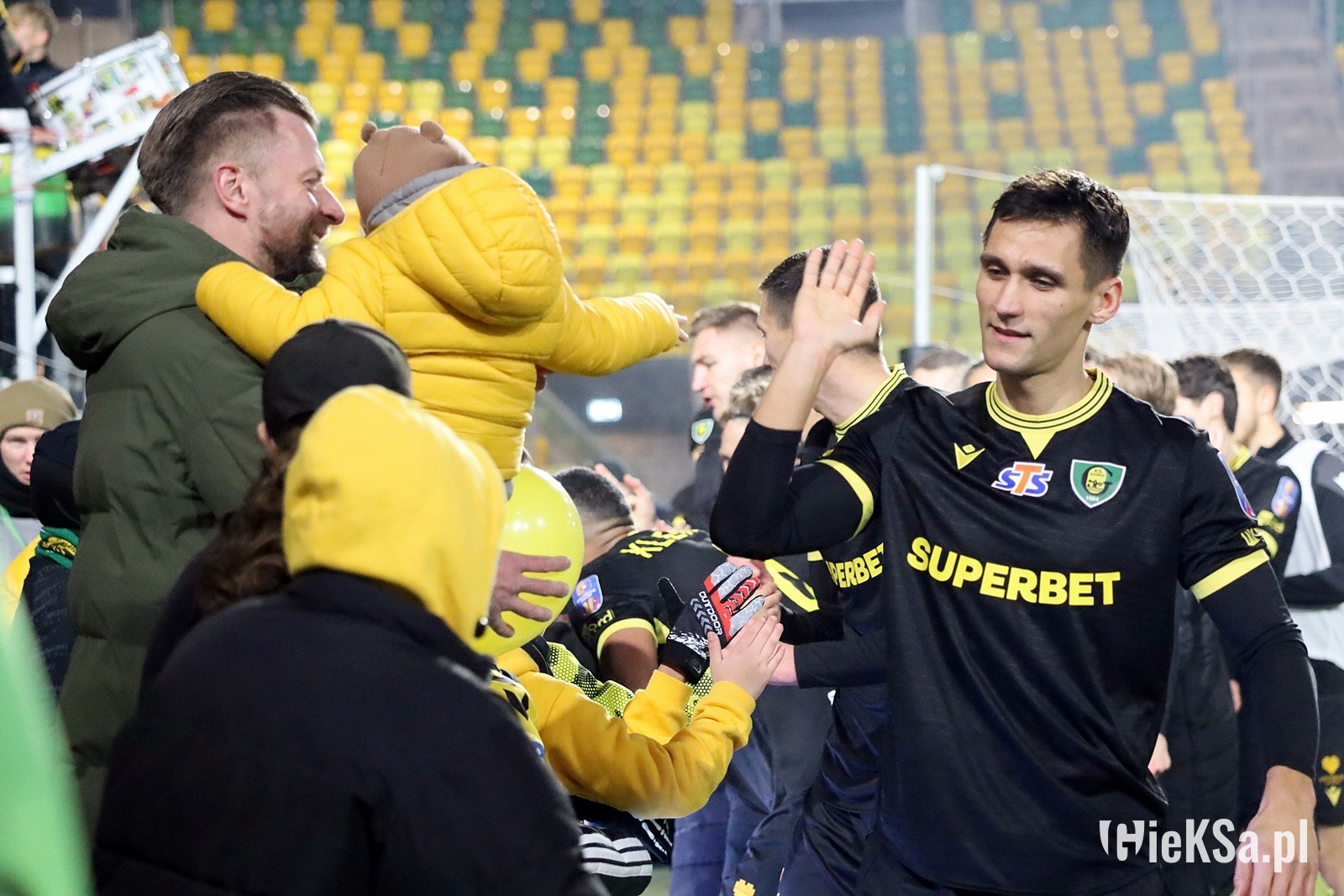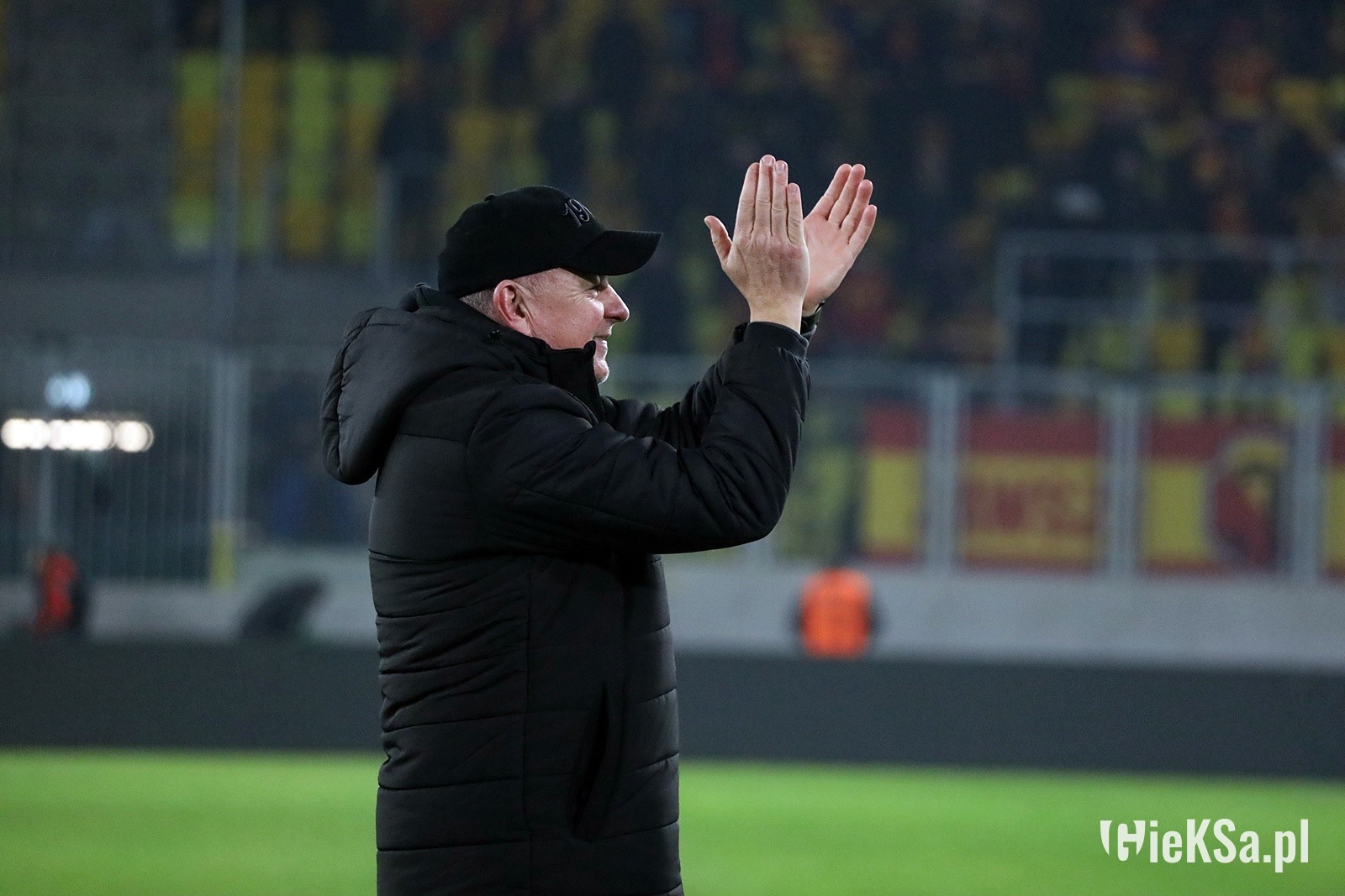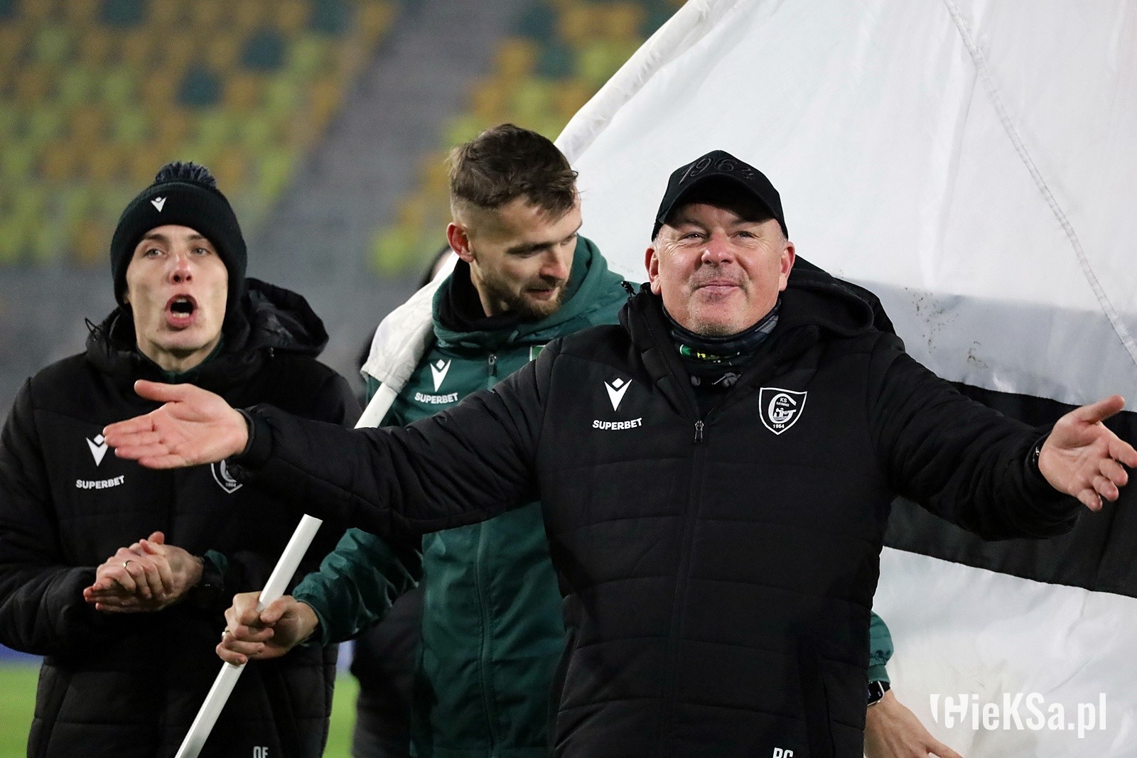 A Rafał Górak? Bardzo dyplomatycznie mówił, że rozumie decyzję sędziów, ale chyba trzy razy podczas wywiadu dał do zrozumienia, jakie miał zdanie… Panowie za zamkniętymi drzwiami rozmawiali, każdy dał swoje argumenty. Trener zwrócił uwagę, że ze względu na szczelnie wypełniony sektor gości mogło to wyglądać inaczej. Że białe linie widać i przy dobrej woli organizatora, boisko można byłoby doprowadzić do stanu używalności. Że taki wyjazd bez meczu to dodatkowe koszty dla klubu. Jakbym więc miał typować, to pewnie wyglądało to tak „ej Rafał, wiesz, jak jest, jaką mamy sytuację, wiem, że nie jest to wam na rękę, ale zgódź się na przełożenie meczu, odwdzięczymy się dobrym winkiem”… Być może więc ze względu na solidarność kolegów po fachu i gentelmen’s agreement, szkoleniowiec, mimo że wolałby zagrać – nie oponował.