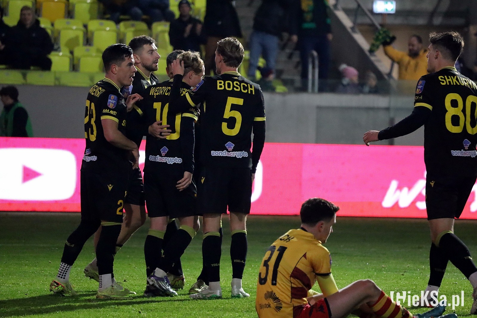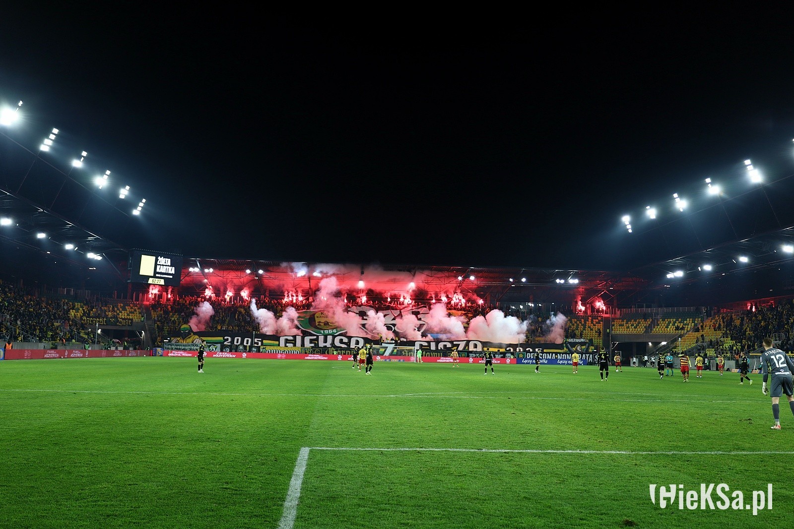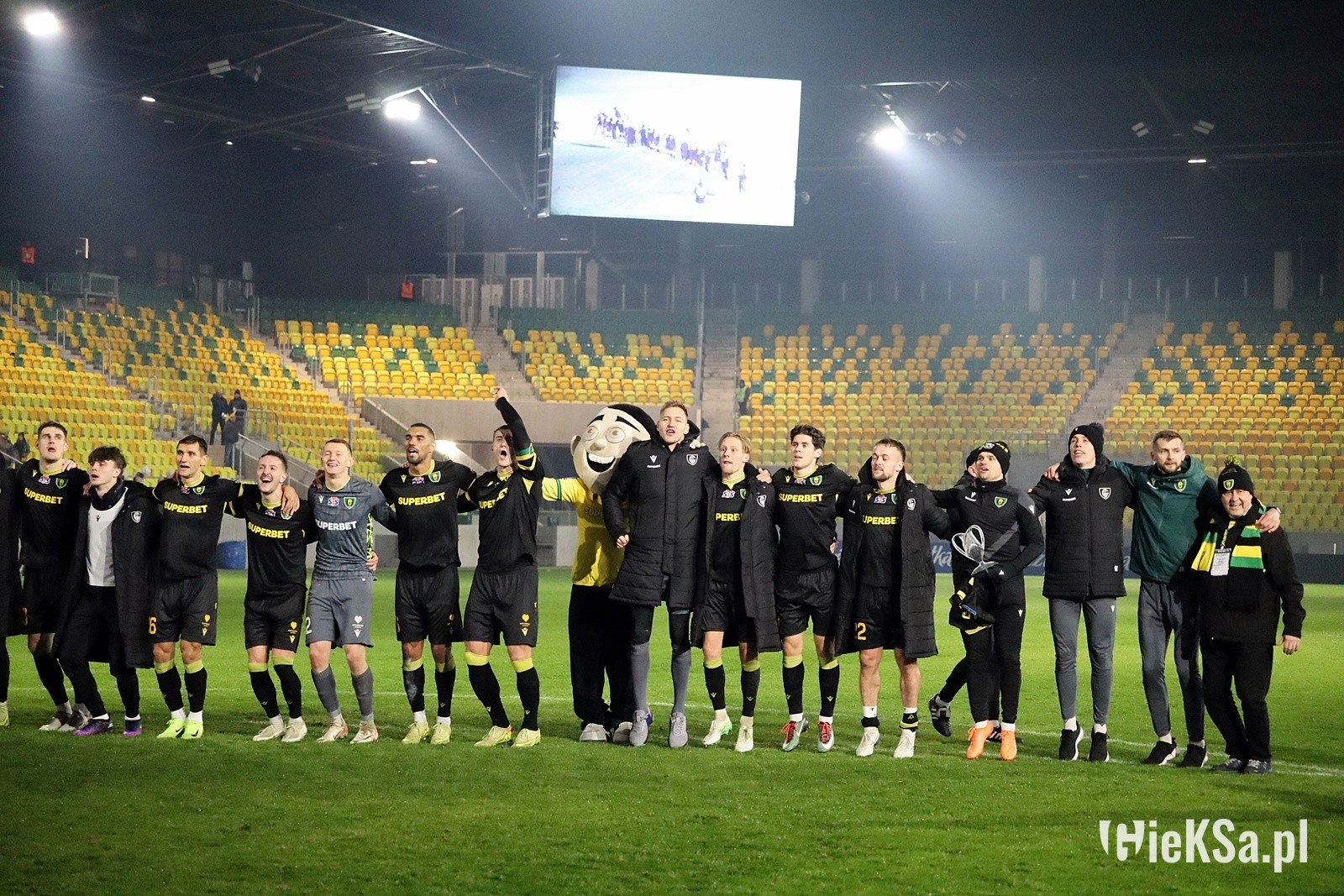 A Rafał Górak? Bardzo dyplomatycznie mówił, że rozumie decyzję sędziów, ale chyba trzy razy podczas wywiadu dał do zrozumienia, jakie miał zdanie… Panowie za zamkniętymi drzwiami rozmawiali, każdy dał swoje argumenty. Trener zwrócił uwagę, że ze względu na szczelnie wypełniony sektor gości mogło to wyglądać inaczej. Że białe linie widać i przy dobrej woli organizatora, boisko można byłoby doprowadzić do stanu używalności. Że taki wyjazd bez meczu to dodatkowe koszty dla klubu. Jakbym więc miał typować, to pewnie wyglądało to tak „ej Rafał, wiesz, jak jest, jaką mamy sytuację, wiem, że nie jest to wam na rękę, ale zgódź się na przełożenie meczu, odwdzięczymy się dobrym winkiem”… Być może więc ze względu na solidarność kolegów po fachu i gentelmen’s agreement, szkoleniowiec, mimo że wolałby zagrać – nie oponował.