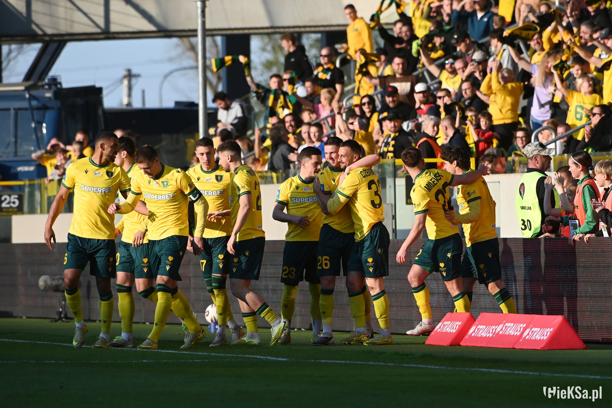 Co się działo po tym golu… euforia. Ja sam byłem przekonany, że będzie 0:0. Bo po prostu GieKSa rzadko strzela zwycięskiego gola w doliczonym czasie. A już żeby to był gol na 1:0, to trzeba się cofnąć do wygranego z Lechią Gdańsk meczu w pierwszej lidze. Ale w ostatnich wielu latach to są totalnie incydentalne sprawy. Choć oczywiście doliczony czas gry – na 2:1 czy 3:2 dawał nam tak potrzebne punkty do awansu.