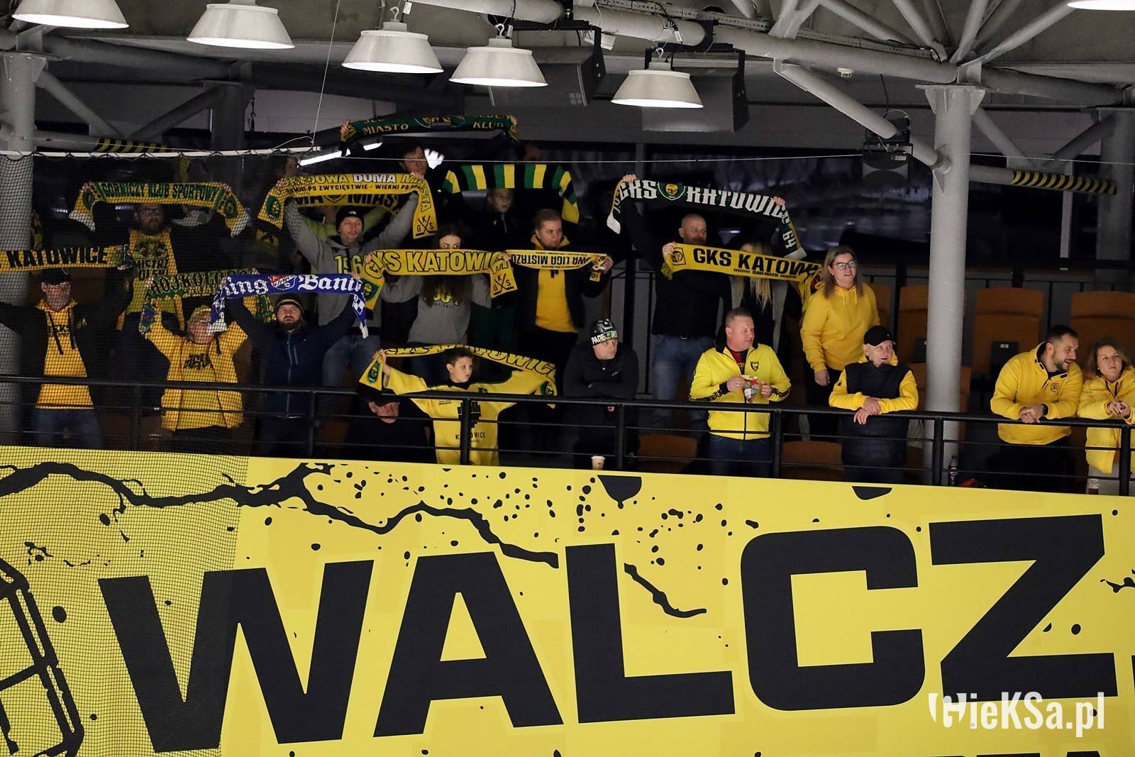 21. A potem mieliśmy już granie. Powiedziałbym, że przecieraliśmy oczy ze zdumienia, gdy GKS od początku atakował, gdyby to była prawda. Znamy ten schemat choćby z meczów z Legią czy Cracovią. Problem był taki, że przewaga nie była udokumentowana bramką. Tutaj była – i to dwoma trafieniami. Kibice obu drużyn od początku oglądali bardzo ciekawy mecz.