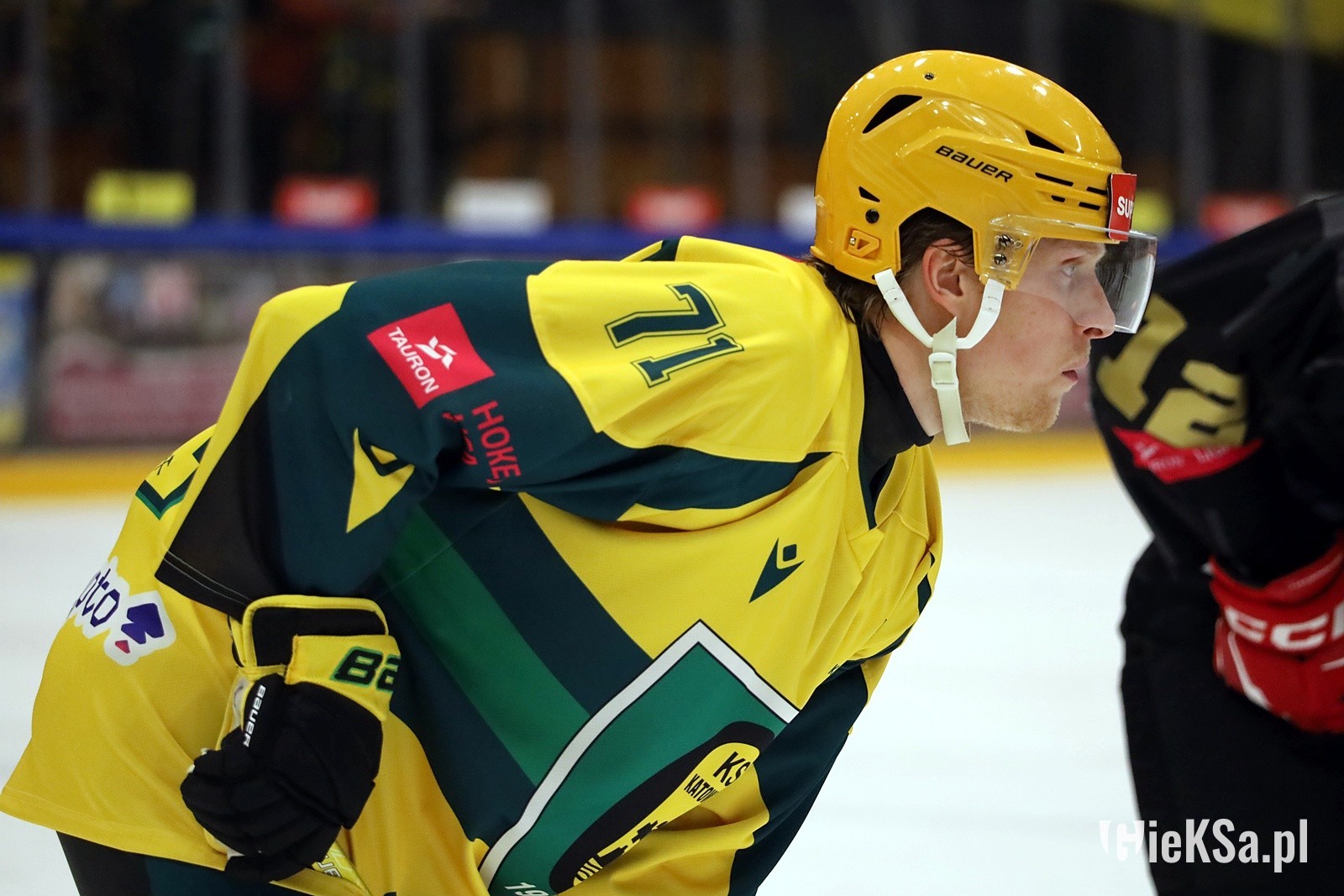 Spotkanie rozpoczęło się od gola dla oświęcimian. W 2. minucie McNulty tak niefortunnie wybijał krążek spod własnej bramki, że trafił w głowę Petrasa, a następnie „guma” znalazła się w naszej bramce. Uskrzydleni zdobytą bramką goście szukali okazji na podwyższenie prowadzenia, jednak Eliasson nie dał się pokonać. W 7. minucie w zamieszaniu pod bramką Tyczyńskiego żaden z naszych zawodników nie potrafił wepchnąć krążka do bramki. Od tego meczu mecz nabrał tempa, a krążek szybko przemieszczał się z jednej strony lodowiska na drugą. W połowie meczu w odstępie 54 sekund przyjezdni zdobyli dwie bramki. Najpierw Ahopelto zagrał w tempo do Krzemienia, a ten nie dał szans na skuteczną interwencję naszemu bramkarzowi. Niespełna minutę później strzałem spod linii trzeciego gola dla unitów zdobył Peresunko. Po stracie trzeciej bramki do boksu zjechał Eliasson, a jego miejsce między słupkami zajął Kieler. Do końca tercji goście kontrolowali przebieg wydarzeń na lodzie.