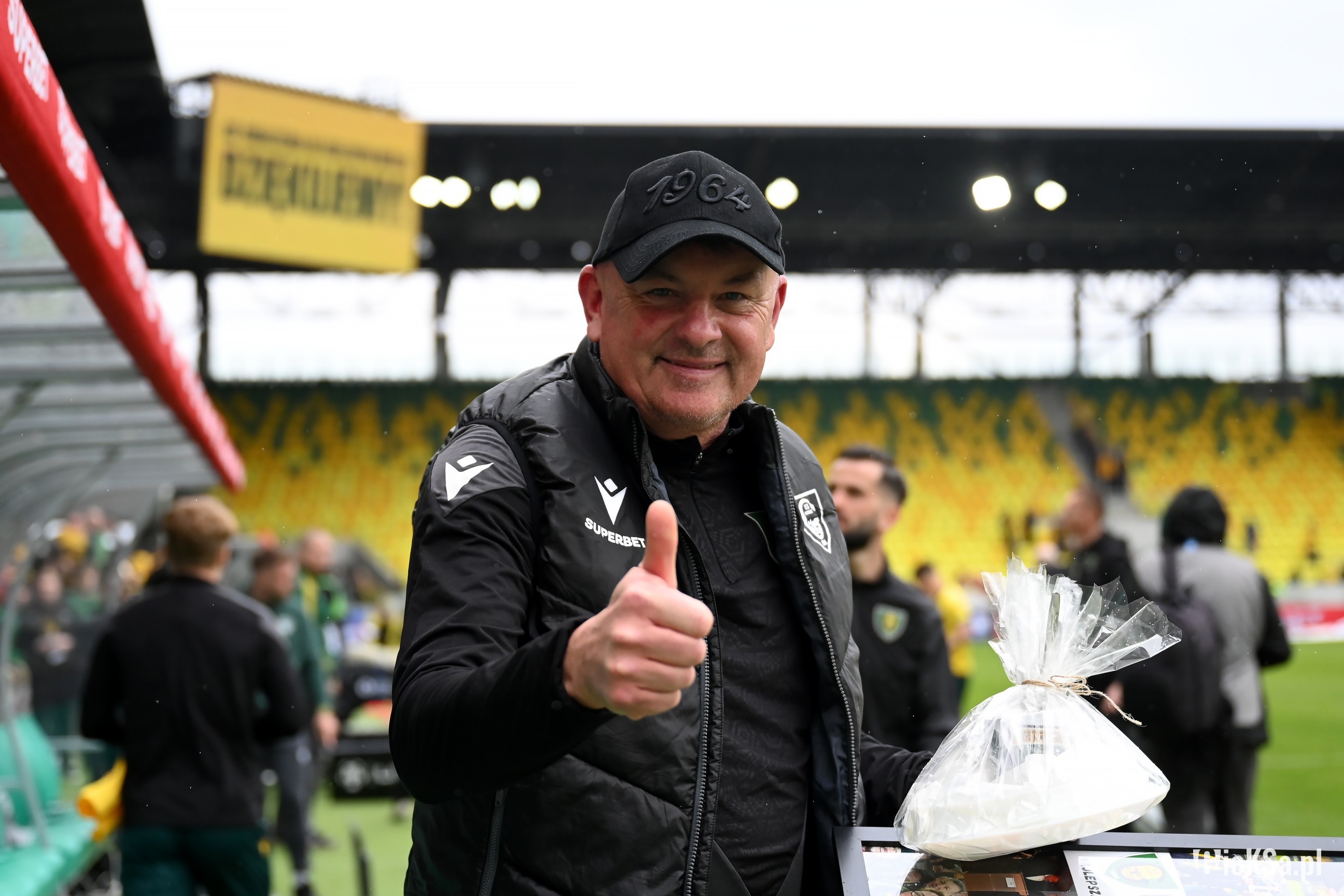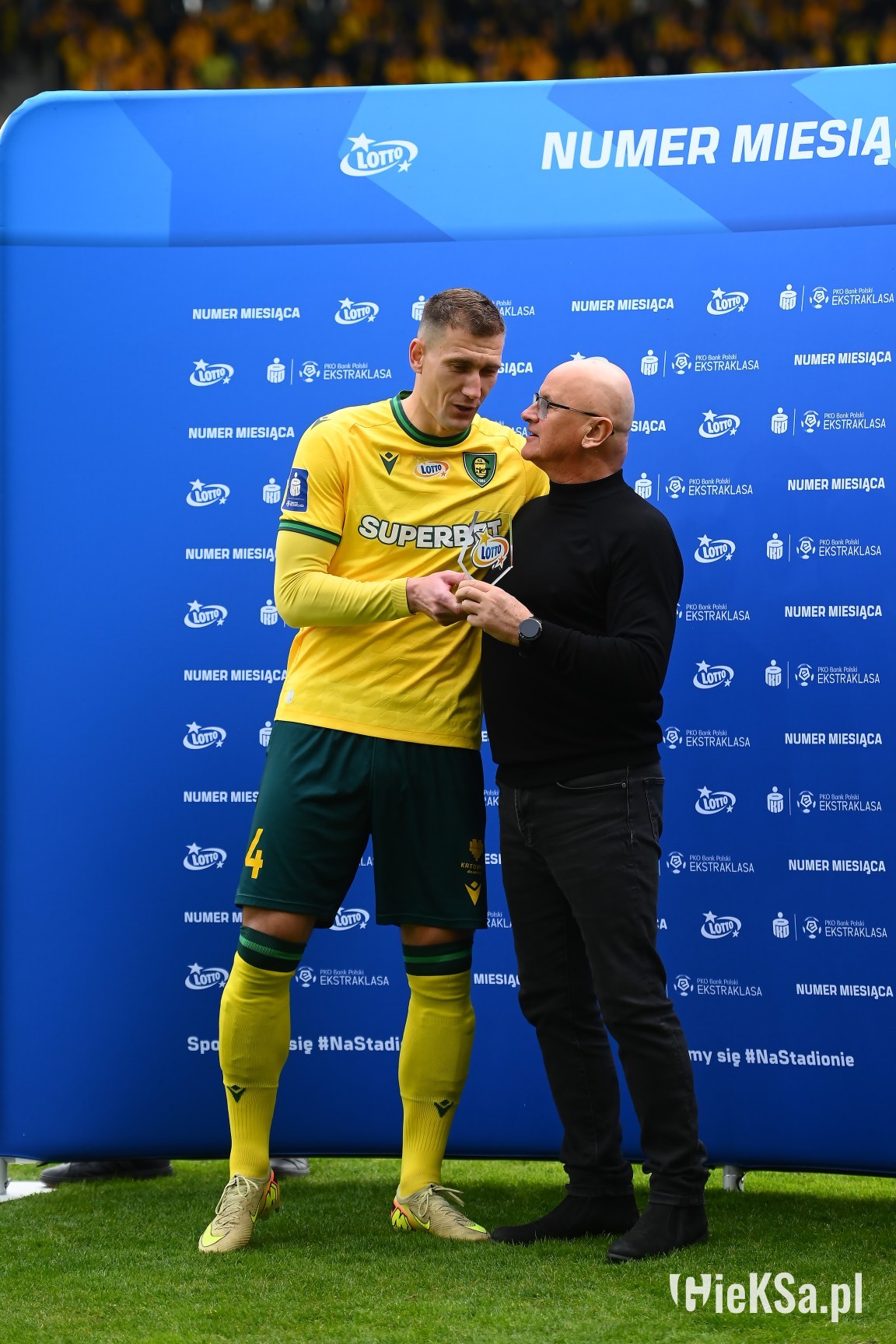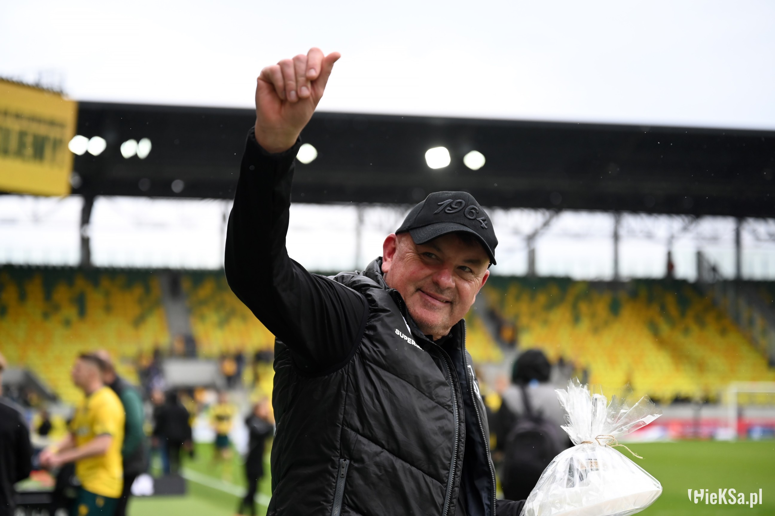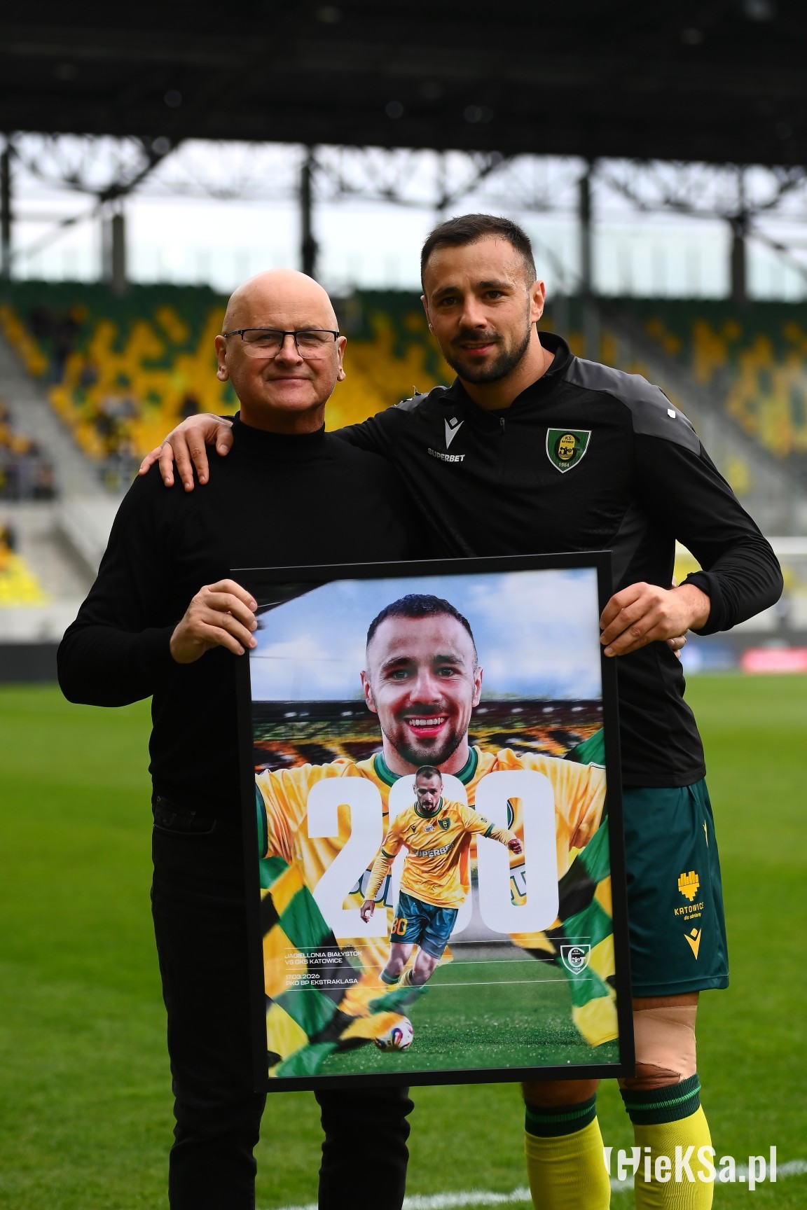 14. Przed meczem odbyła się uroczystość wręczenia trenerowi Siemieńcowi tablicy upamiętniającej jego 100 meczów w Jagiellonii. Kibice w Białymstoku go kochają. Skandują jego nazwisko często, skandowali i teraz. Trudno się dziwić.