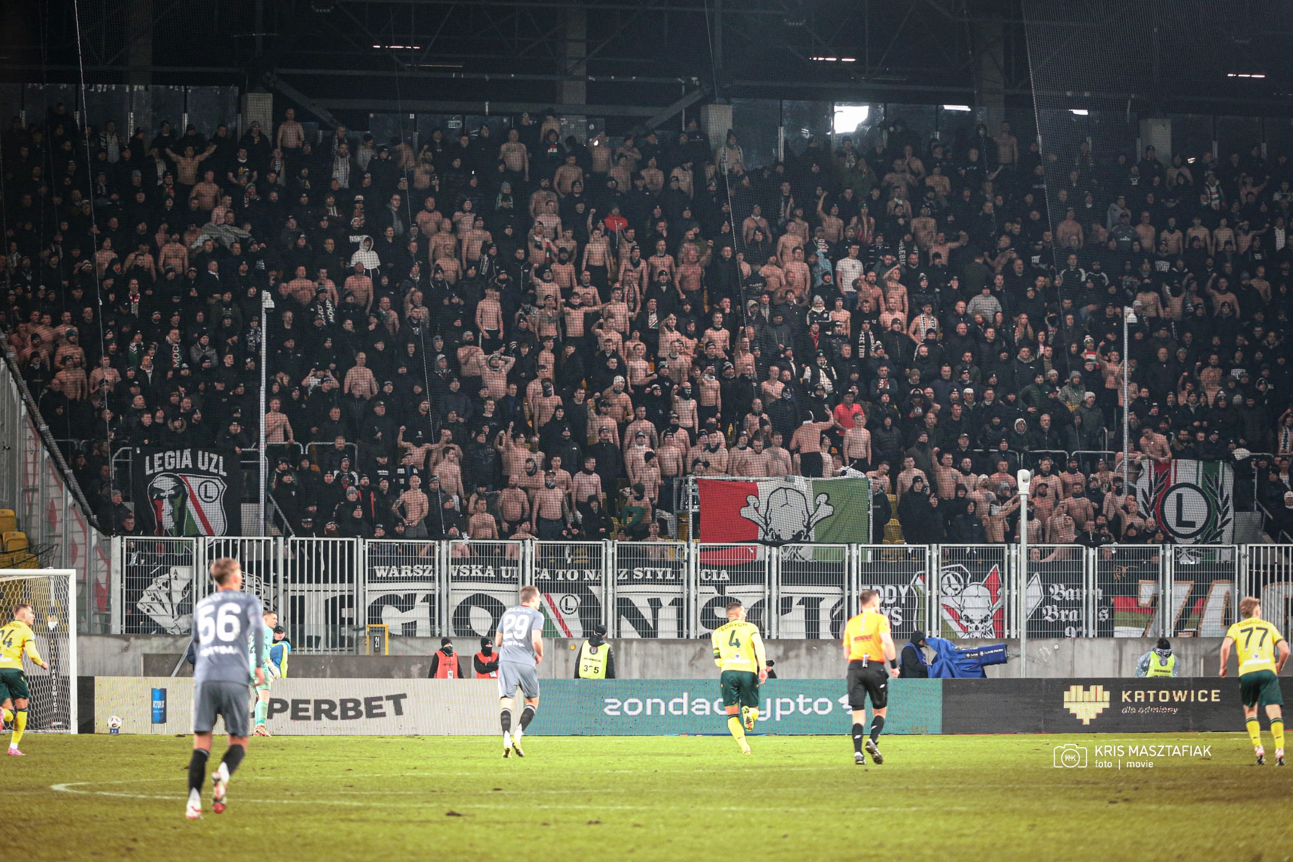 Ostatni nasz pojedynek to jesień 2025 roku. Legioniści chwilę wcześniej odwiesili swój bojkot, więc mecz mógł żyć pełnią wzajemnych „uprzejmości”. W niedzielny wieczór obecnych w Warszawie było 734 fanatyków GieKSy, w tym 17 JKS i 13 FCB. Legia, dosłownie rzutem na taśmę, pokonała nas 3:1.