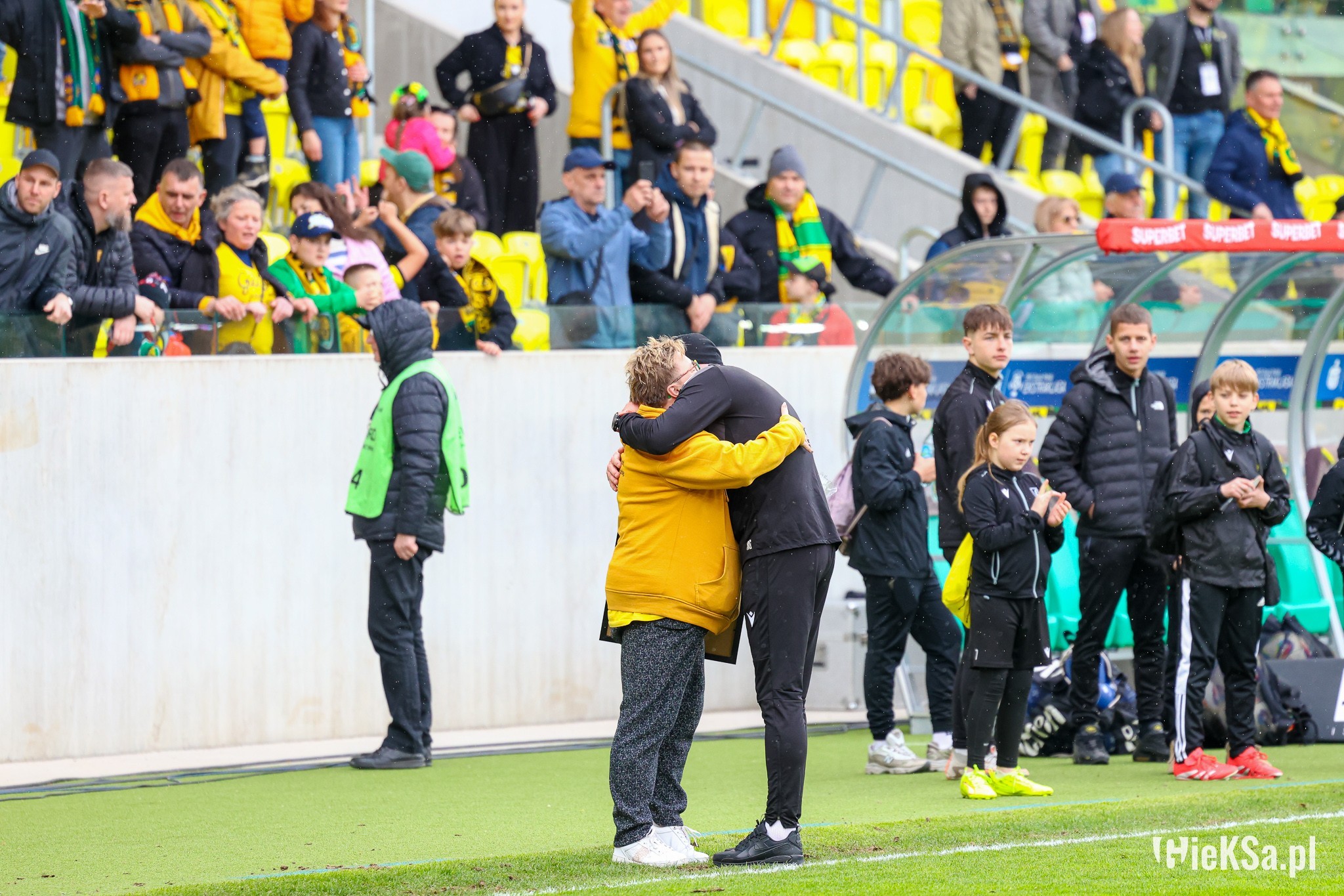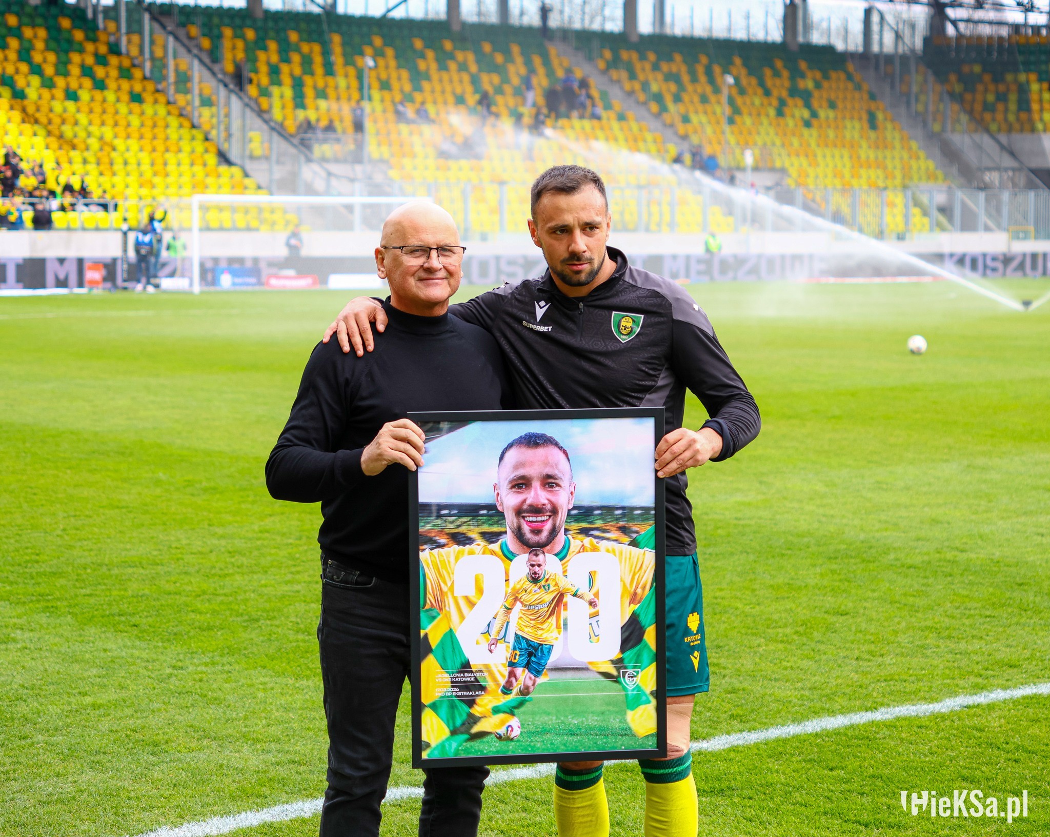 14. Przed meczem odbyła się uroczystość wręczenia trenerowi Siemieńcowi tablicy upamiętniającej jego 100 meczów w Jagiellonii. Kibice w Białymstoku go kochają. Skandują jego nazwisko często, skandowali i teraz. Trudno się dziwić.